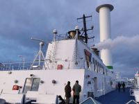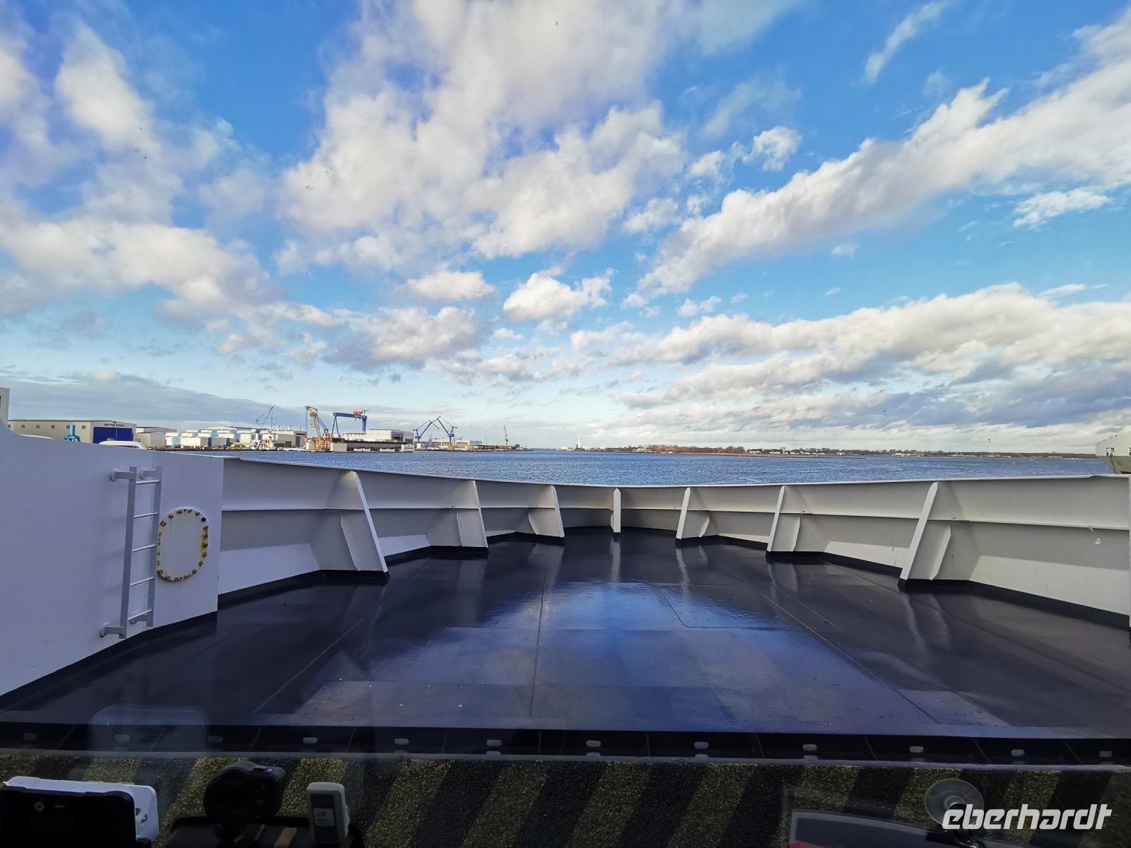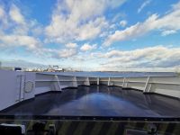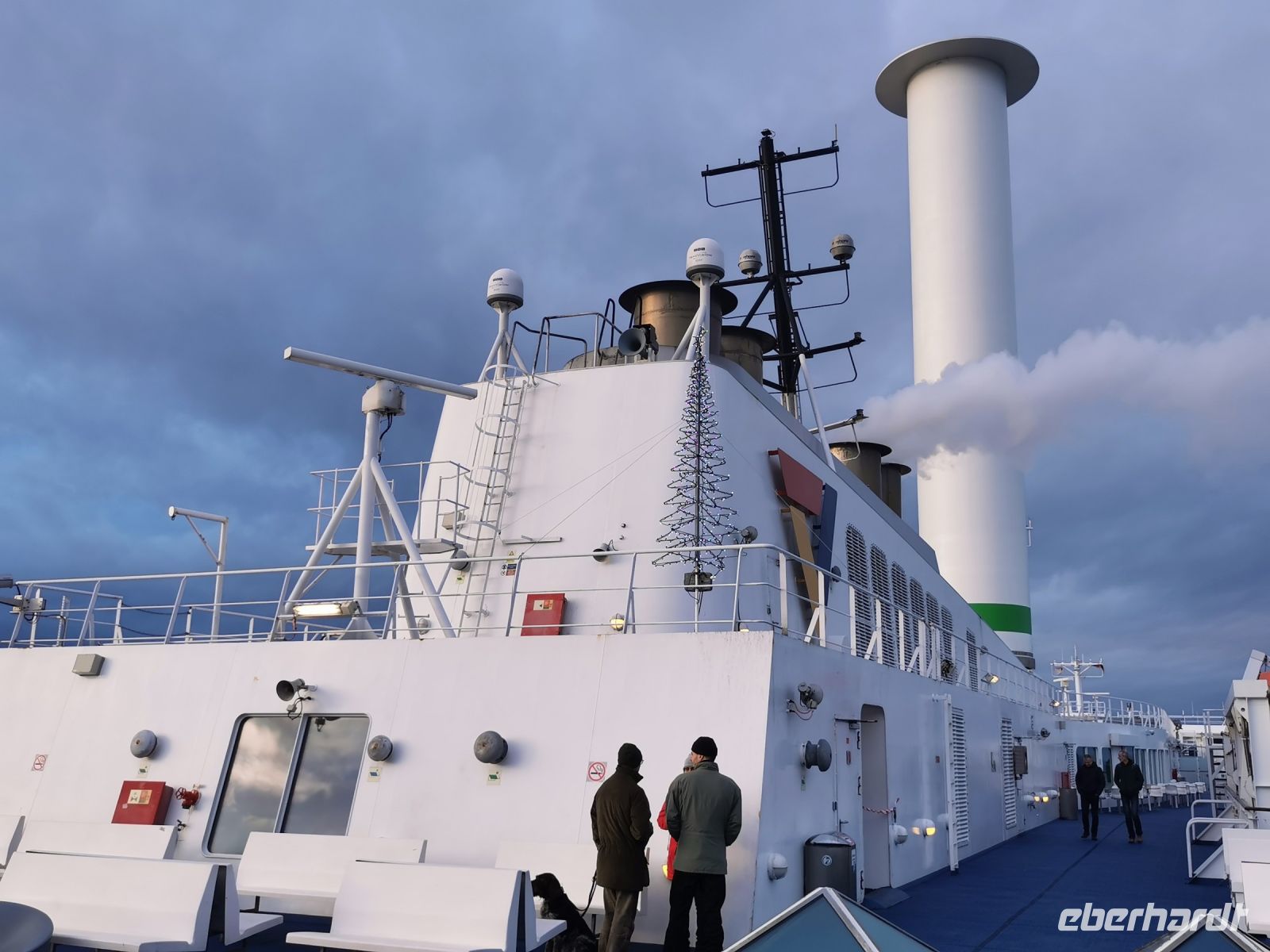 Die Fähre ist eine Hybridfähre und es war einmal ganz interessant zu sehen, wie die Rotorsegeln in der Praxis funktionieren und arbeiten.