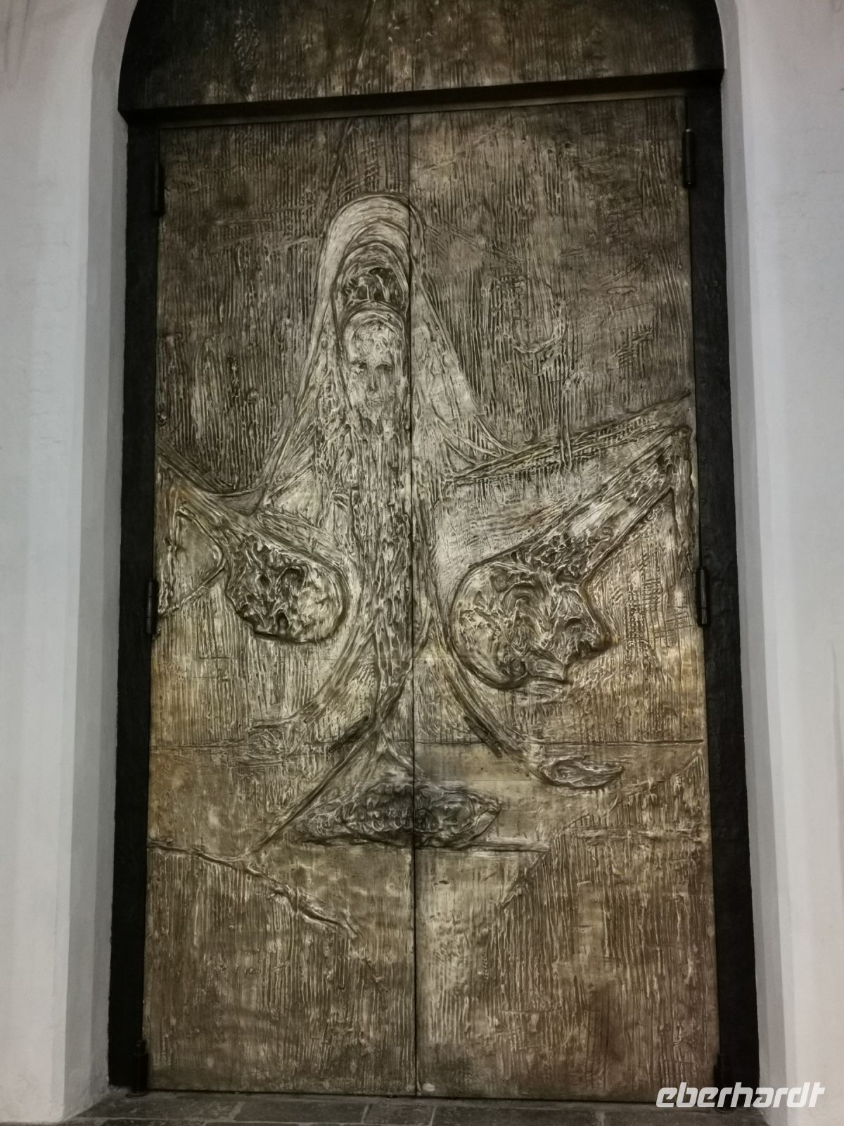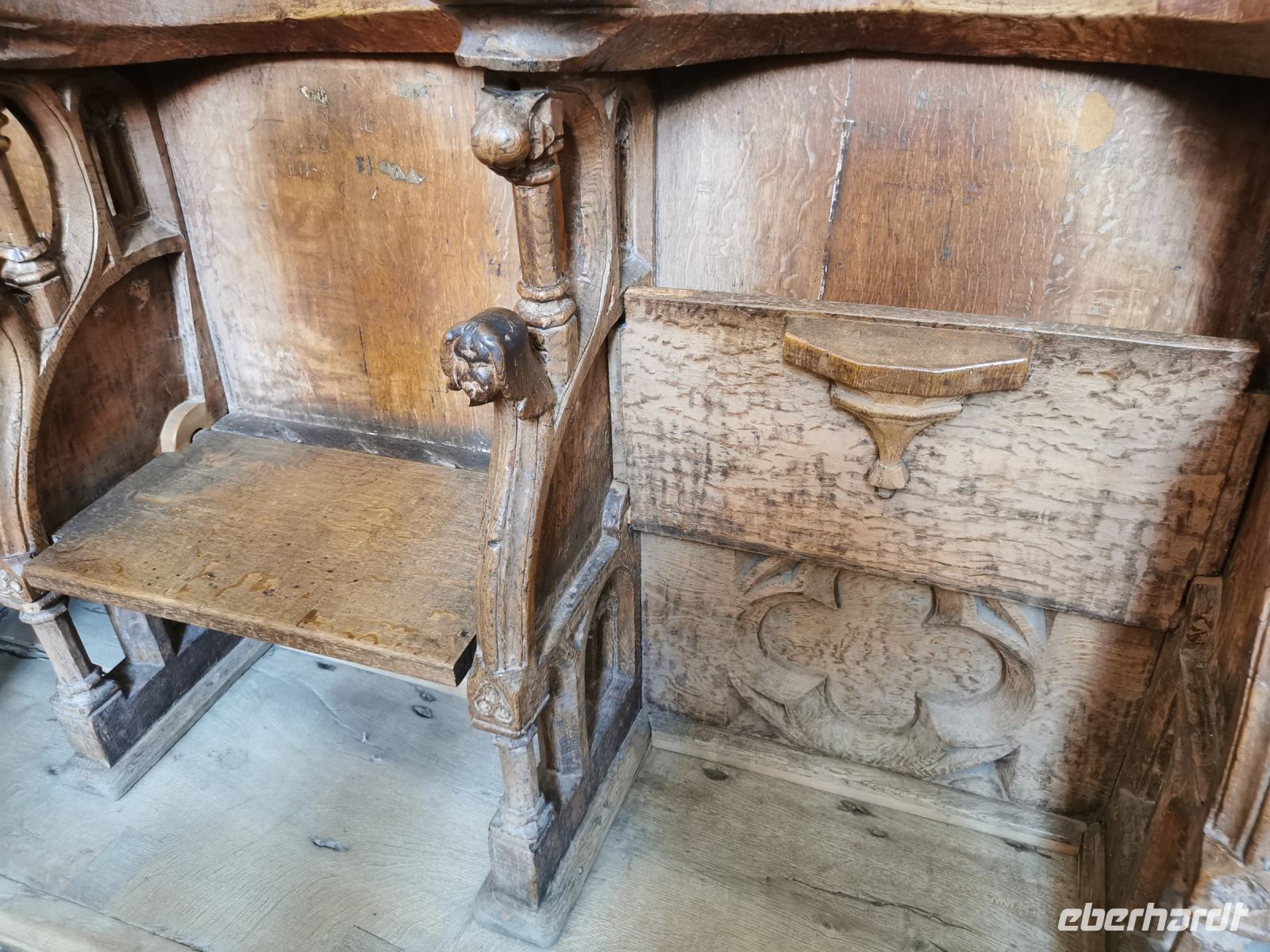 Die nüchterne Kirche, strahlte dennoch eine angenehme Wärme und Behaglichkeit aus. Die Bankreihen hatten 2 Seiten zum Sitzen. Die Predigt kam von der Kanzel und um sich nicht umdrehen zu müssen, wechselte man einfach auf die andere Seite und drehte dem Altar den Rücken zu.