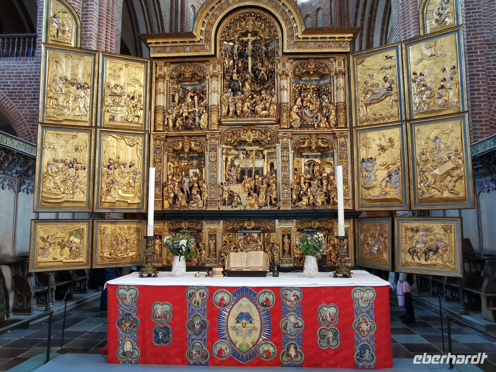 Der Altar des Domes war ursprünglich für Danzig bestimmt, landete aber wegen der Weigerung der Zollabgaben und durch Anwendung des Zollparagraph 2 der den Kauf von Waren regelte, hier in Roskilde.