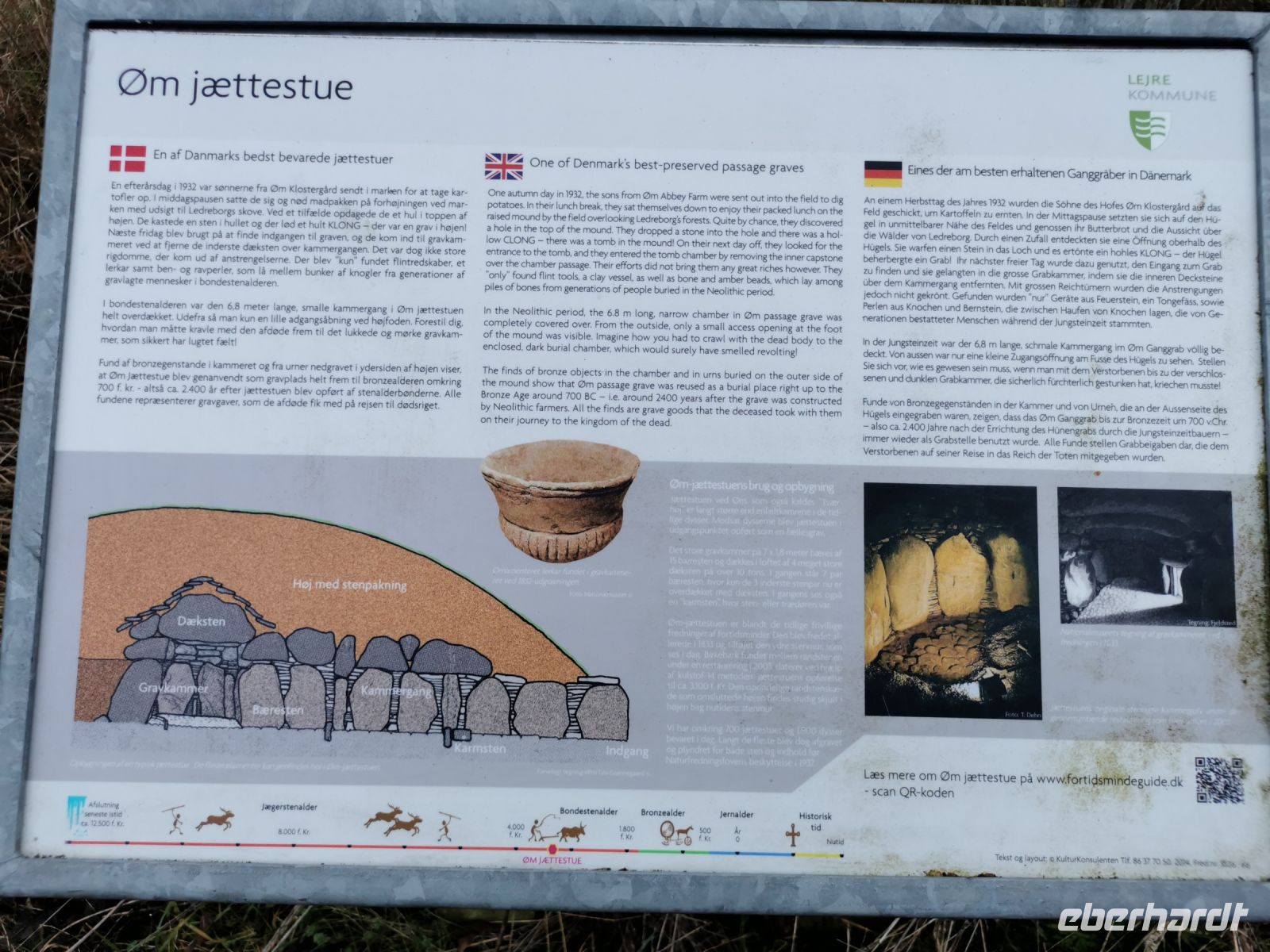 Die Zeit eilte nicht und so hatte unser Reiseleiter noch einen kleinen Sonderprogrammpunkt auf Lager der gerne angenommen wurde. Ca. 10 Minuten Autofahrt ausserhalb von Roskilde liegt Om und dort kann man das besterhaltenste Ganggrab Dänemarks besuchen. 5000 Jahre alt, aus der Jungsteinzeit und der Trinkbecherkultur.
