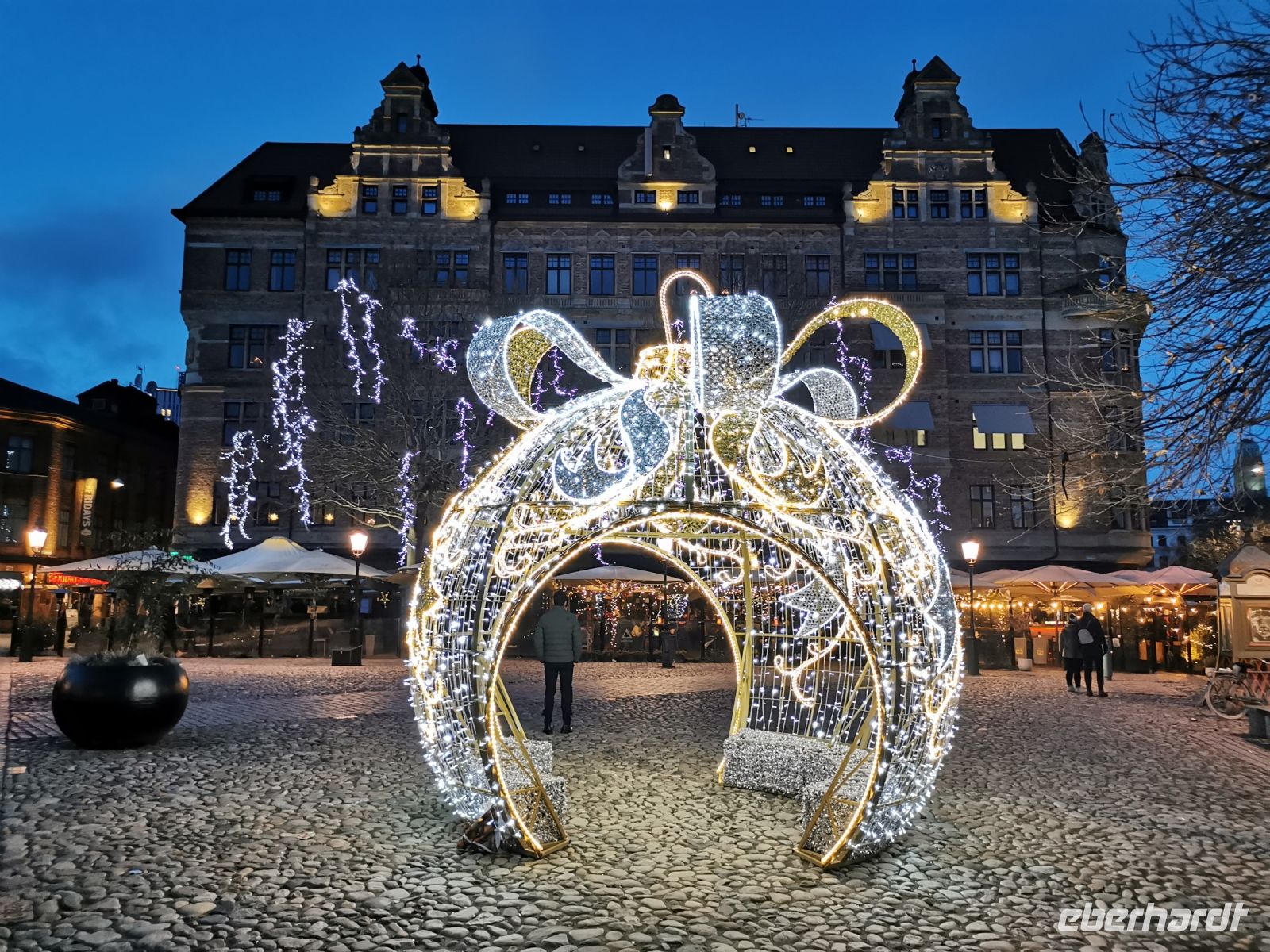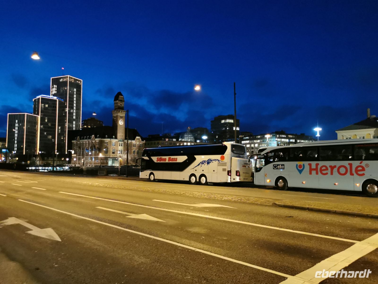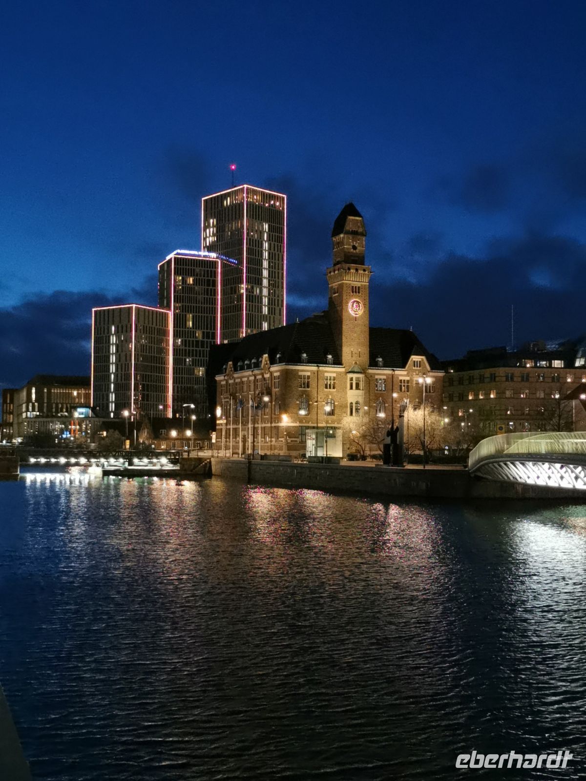 Malmö, die Heimat des Originalkrimis „Die Brücke“, oder auf Schwedisch „Bron“ empfing uns wieder mit trockenem Wetter. Eva-Helena, unsere Führerin erwartete uns am Stortorget. Mit erfrischender Sprache und kurzweiligen Erklärungen führte sie uns zunächst hinaus zum Aussichtspunkt für die Öresundbrücke, bevor es dunkel wurde. Danach startete die eigentliche Stadtrundfahrt mit vielen Informationen und Anekdoten aus dem Leben. Abschließend gab es noch etwas Freizeit für eigene Erkundungen im mittlerweile nächtlichen Malmö. Die Lichter der vergangenen Weihnacht waren noch vorhanden und gaben der Stadt ein besonderes Flair.
