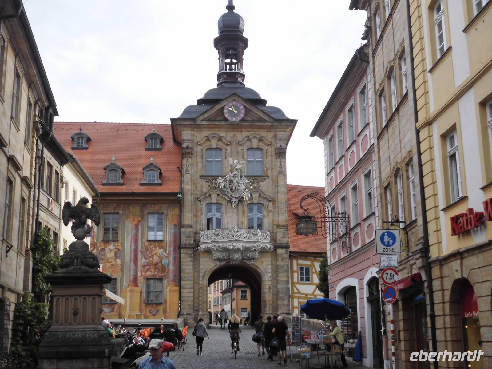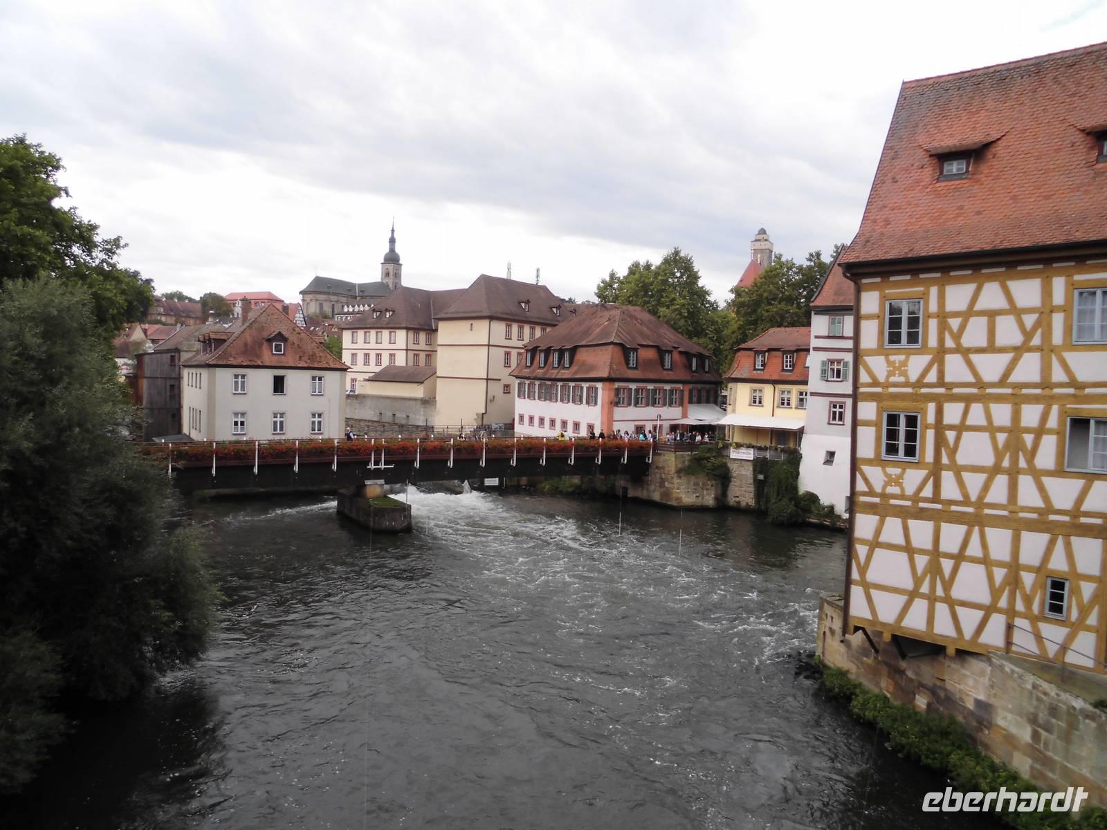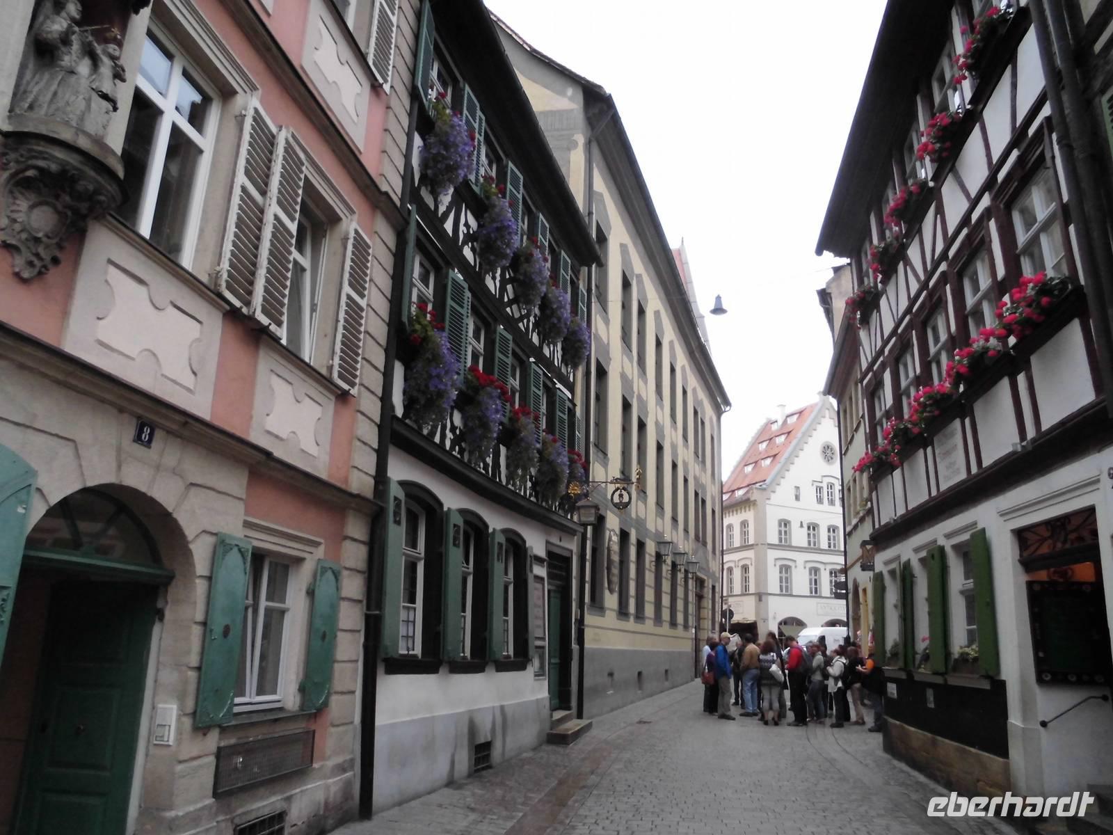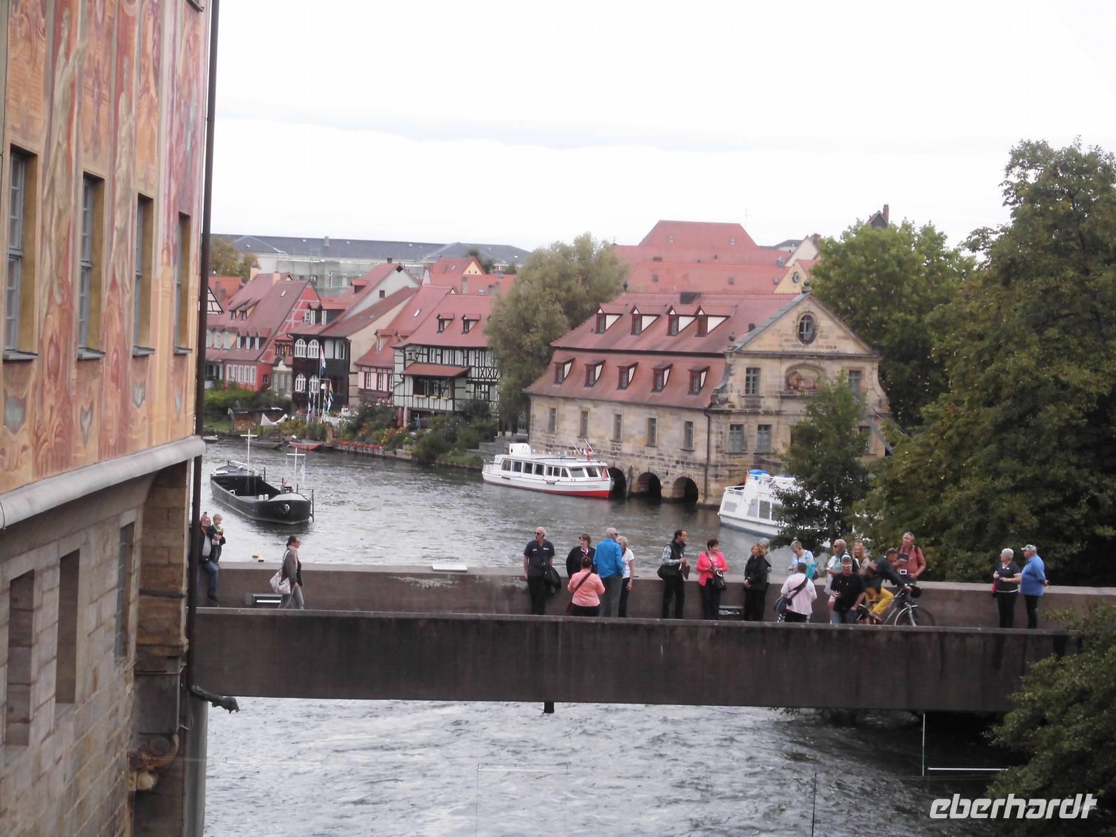 die Alte Residenz, Kleinvenedig das alte Fischerviertel an der Regnitz, das Brücken-Rathaus über der Regnitz, das E.T.A. Hoffmann-Haus. Am Ende der Führungen probieren wir im Biergarten noch das für Bamberg typische „Schleckerla Rauchbier".