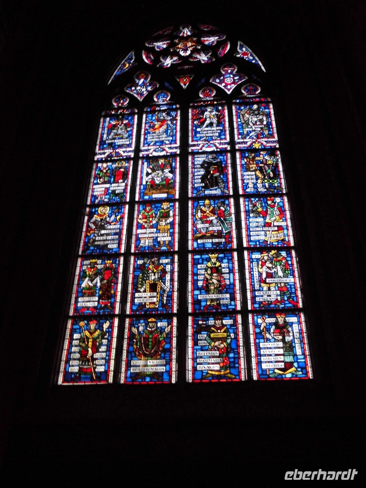 Nach dem Frühstück gehen sportliche Gäste zu Robert auf das Sonnendeck - Morgengymnastik ist wieder mal angesagt. Schön zu sehen das die Gruppe immer größer wird. Am Vormittag fordern wir das Glück heraus und ziehen Lose für die Tombola am Abend. Aufmerksam lauschten die Gäste der Bordreiseleiterin, Heike von Weber, die zu den vorbeiziehenden Landschaften und zum Fluss Main Informationen gab. Gegen 13.00 Uhr erreicht die MS Verdi Frankfurt am Anleger Nizza-Werft. Mit einer 90minütigen Busrundfahrt erkunden wir auf angenehme Weise die Mainmetropole. Frankfurt hat 700tausend Einwohner. 600tausend Arbeitskräfte kommen tagsüber in diese Stadt zur Arbeit. 1.400 Menschen arbeiten allein in der Commerzbank. Der gläserne Komplex der Euro Zentralbank entstand außerhalb des bisherigen Bankenzentrums. Wir fahren vorbei an der „Alten Oper" von 1882 die heute als Musikeltheater und für Kongresse genutzt wird. Am Marriott Hotel mit 162m das höchste Hotel Europas, dem Rothschild Park, dem Messegelände für die IAA und Frankfurter Buchmesse, dem ehemaligen CIA Europagebäude der USA das heute als Universität genutzt wird. Der Stadtteil Sachsenhausen ist der Kneipenbezirk Frankfurts. Er ist voll mit Restaurants, Kneipen und traditionellen „Appelwein-Schänken". Häuser die noch gut in Schuss sind aus dem 60er und 70er Jahren werden abgerissen. An deren Stelle kommen neue, noch höhere Häuser mit Tiefgarage von mehrern Stockwerken. Der Baugrund ist extrem teuer in dieser Stadt. Deshalb gehen nicht nur die Gebäude hoch hinaus sondern auch die Mieten. Unser junger Stadtführer versteht es toll, uns diese Stadt mit ihren multikulturellen Bürgern näher zu bringen. Am Römerberg machen wir Halt. Bei dem Informationsspaziergang erfahren wir, dass Frankfurts Altstadt zu 100% während des 2. WK zerstört war. Deshalb entstanden vor allem im Zentrum, Banken und Bürogebäude, Kaufhäuser. Die historische „Alte Wache" aus dem Jahr 1733, oder auch das Goethe-Geburtshaus, das heutige Steigenberger Hotel „Frankfurter Hof", sind nach dem Krieg neu aufgebaut worden. Jetzt planen die Architekten der Stadt vor allem die historische Altstadt besonders im Bereich um den Römer wieder aufzubauen. Dieses Gebäude ist seit gut 600 Jahren das mittelalterliche Rathaus der Stadt. Das mittlere der drei Häuser ist das eigentliche Gebäude zum Römer. Es gehörte einen Kaufmann der mit den Römern Handel trieb. So erklärt sich der Name. Mittlerweile bezeichnet man den gesamten Platz als Römer. Nicht schlecht staunten wir, dass der gesamte Platz voller grüner Ampelmännchen war. Eine Kunstinstallation von Prof. Ottmar Hörl zum Thema „25 Jahre Deutsche Einheit". 2015 gestaltet das Land Hessen die Jubiläumsfeiern in der Stadt Frankfurt und nicht in der Landeshauptstadt Wiesbaden. Wir gehen weiter zum Frankfurter Dom aus dem 14./15. Jahrhundert aus rotem Sandstein. 1356 fand hier die Wahl des Kaisers des Heiligen Römischen Reiches Deutscher Nation durch die deutschen Kurfürsten statt. Von 1562 bis 1792 wurden im Frankfurter Dom die Kaiser des Reiches gekrönt. Nach so vielen Informationen brauchen wir ein nettes Cafe um zu entspannen. Davon gibt es reichlich in Frankfurt. Die Sonne scheint an diesem Sonntag warm wie im Sommer. Wir flanieren individuell zurück an den Anleger "Nizza-Werft". Am späten Abend steht die Crewshow mit Tombola auf dem Programm. Die Jungs und Mädchen des Servicepersonals haben sich wirklich was einfallen lassen - sehr lustig - so die Meinung der Gäste. Auch die Preise der Tombola können sich sehen lassen. Hauptgewinn ein Swarowski Ensemble. Gefreut hat sich darüber eine Dame aus der EHT-Gruppe. Mit einem flotten Tänzchen endet dieser Abend.