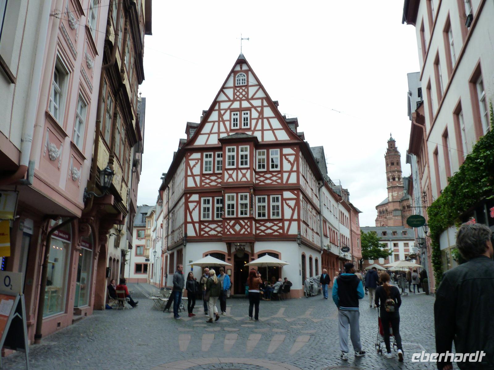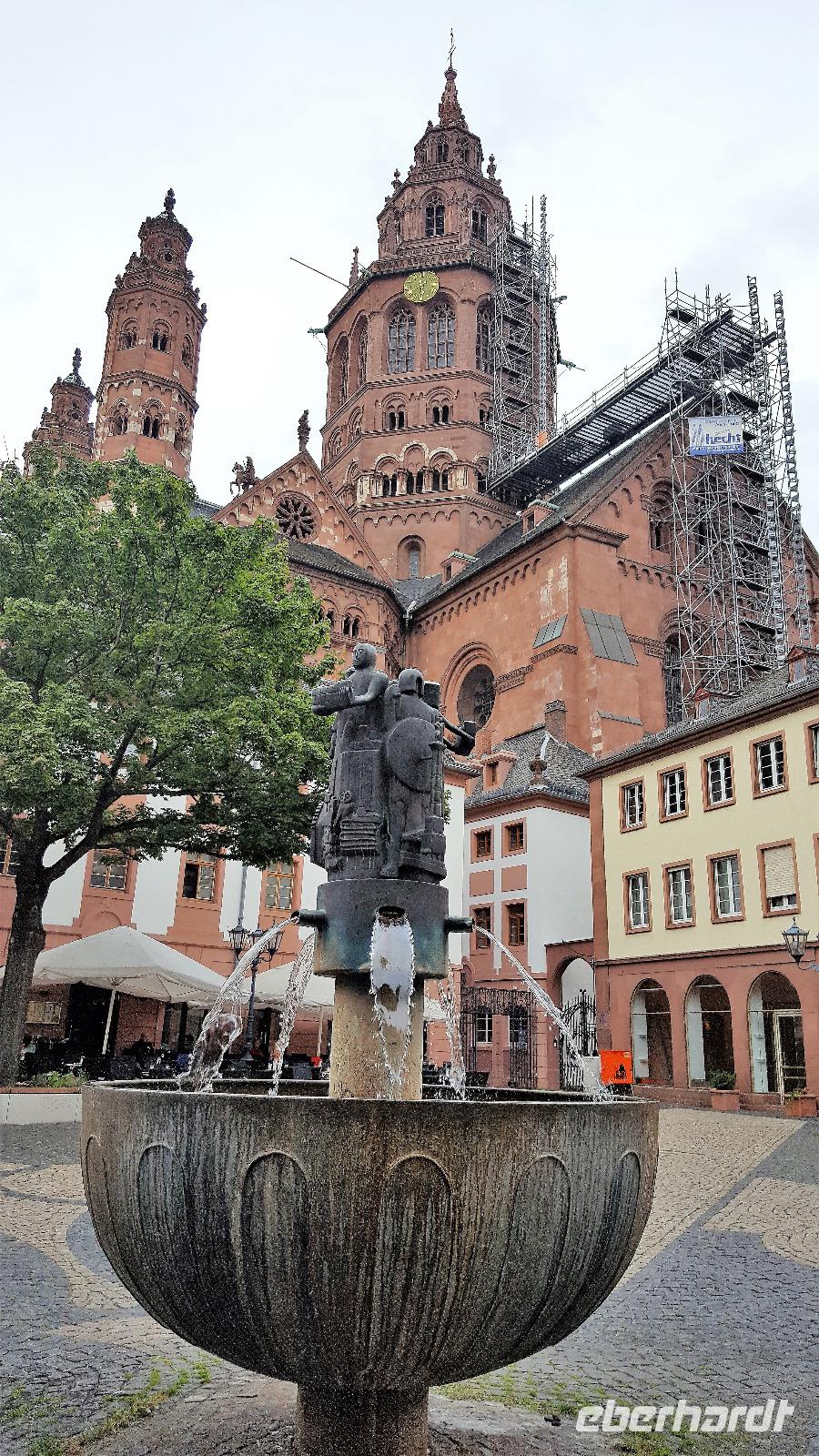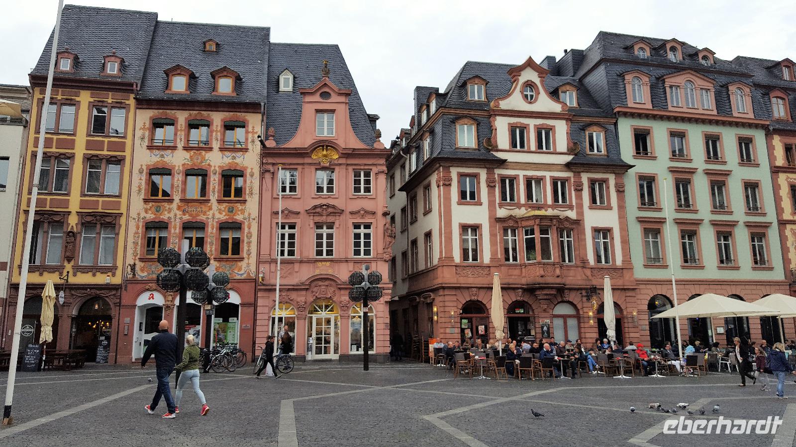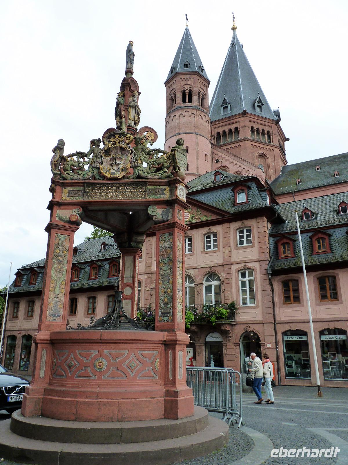 Bei einer 90minütigen Busrundfahrt, mit Frankfurter Charme erkunden wir auf angenehme Weise die Mainmetropole. Frankfurt hat 723tausend Einwohner. Der gläserne Komplex der Euro Zentralbank entstand außerhalb des bisherigen Bankenzentrums. Wir fahren vorbei an der „Alten Oper" von 1882 die heute als Musicaltheater und für Kongresse genutzt wird. Am Marriott Hotel mit 162m das höchste Hotel Europas, dem Rothschild Park, dem Messegelände für die IAA und Frankfurter Buchmesse, dem ehemaligen CIA Europagebäude der USA das heute als Universität genutzt wird. Der Stadtteil Sachsenhausen ist der Kneipenbezirk Frankfurts. Er ist voll mit Restaurants, Kneipen und traditionellen „Appelwoi-Schänken" und ihre Frau Rauscher (Wasserspeiende Bronzefigur) steht mittendrin. Unsere Stadtführerin versteht es, uns diese Stadt mit ihren multikulturellen Bürgern näher zu bringen. Am Römerberg machen wir Halt. Bei dem Informationsspaziergang erfahren wir, dass Frankfurts Altstadt zu 100% während des 2. WK zerstört war. Deshalb entstanden vor allem im Zentrum, Banken und Bürogebäude, Kaufhäuser. Die historische „Alte Wache" aus dem Jahr 1733, oder auch das Goethe-Geburtshaus, das heutige Steigenberger Hotel „Frankfurter Hof", sind nach dem Krieg neu aufgebaut worden. Jetzt planen die Architekten der Stadt vor allem die historische Altstadt besonders im Bereich um den Römer wiederaufzubauen. Am bekanntesten ist das mittelalterliche Rathaus mit dem großen Balkon. Hier werden Olympioniken empfangen oder Hochzeiten gehalten. Das mittlere der drei Häuser am Brunnen der Gerechtigkeit ist das eigentliche Gebäude zum Römer. Es gehörte einen Kaufmann der mit den Römern Handel trieb. So erklärt sich der Name. Mittlerweile bezeichnet man den gesamten Platz als Römer. Wir gehen weiter zum Frankfurter Dom aus dem 14./15. Jahrhundert aus rotem Sandstein. 1356 fand hier die Wahl des Kaisers des Heiligen Römischen Reiches Deutscher Nation durch die deutschen Kurfürsten statt. Von 1562 bis 1792 wurden im Frankfurter Dom die Kaiser des Reiches gekrönt. Nach so vielen Informationen brauchen wir ein nettes Café um zu entspannen. Davon gibt es reichlich in Frankfurt. Wir flanieren individuell zurück an den Anleger. Während des Mittagessens fahren wir weiter nach Mainz, wo wir am Nachmittag anlegen. Lebensfreude und eine 2.000-jährige Kultur prägen die liebenswerte Stadt am Rhein, Sitz der Johannes-Gutenberg-Universität, des römisch-katholischen Bistums Mainz sowie mehrerer Fernseh- und Rundfunkanstalten, wie des Südwestrundfunks (SWR) und des Zweiten Deutschen Fernsehens (ZDF). Mainz versteht sich als eine Hochburg der rheinischen Fastnacht. Bei einem individuellen Rundgang lernen wir die Augustinerstraße und den Dom St. Martin, die Domhäuser, Anno 1771 und der Renaissance-Ziehbrunnen, 1526 gestiftet von Erzbischof Albrecht kennen.
