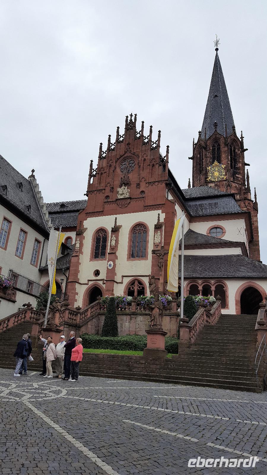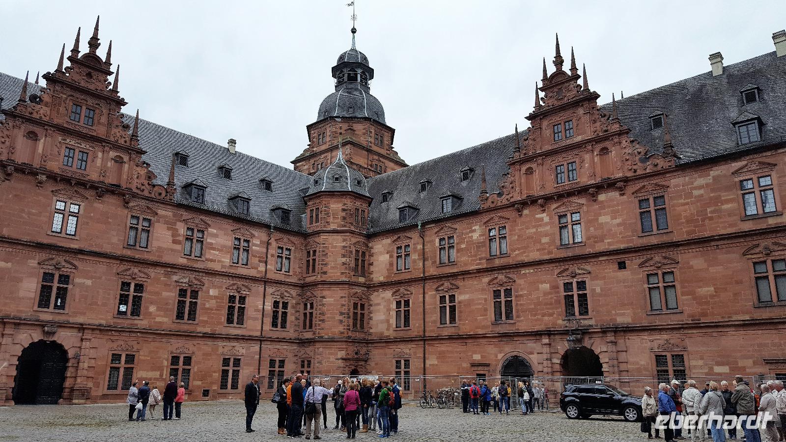 Im Anschluss fährt unser Bus gemeinsam mit PTI zum kleinen Rundgang durch Aschaffenburg. Das Schloss aus rotem Buntsandstein gehört zu den bedeutendsten und schönsten Renaissancebauten Deutschlands. Zwischen Schloss Johannisburg und Pompejanum liegt ein sehr abwechslungsreicher Park mit einem reizvollen Laubengang über der mittelalterlichen Stadtmauer, dem klassizistischen Frühstückstempel und einem Teil des ehemaligen Stadtgrabens, der im 18. Jh. von Friedrich Ludwig Sckell gestaltet wurde. Vom Schloss Johannisburg bis zum Rathaus finden sich verwinkelte enge Gassen, in denen sich hübsche kleine Fachwerkhäuser mit urigen Kneipen und Restaurants abwechseln. Ende war die Stiftsbasilika St. Peter und Alexander, der einzigen Kirche weltweit, die dem Heiligen Petrus und Alexander geweiht ist.