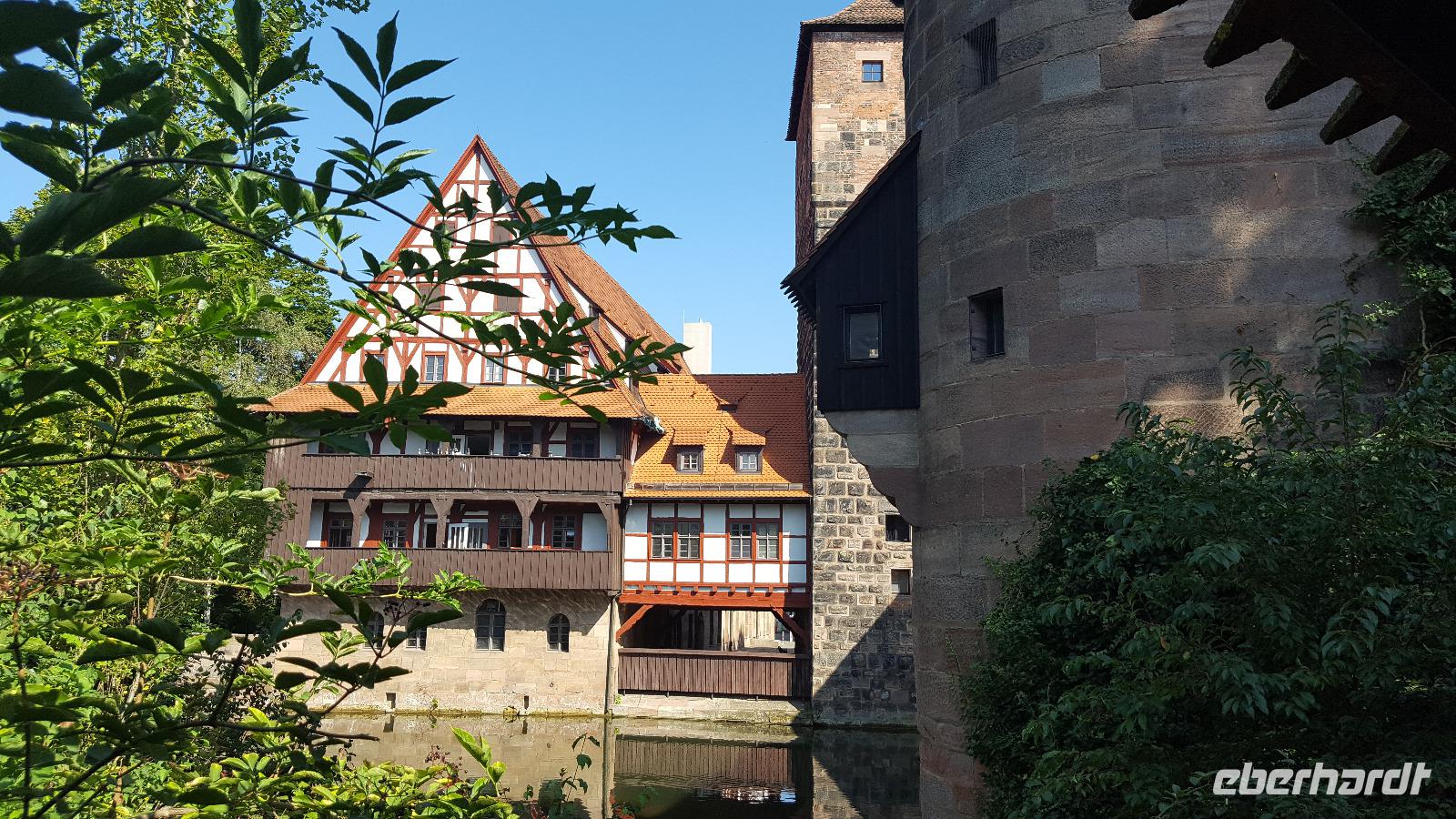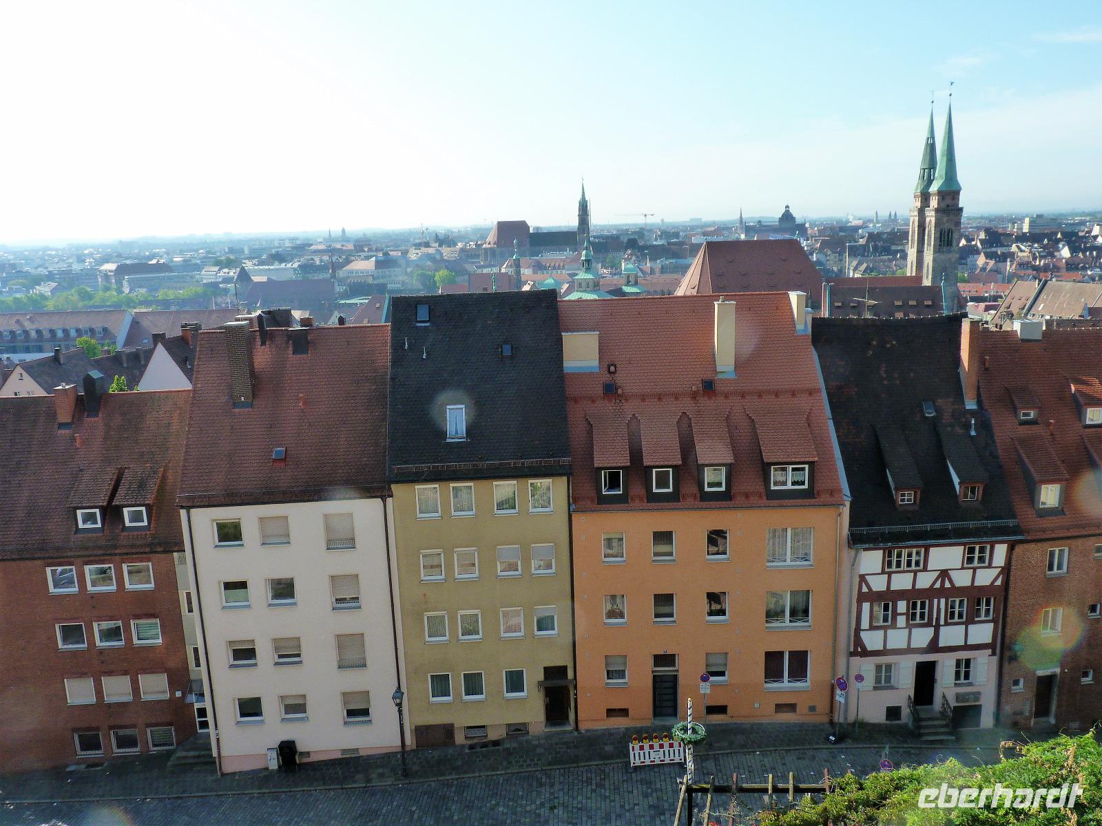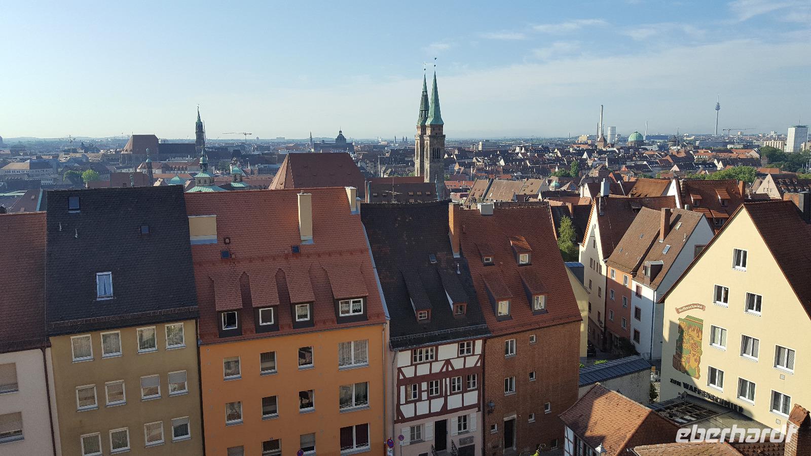 Nach dem ersten Frühstück an Bord fahren wir mit unserem Bus entlang der fast vollständig erhaltenen Stadtmauer mit dem Laufer-, Frauen-, Kasematten-, Neu-, Weißer- und Maxtorturm hoch zur Kaiserburg. Der Name der Stadt leitet sich von „nor" für steiniger Fels ab und bezeichnete den von weit her sichtbaren Keuperfels mit der Burg.