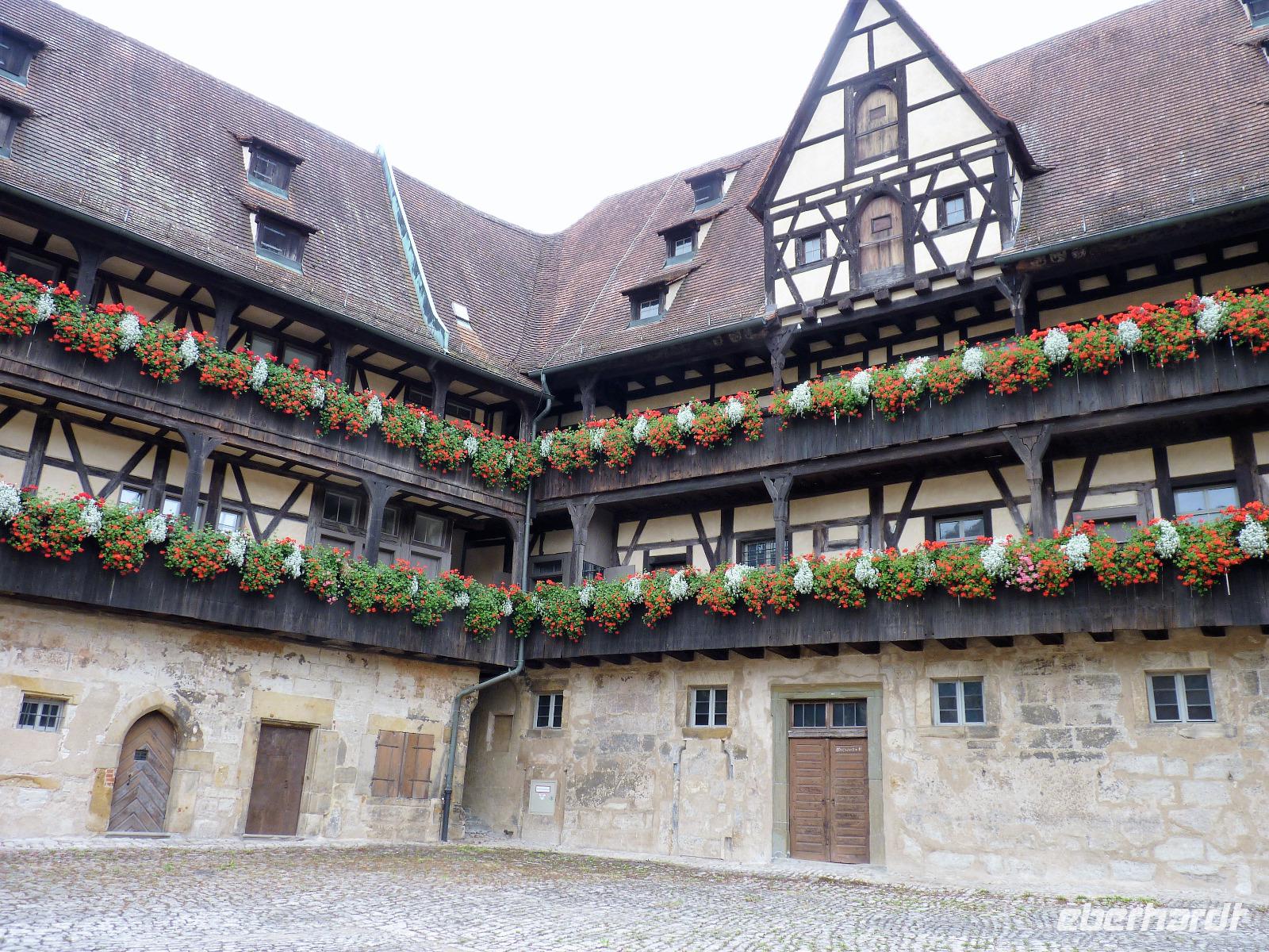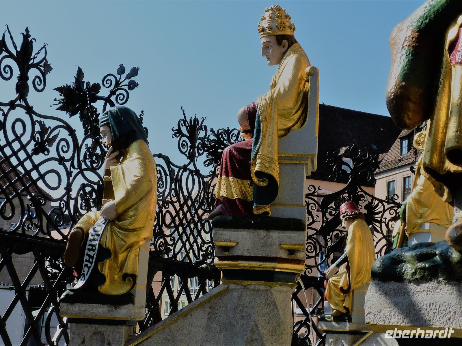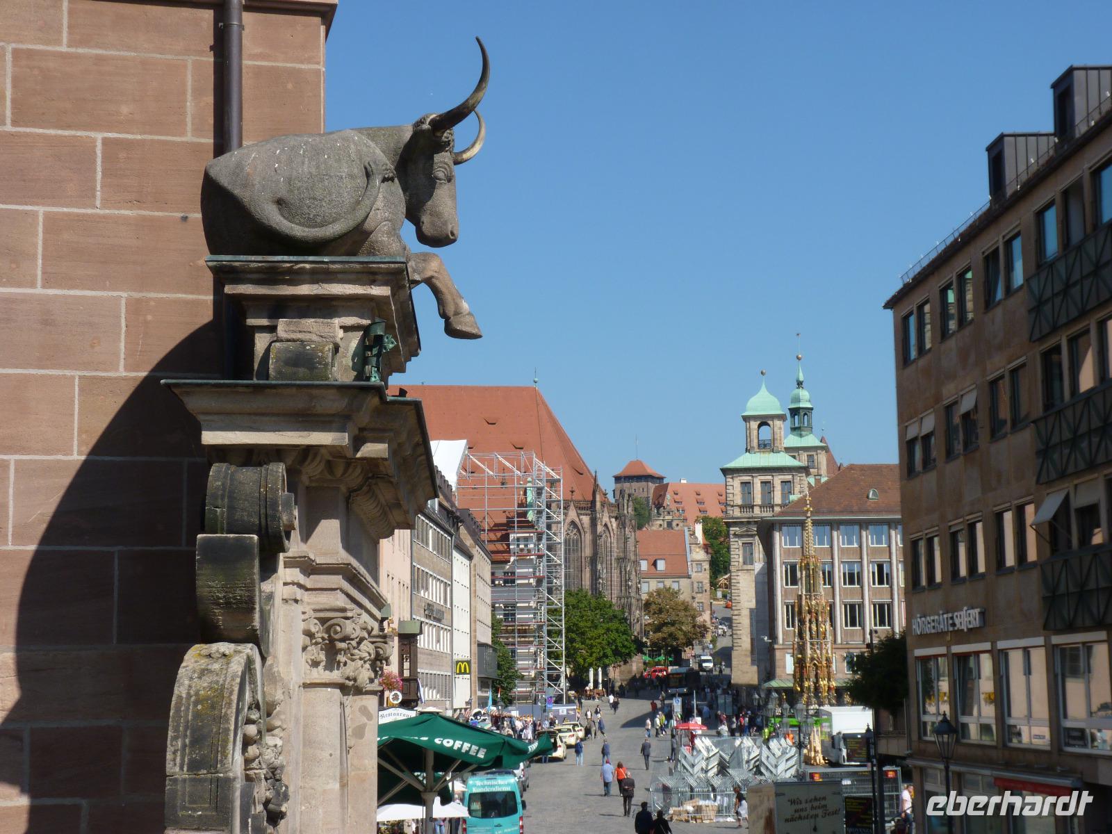 Nach dem ersten Frühstück an Bord fahren wir mit unserem Bus entlang der fast vollständig erhaltenen Stadtmauer mit dem Laufer-, Frauen-, Kasematten-, Neu-, Weißer- und Maxtorturm hoch zur Kaiserburg. Der Name der Stadt leitet sich von „nor" für steiniger Fels ab und bezeichnete den von weit her sichtbaren Keuperfels mit der Burg.