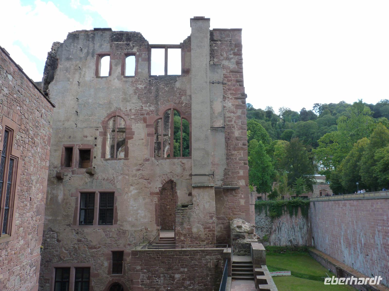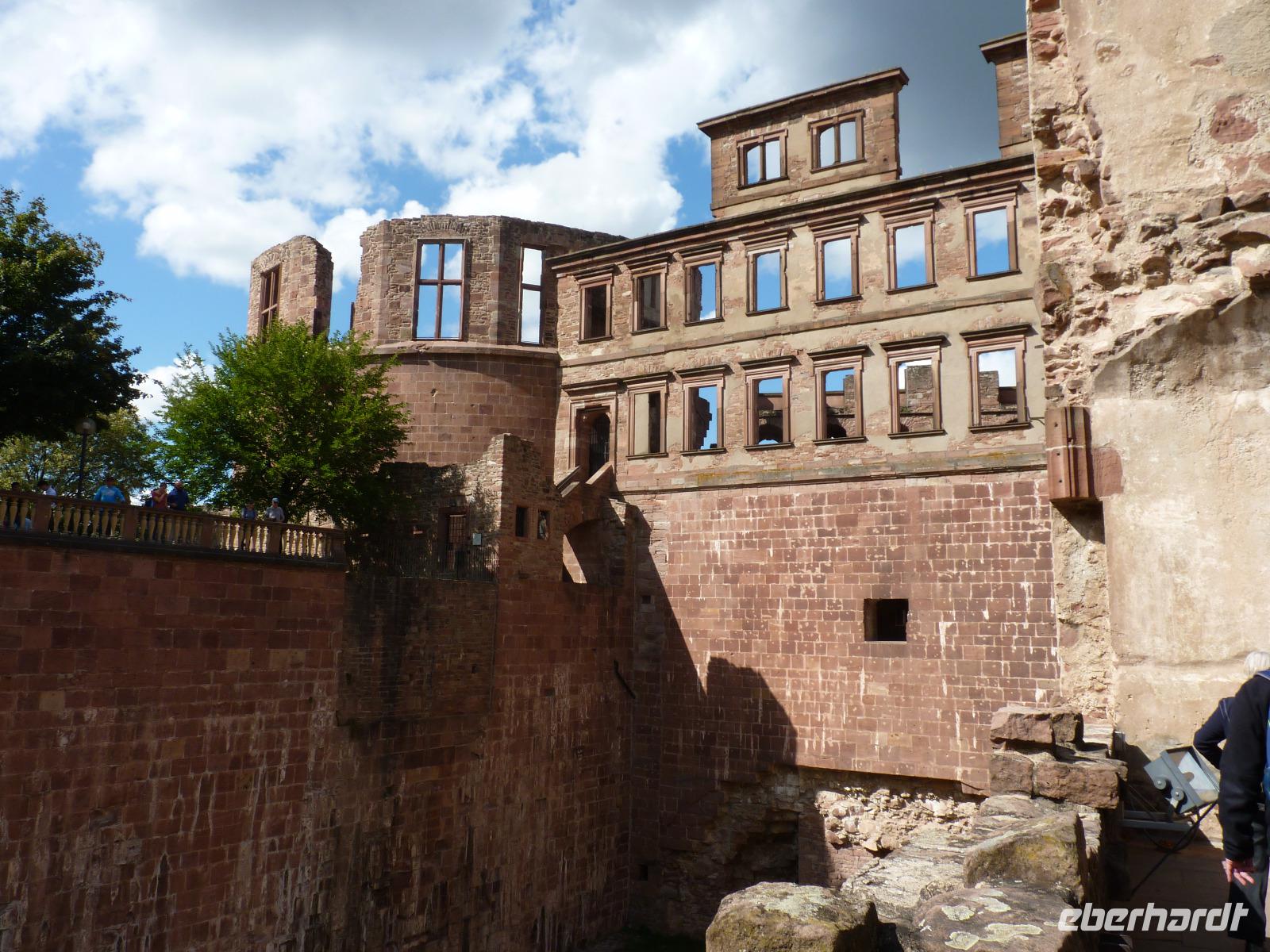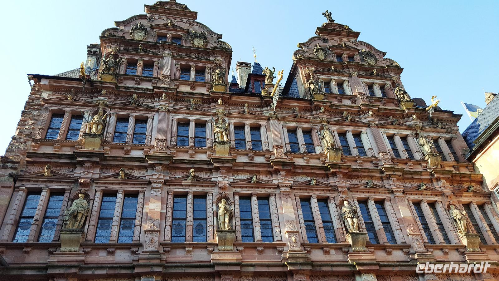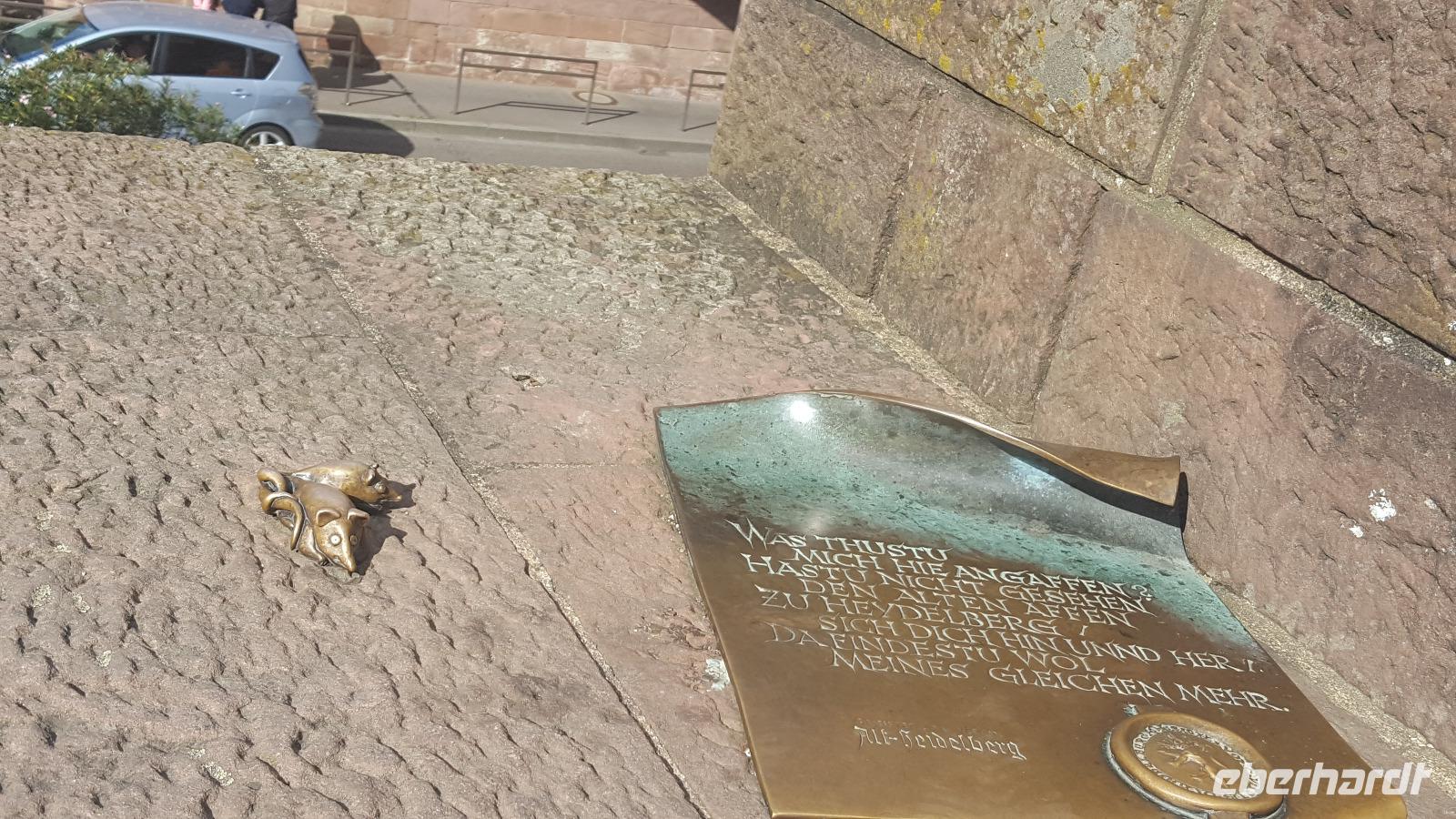 Mit drei Bussen geht auf einer ziemlich engen Straße zum Heidelberger Schloss hinauf. Dort erwarten uns die „Schlossgeister" und führen uns durch die wechselvolle Geschichte des Schlosses. Die im 13.Jhd. begann, mehrfach erweitert und vom 14 Jhd. bis 1720 Residenz der Pfalzgrafen war. 1688-1689 von den Franzosen erobert und zerstört, um dann als Ruine von den Romantikern wieder entdeckt zu werden. Das berühmte Holzfass, in dem nie Wein war, das Apothekenmuseum und die Terrasse mit dem Kavalierssprung sehen wir uns in der Freizeit an.