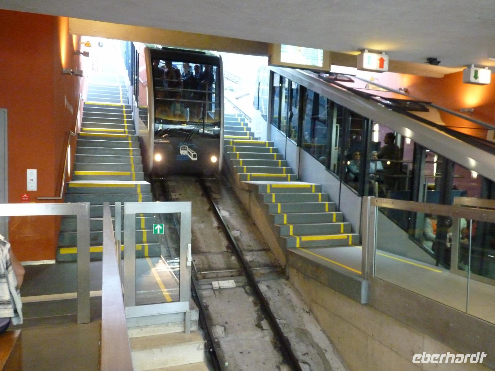 Wer möchte fährt mit der Bergbahn oder gehen zu Fuß in die Stadt hinunter.