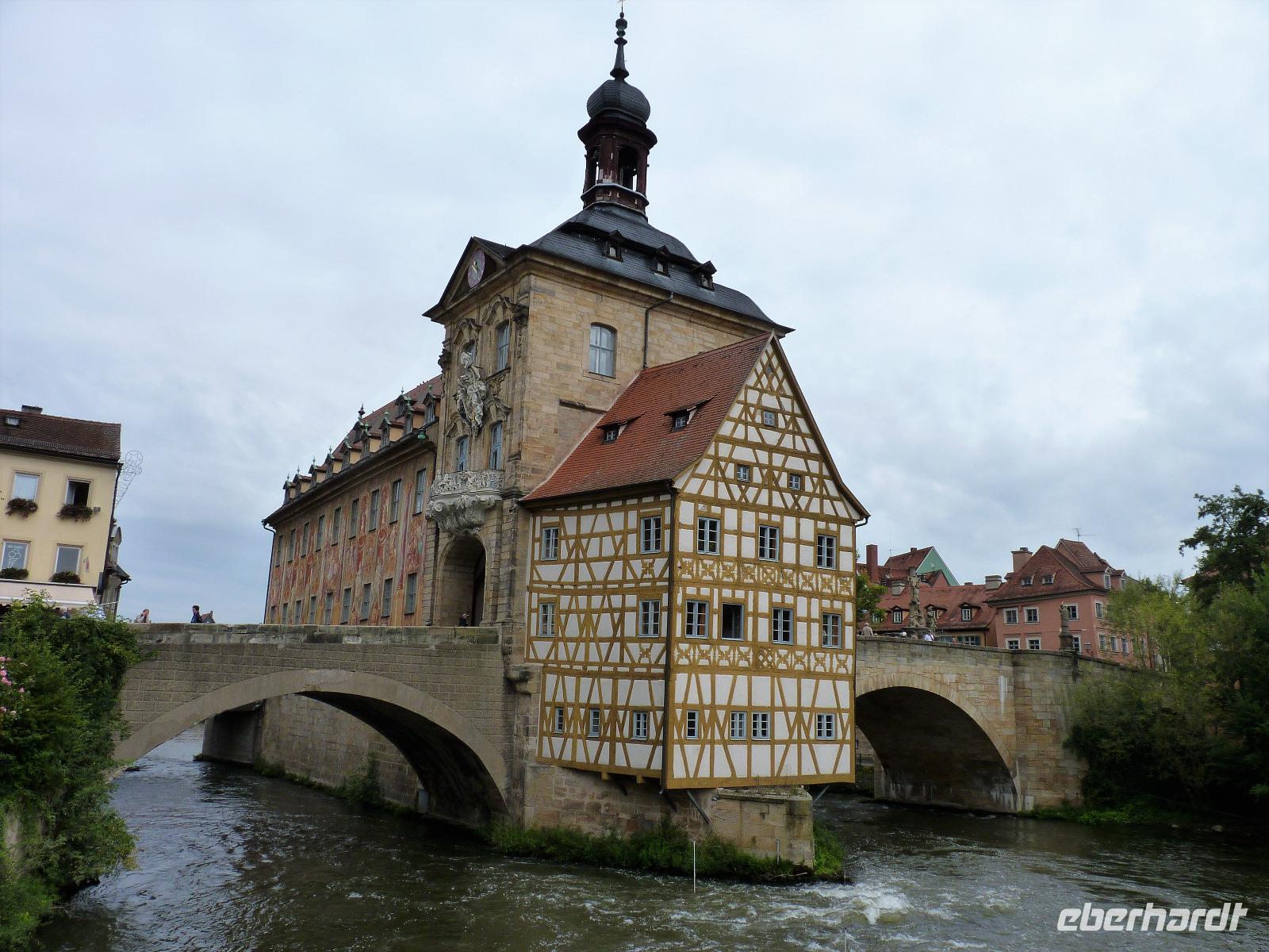 Der Spaziergang geht entlang der Regnitz, vorbei am kleinen Venedig und erliegen dem Charme der romantischen Gassen und Plätze. Highlight das alte Rathaus umgeben vom Fluss mit mehreren Gemälden des Impressionisten August von Brandis.