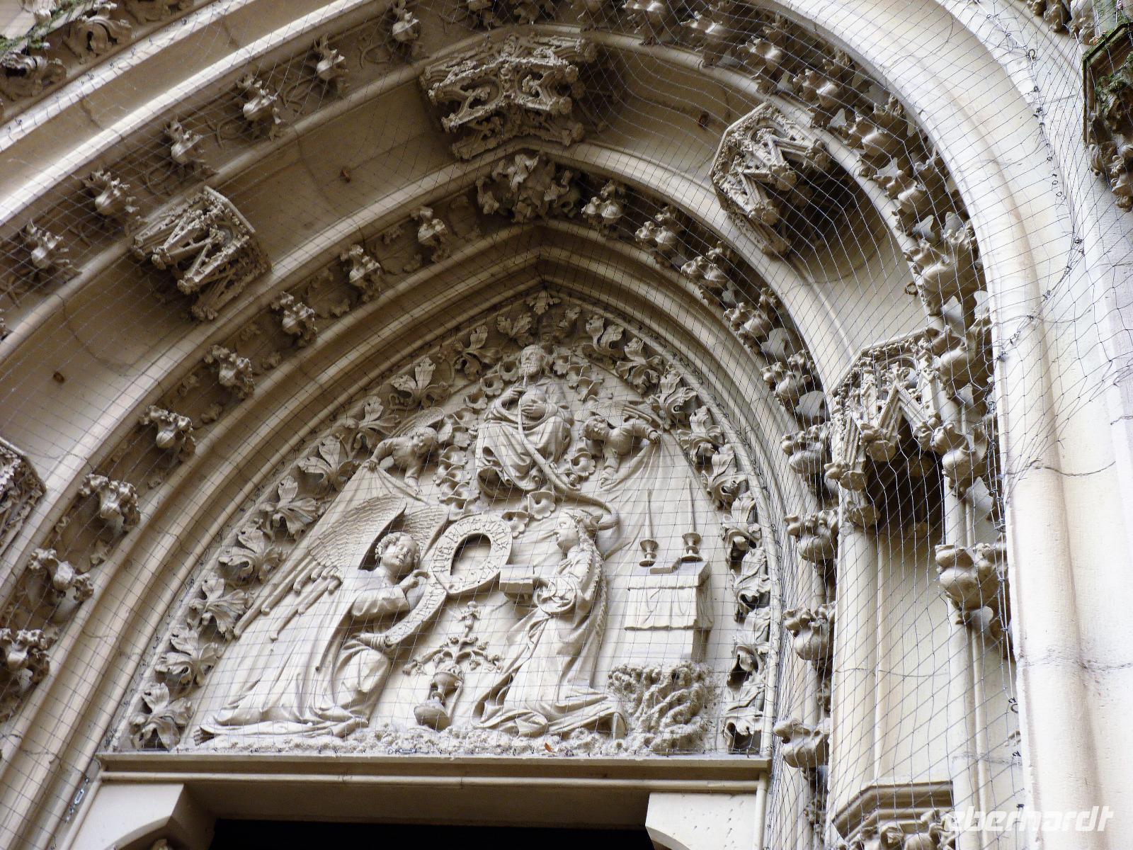 Im Mittelalter wurde Köln zu einem bedeutenden kirchlichen und zu einem wichtigen künstlerischen und edukativen Zentrum. Der Kölner Dom beherbergt den Dreikönigenschrein, in dem angeblich die Reliquien der Heiligen Drei Könige aufbewahrt werden, daher die drei Kronen im Stadtwappen. Der Kölner Dom - 1996 zum UNESCO-Weltkulturerbe erklärt - ist das Wahrzeichen der Stadt und dient als inoffizielles Symbol. Köln wurde im Zweiten Weltkrieg schwer zerstört, heute ist die Stadt eine kulturelle Metropole mit vielen wichtigen Museen, Galerien und Kunstmessen sowie einer lebendigen Musikszene.