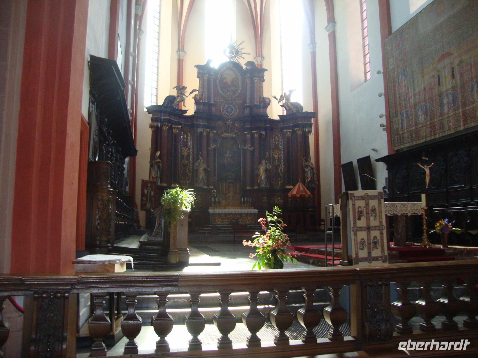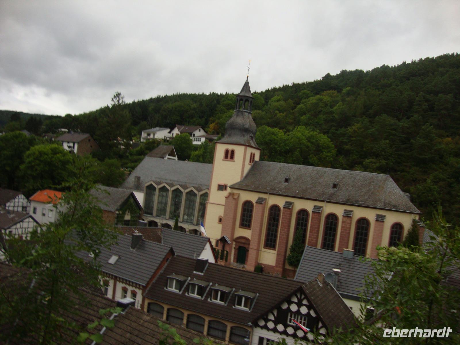 Heute waren wir unterwegs in der Südeifel und besuchten zuerst das hübsche Städtchen Prüm. das imposanteste Bauwerk der Stadt ist die ehemalige Benediktinerabtei. Prüm und seine Abtei waren vor mehr als tausend Jahren ein geistiges Zentrum des Karolingerreiches. 799 kamen sogar Papst Leo III. und Kaiser Karl der Großes zur Einweihung. Heute logiert darin ein Gymnasium. In der St.Salvator - Kirche liegt Karls Enkel, Kaiser Lothar I., begraben. in beeindruckender Art und Weise führte uns Frau Rolef durch die, mehrere Stilrichtungen, aufweisende Kirche und ging auch auf kleinste Details ein, z.B. das früher hier in einem Schrein ein Stück der Sandalen von Jesus Christus aufbewahrt wurden. Alle waren wir von der interessanten Führung begeistert und bedankten uns bei Frau Rolef auf das Herzlichste. Anschließend blieb noch Zeit die kleine und wieder schön aufgebaute Stadt zu besuchen, denn im 2.Weltkrieg war sie völlig zerstört.