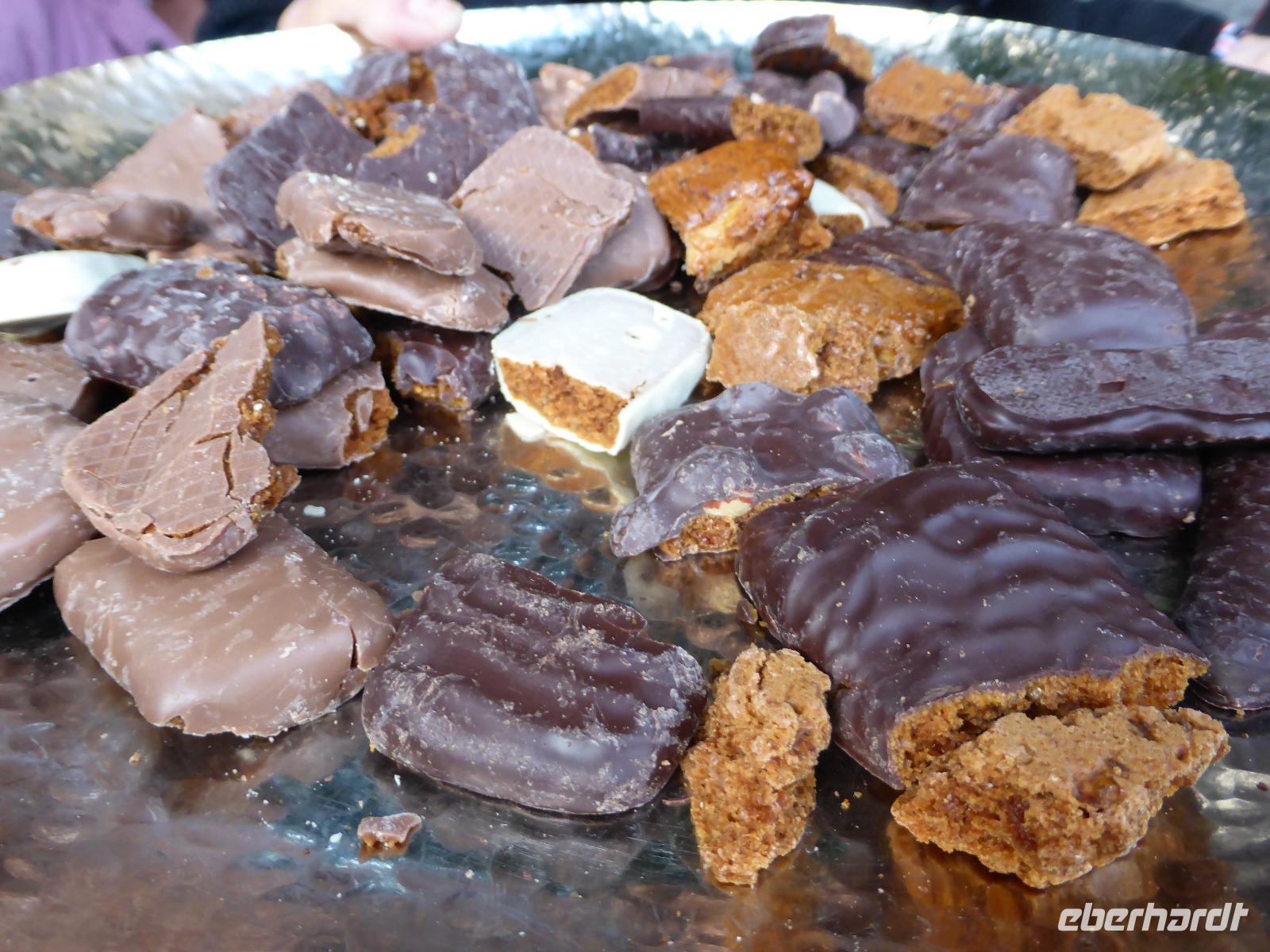 Nach dem Mittag fahren wir weiter nach Bad Münstereifel und werden in einer Stadtführung entlang der Erft in die Zeit vergangener Jahrhunderte entführt. Wir erfahren, wie die Tuchmacher, die Gerber, die Färber, die Täschner, die Bierbrauer ihre Handwerke ausführten. Einige Gäste lassen es sich nicht entgehen, im Apothekenmuseum den gepriesenenen Magenbitter des Apothekers Stephinsky als Mitbringels - oder zur eigenen Verwendung?- zu erwerben. Andere Gäste machen einen Spaziergang bergan zum Historischen Kurhaus, in welchem sich das Heino-Cafe befindet und kosten dessen legendäre Haselnuss-Torte.