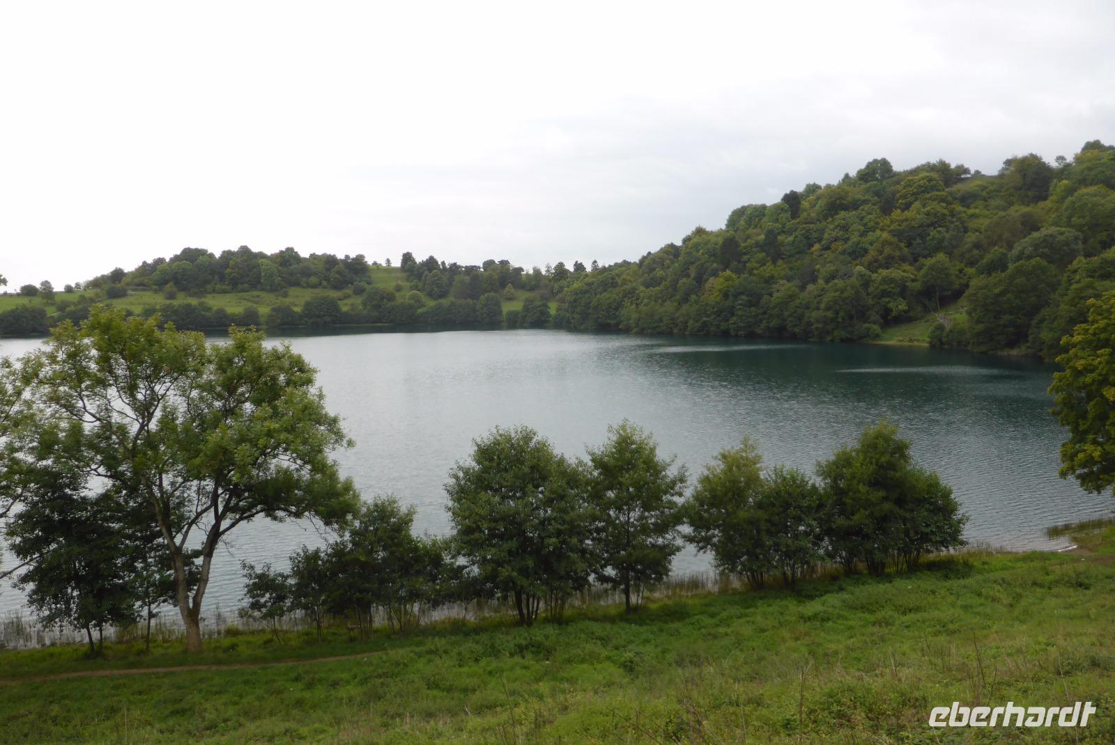 Und zum Abchluss geht es auf Entdeckertour ! Wir wollen ein Maar, ein "Auge" der Eifel, finden Und wir werden fündig: unweit von Prüm befinden sich die drei Dauner Maare, die zu den schönsten in der Eifel gehören. Wir haben Zeit, einen Spaziergang entlang des mittleren, des Weinfelder Maares und noch zum Aussichtsturm zu machen, um einen fantastischen Blick über die Eifel und diese Maare zu genießen.