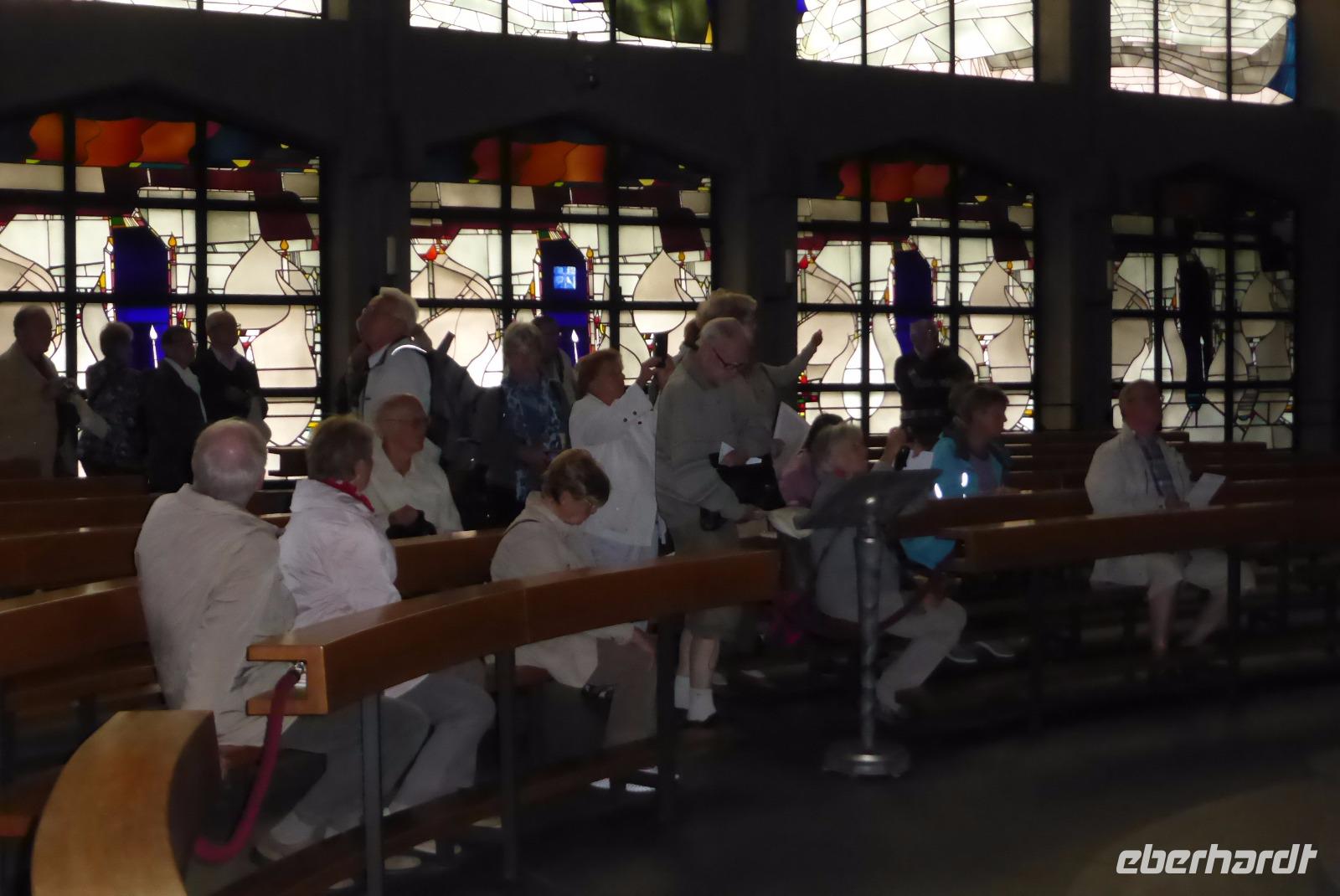 Die Gäste steigen in Dresden/Flughafen und an vier weiteren Zustiegsstellen entlang der A4 zu. Zweiunddreißig an der Zahl kommen sie aus Dresden, Pirna, Plauen, Glashütte, Hoyerswerda, Wittenberg, Leipzig, Jena, Bernburg a.d.Saale, Erfurt und Mühlhausen. Nach einer entspannten Reise freuen wir uns auf die Stadtführung in Köln , die um 15 Uhr beginnen soll. Jedoch kommt es anders. Im Zentrum Kölns findet gerade das Finale eines internationalen Triathlon-Wettbewerbs statt. Es will einfach nicht gelingen nicht, mit dem Bus rechtzeitig zu unserem örtlichen Stadtfüherer zu gelangen, denn so viele Straßen sind gesperrt. Wir fahren dreimal über den Rhein hin und her, haben durchaus schon spannende Eindrücke der Großstadt Köln, aber letztlich brechen wir das Vorhaben "Stadtführung" für heute ab und verschieben es. Nunmehr geht es nach Simmerath-Einruhr direkt am Nationalpark Eifel in unser Hotel "Seemöwe", checken ein und essen zu Abend.