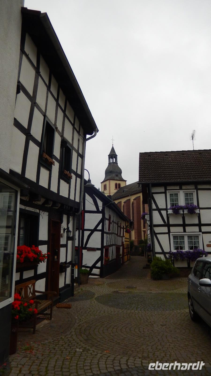 Eigentlich wollen wir an Heinos Kurhaus - Cafe anhalten, aber wir finden keine passende Ausstiegsmöglichkeit. Auf unsere Nachfrage, wer denn überhaupt hier aussteigen möchte, meldet sich niemand. So lässt uns Holger in der Nähe des "Orchheimer Tores" heraus und wir bummeln durch die hübsche Altstadt. Der mittelalterliche Stadtkern ist vollständig von einer Mauer mit vier Toren umgeben. Alte hübsch restaurierte Fachwerkhäuser stehen am Ufer der Erft. Auch ein Blick in die Stiftskirche "St. Chrysanthus und Daria" ist lohnenswert, ehe wir wieder zurück ins Hotel fahren.