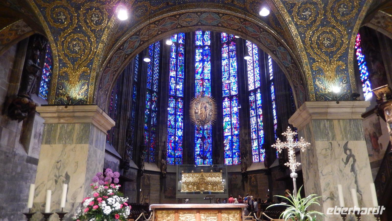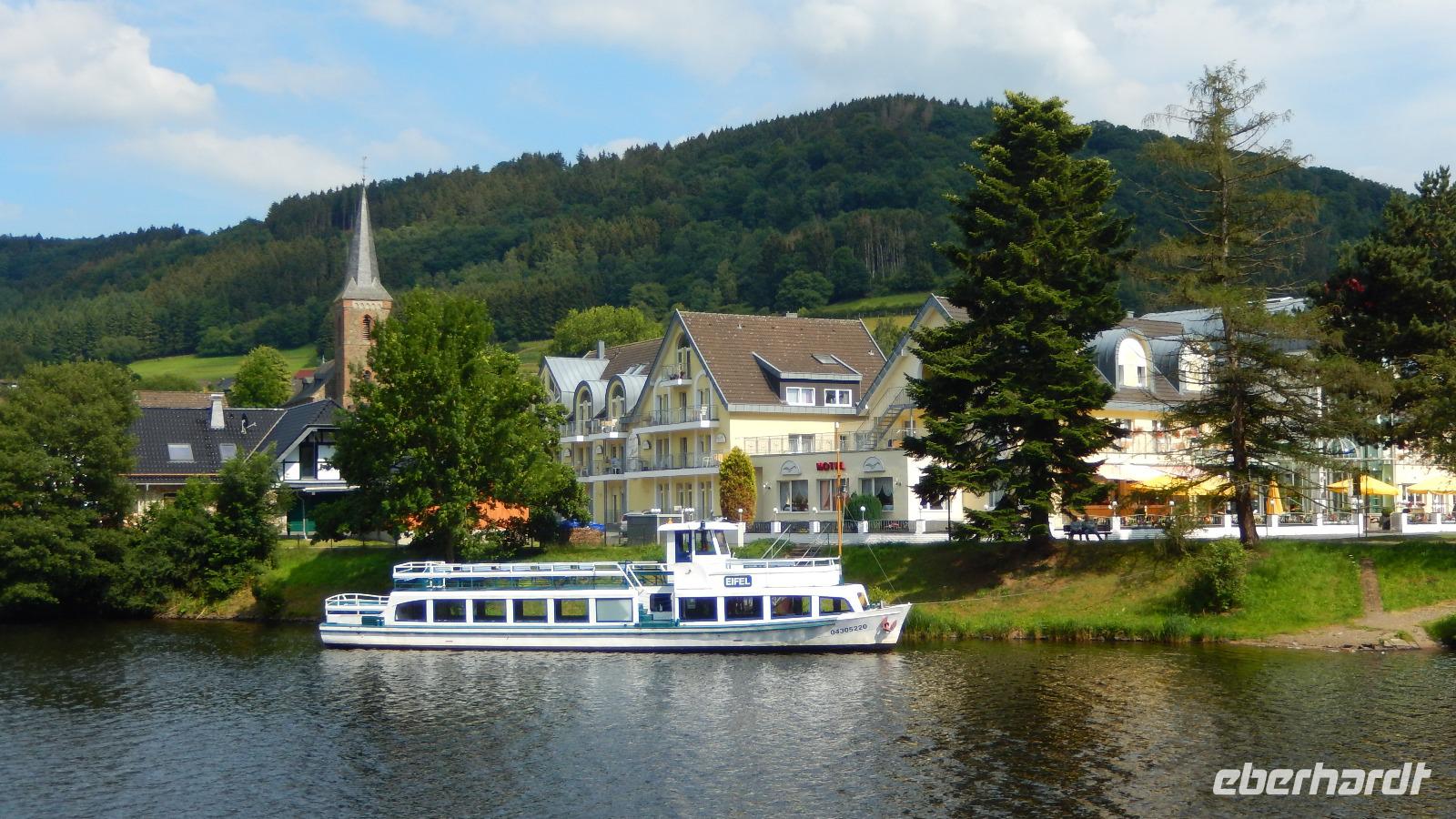 Nach der Führung haben wir dann ausrechend Zeit, den Dom im Inneren zu bewundern, vielleicht sogar an einer Innenführung teilzunehmen oder die Domschatzkammer zu besuchen. Am frühen Nachmittag reisen wir nach Einruhr zurück, um eine Schifffahrt auf dem Obersee zu unternehmen. Da die Schiffsanlegestelle genau vor unserem Hotel ist, können wir noch schnell das Gepäck ablegen und auf gehts ... Vorbei an Rurberg fahren wir zwei Stunden über den von herrlichen Wäldern umgebenen See bis zur Urftstaumauer und zurück.