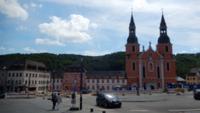 Unser erstes Ziel ist heute Prüm in der Südeifel. Die Stadt wird noch immer von der ehemaligen Reichsabtei geprägt. Das Hauptsehenswürdigkeit, die Basilika St. Salvator, wird leider zur Zeit restauriert und ist nicht zu besichtigen. Auch der Hahnplatz vor der Basilika ist eine einzige Baustelle. Aber unsere Stadtführerin, Frau Triendl, erklärt uns die ganze Geschichte anhand von Fotos sehr anschaulich.