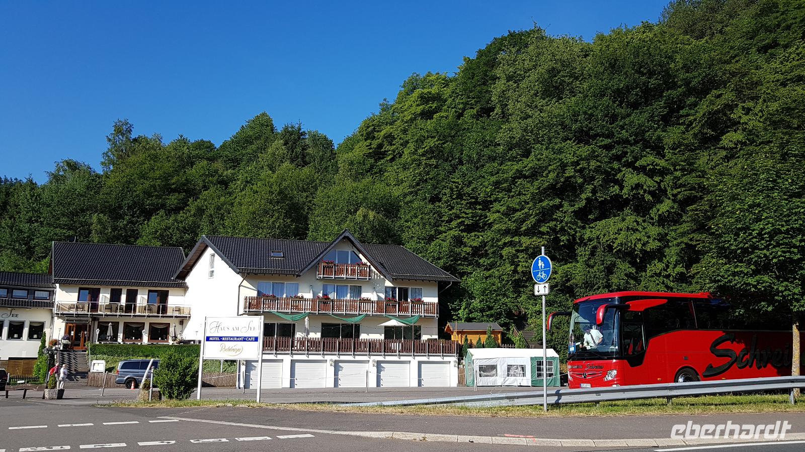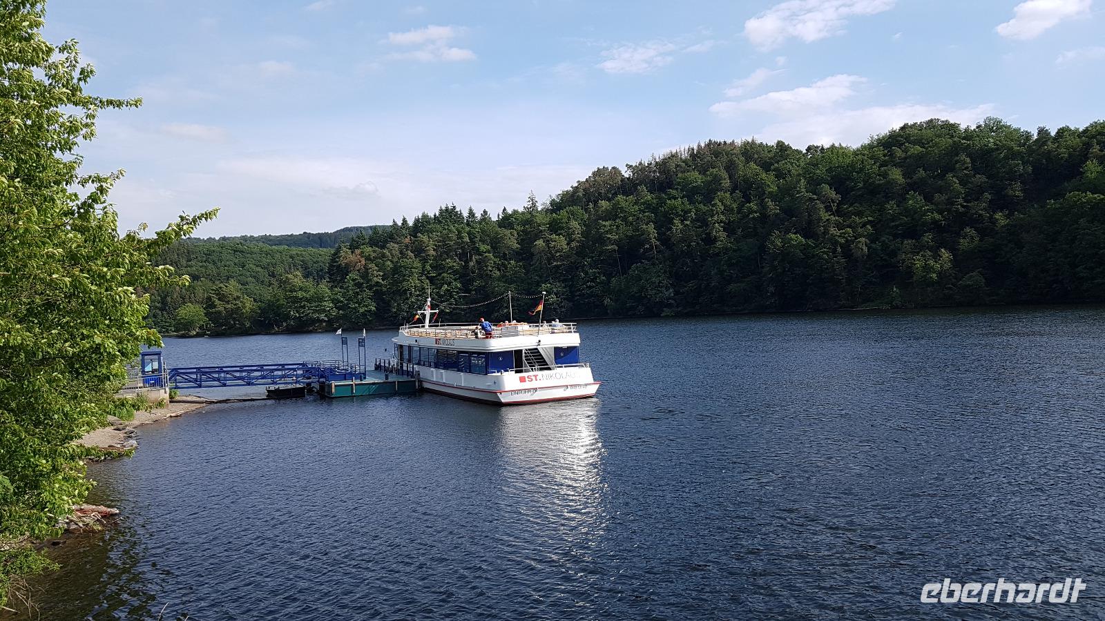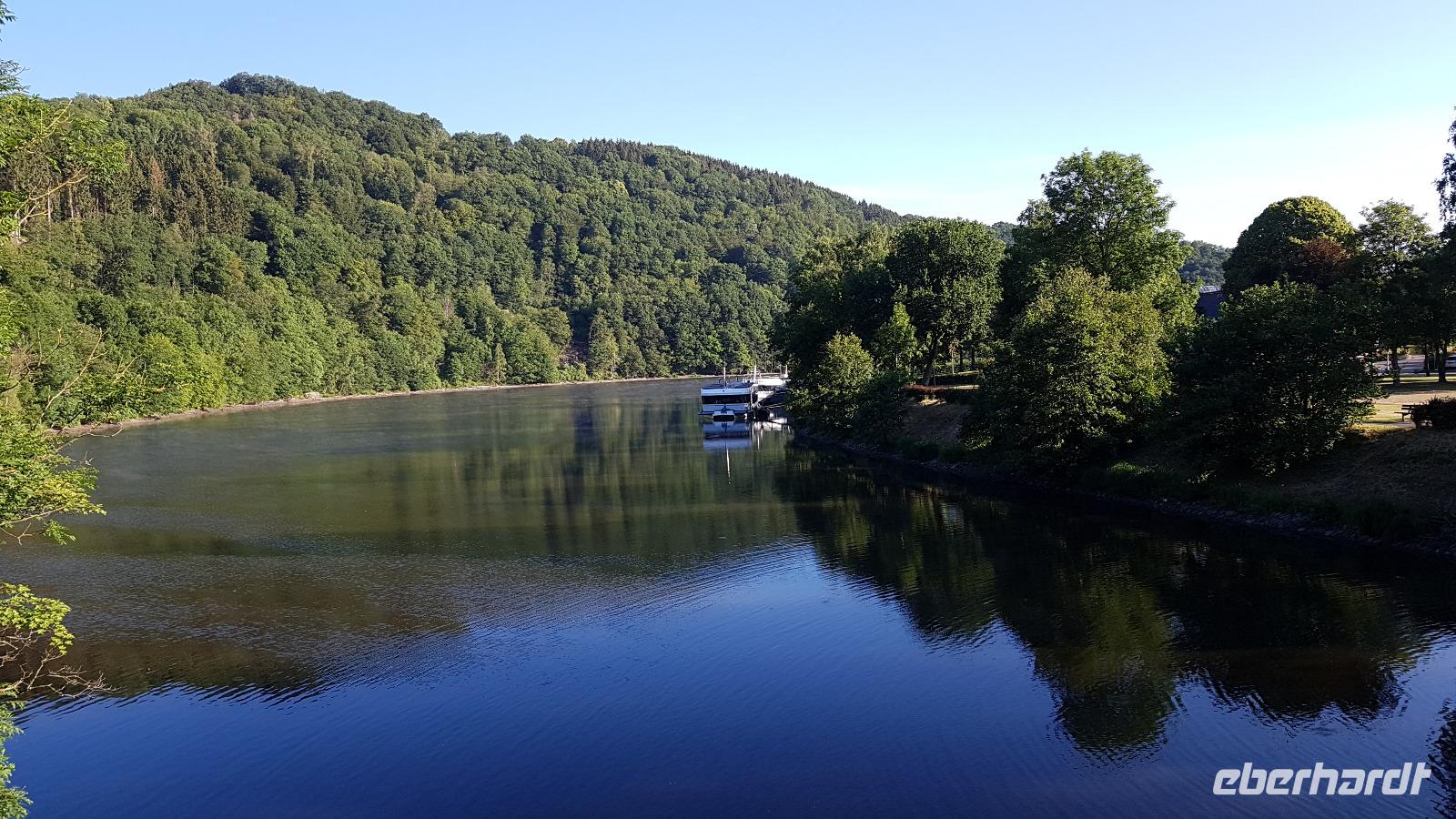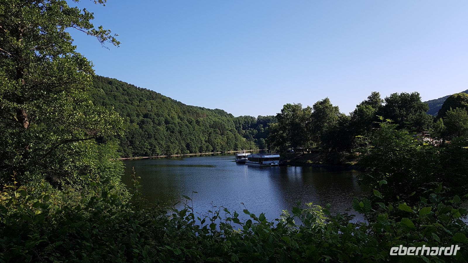 Wir wohnen im Haus am See, idyllisch gelegen, ein Familienbetrieb mit lieben und zuvorkommenden Inhabern. Noch bevor wir unser Hotel beziehen fahren wir nach Rurberg: eine Schifffahrt wartet auf uns: mit den elektrisch betriebenen Schiffen ist es eine wunderschöne Fahrt über den Obersee zur Urftstaumauer und zurück. Hier heißt es : Angekommen im Urlaub. Mit unserem Bus geht es dann zurück nach Einruhr ins Hotel, unser Fahrer Marcel nimmt souverän die Serpentinen und bringt uns zu unserem "Haus am See".