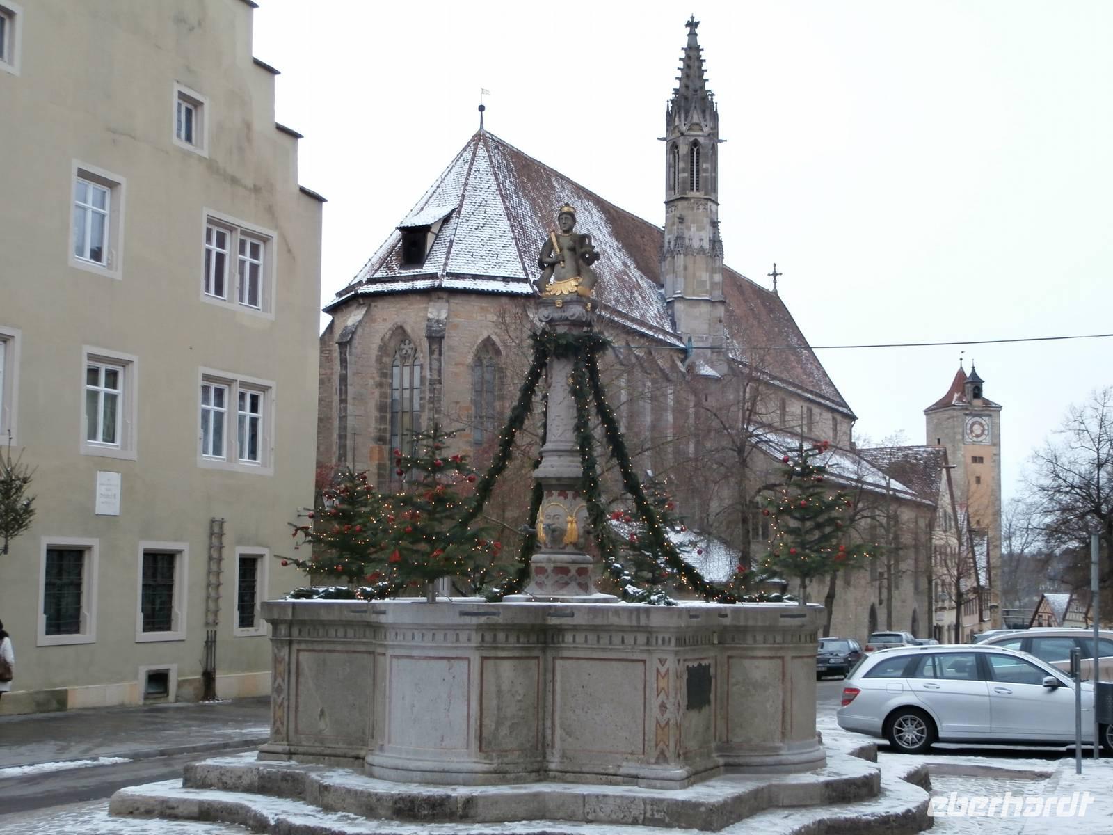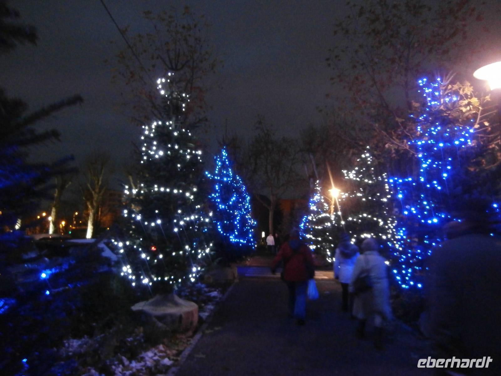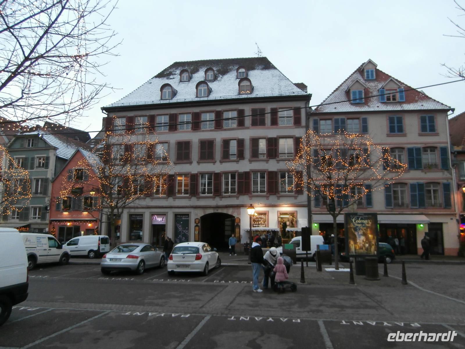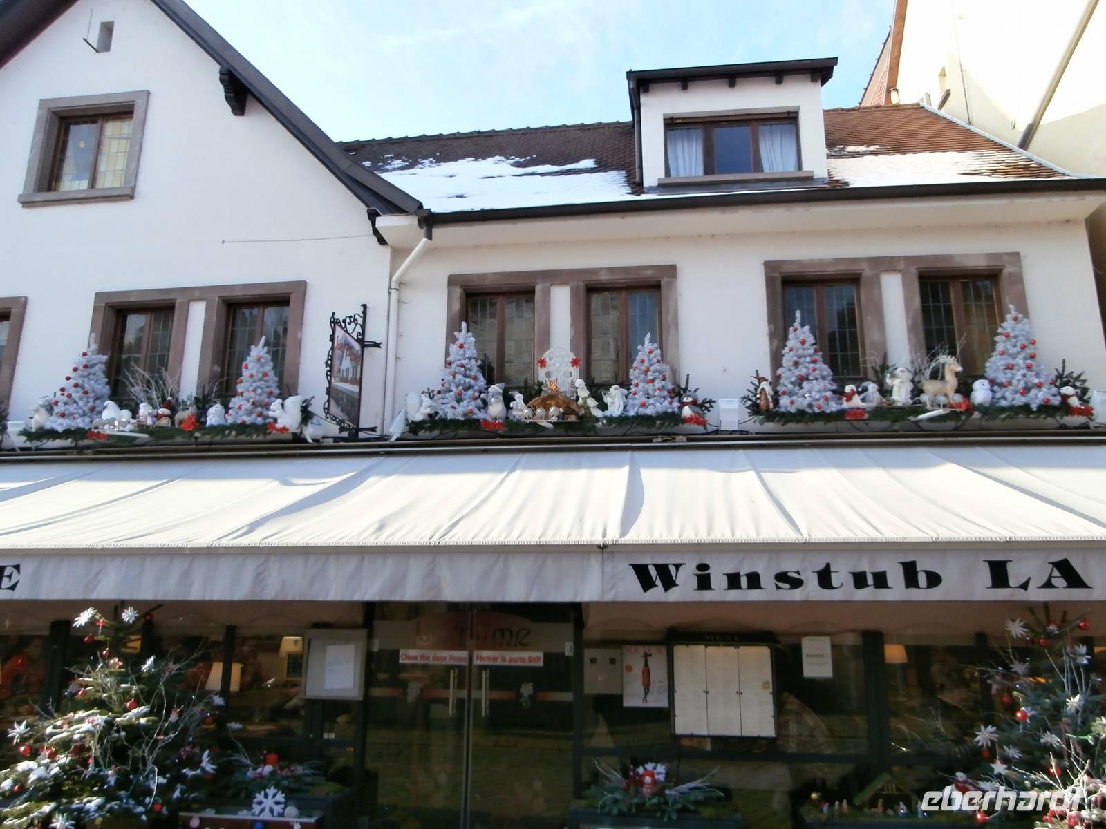 Obernai, an der Elsässischen Weinstraße gelegen, besuchen wir am zeitigen Nachmittag. Durch ein kleines Stadttor gelangen wir hinein in die Stadt vorbei an der alten Synagoge, auch hier wieder weihnachtliche Atmosphäre, in den Gassen hübsch geschmückte Fassaden. Weißer Glühwein von den örtlichen Winzern ausgeschenkt, schmeckt und wärmt durch. Am Marktplatz sehen wir den Odilienbrunnen, die Heilige Odilie ist die Schutzpatronin des Elsaß und sie wurde in Obernai geboren. Vorbei am Sechs-Eimer-Brunnen, der im Renaissancestil errichtet wurde, gelangen wir zur Pfarrkirche St. Peter und Paul, sie ist nach dem Münster in Straßburg, die größte Kirche im Elsass, gebaut in neugotischen Stil. Langsam einsetzende Dunkelheit macht uns gespannt auf den Besuch in Colmar.