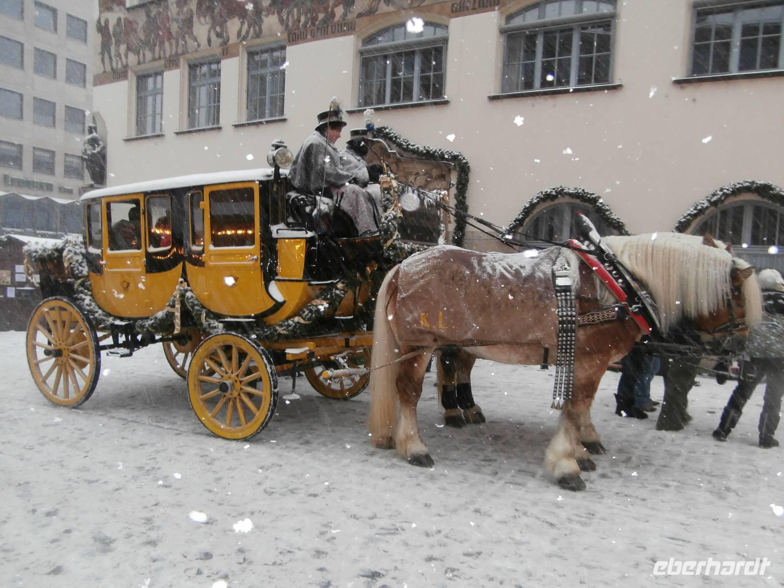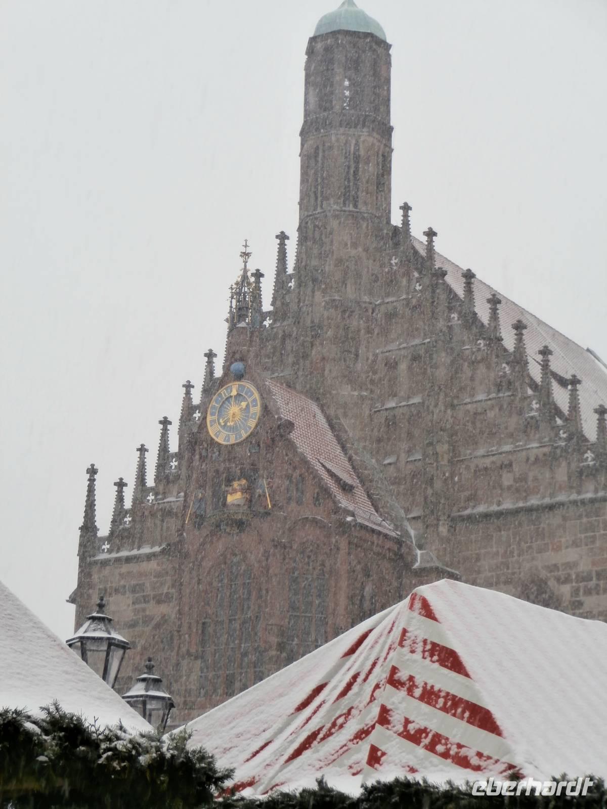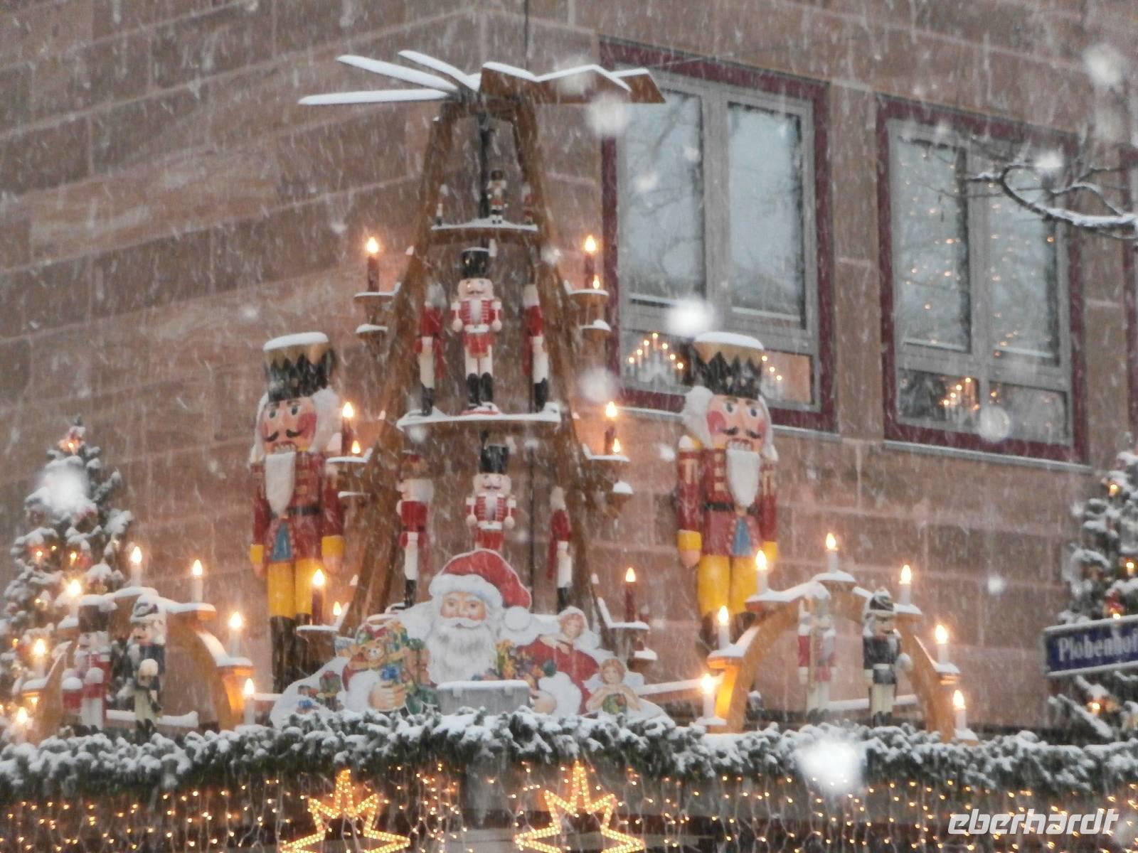 Nach einem späteren Frühstück werden die Koffer verstaut und los geht die Fahrt heute am 2. Advent durch verschneite Schwarzwaldlandschaft, vorbei an größeren Städten über die Autobahn bis nach Nürnberg. Schneeschauer unterwegs können uns nichts anhaben, aber hier zum Besuch des Christkindlesmarktes lässt Frau Holle die Flocken tanzen. Tief verschneit präsentieren sich am Hauptmarkt und Rathausplatz die Holzbuden, die traditionsgemäß mit rot-weiß gestreiftem Stoff dekoriert sind. Tradition wird in Nürnberg groß geschrieben, wir sehen überall die „Zwetschgenmännla", Nürnberger Lebkuchen, Früchtebrot und die kleinen Nürnberger Rostbratwürste. Schon seit 1933 gibt es in Nürnberg das Christkind, jedes Jahr wird am Freitag vorm 1. Advent von ihm mit einem Prolog der Markt eröffnet. Tief verschneit liegt der Christkindlemarkt unter dem immer mehr werdenden Schnee, die gestreiften Dächer der Buden sind unter Schnee. Im warmen Barfüssler, einer schönen Kneipe auf unserem Weg zurück zum Bus, sammeln wir uns und gemeinsam geht's zurück zum Bus. Viel Neuschnee und viel Verkehr beunruhigen uns alle etwas, aber Roy ist ein ganz toller und sicherer Buschauffeur, er bringt uns in der angesagten Zeit zu den Ausstiegsstellen und auch unsere Transferfahrzeuge sind pünktlich zur Stelle. Für uns als kleine Reisegruppe geht eine sehr schöne Adventsfahrt zu den Elsässer Weihnachtsmärkten zu Ende.