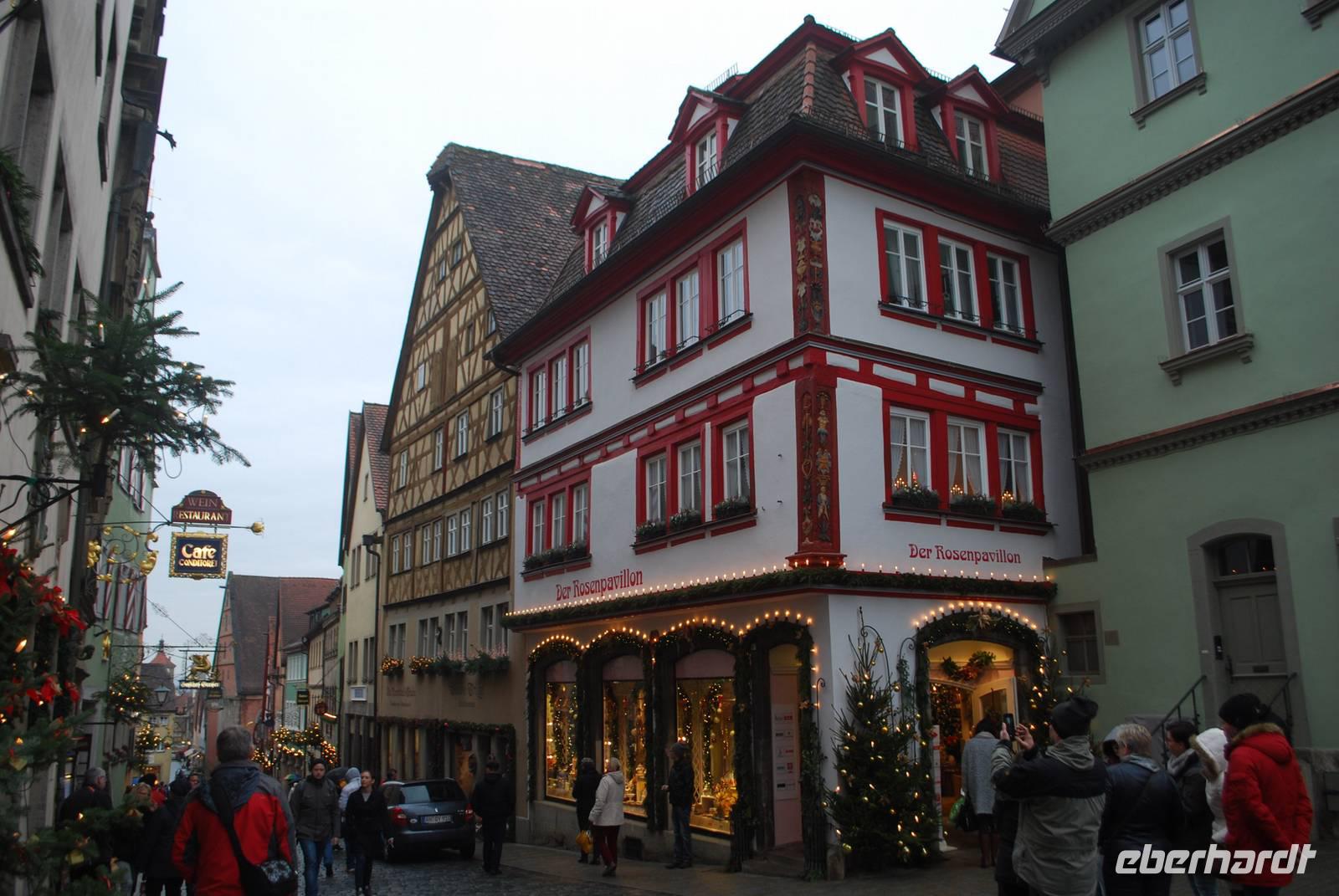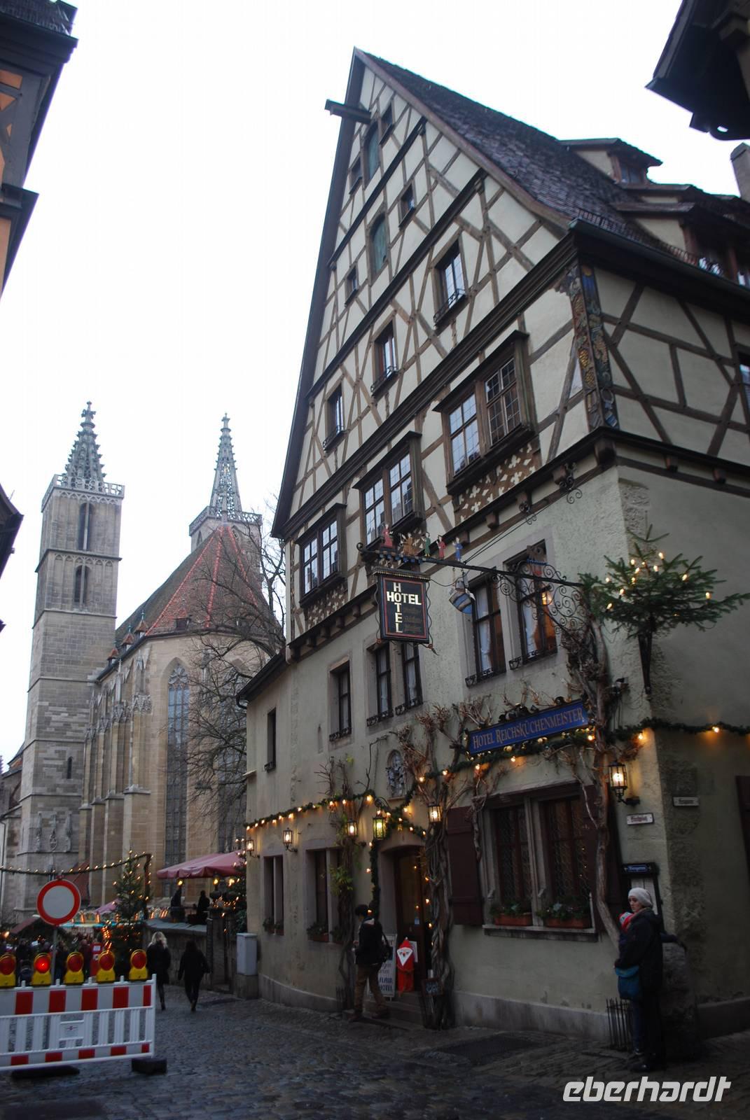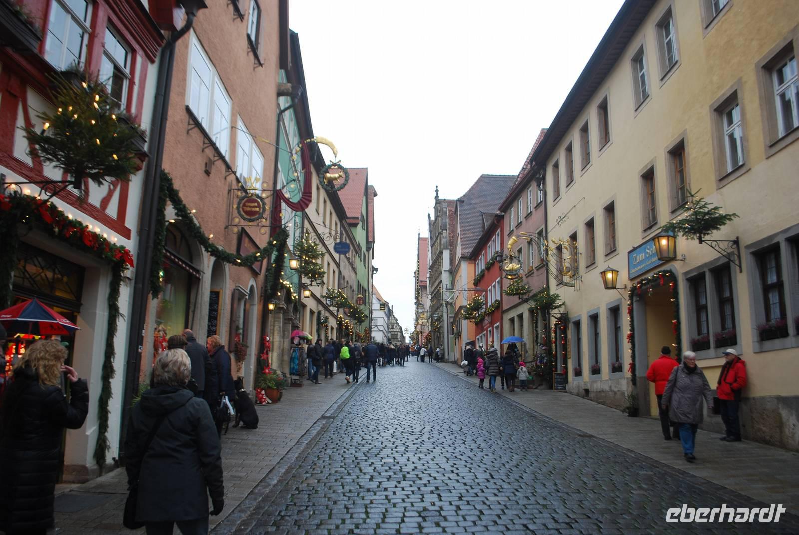 Von Weihnachtsgesängen begleitet kommen wir am frühen Nachmittag ins malerische Rothenburg ob der Tauber an. Seit der Renaissance hat sich die Stadt kaum verändert und bietet für seinen Weihnachtsmarkt eine sehr schöne Kulisse. Nach einem kleinen Spaziergang durch die Gassen kommen wir im Herzen des Ortes, am Marktplatz, an. Überall sind kleine Buden zu sehen, die um das Rathaus stehen und leckere Köstlichkeiten wie fränkische Bratwürste und Glühwein anbieten sowie Dekorationsgegenstände die ein schönes Weihnachtsgeschenk sein könnten. Nach ein paar Stunden Freizeit vor Ort, wo jeder die Möglichkeit hatte, über den Markt zu bummeln, das Weihnachtsmuseum zu besichtigen oder ein Schneeball - die Spezialität der Stadt - zu genießen, geht es weiter nach Westen in den Schwarzwald.