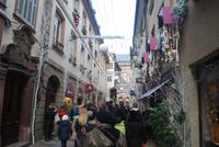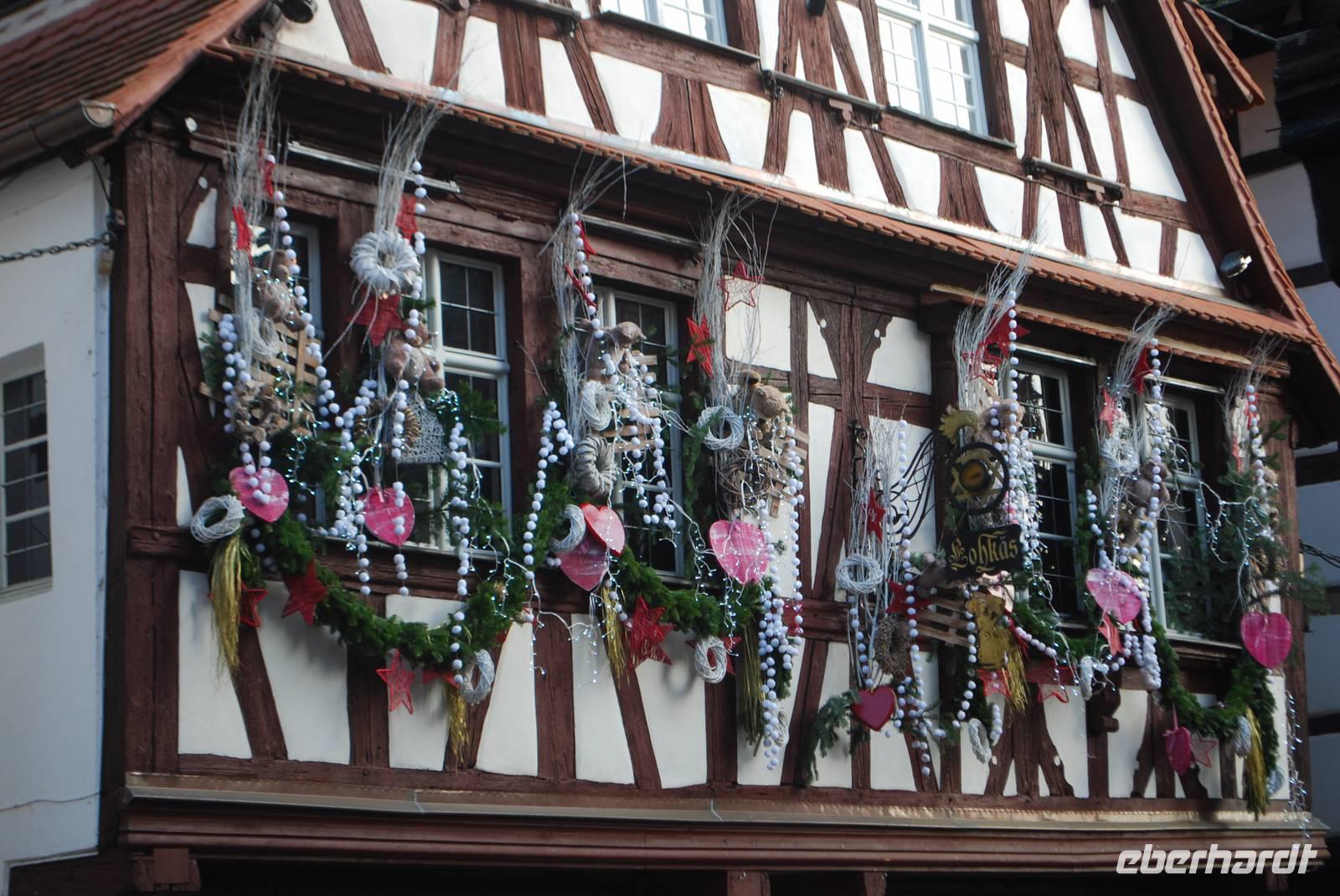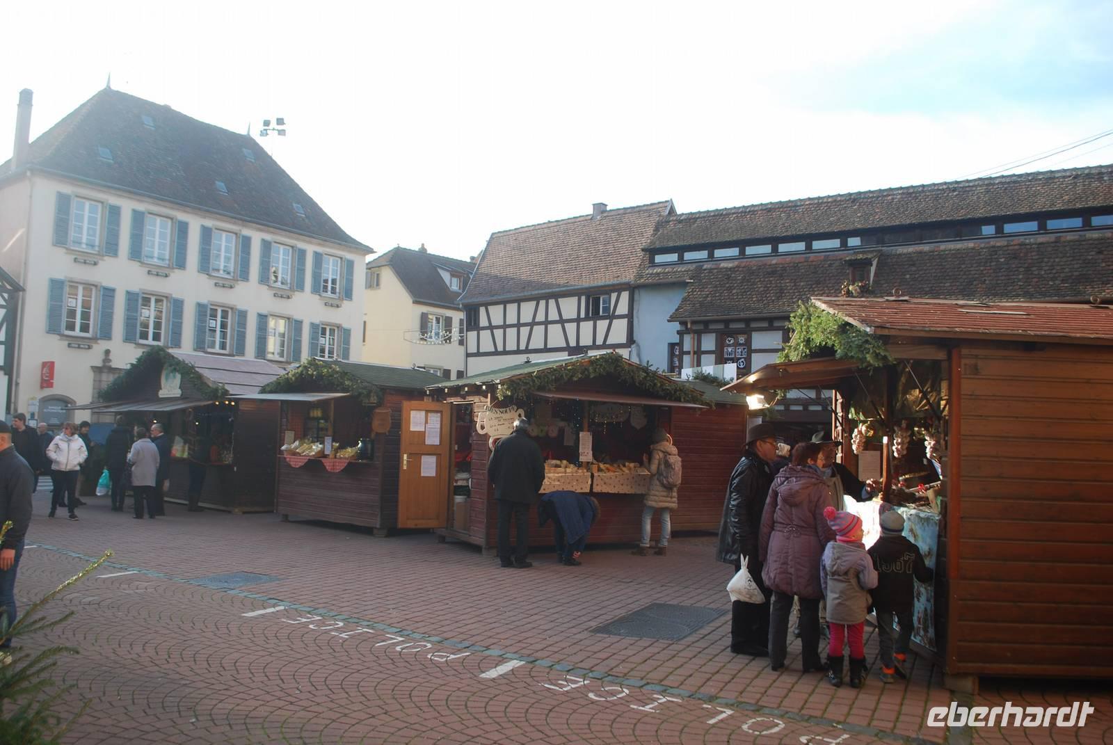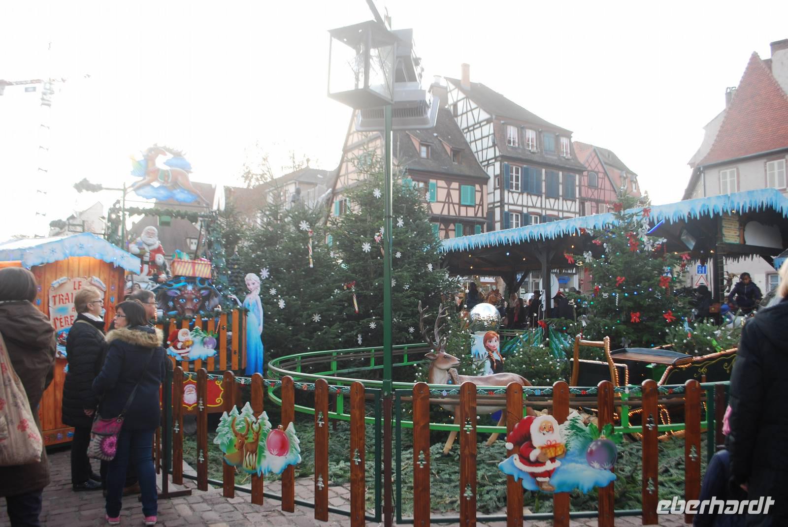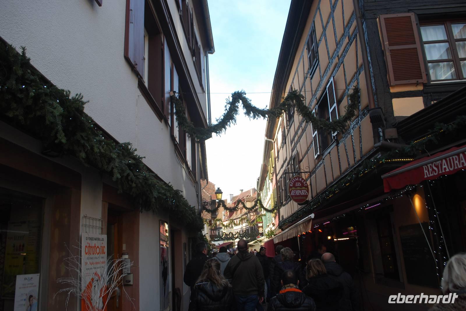 Gegen Mittag fahren wir entlang der Weinstraße nach Obernai. Und ein Besuch an der Weinstraße ohne Wein zu kosten ist unmöglich! Deswegen wurden bereits ein paar Flaschen für den nächsten Tag und die Rückfahrt eingeplant. In Obernai ist der Weihnachtsmarkt klein aber fein und der Winzerglühwein an den unterschiedlichen Buden einfach traumhaft! Das Städtchen lädt auch zum Träumen ein, mit den zahlreichen Gassen, den vielen Fachwerkhäusern und der Stadtmauer ringsherum. Anschließend geht es weiter in den Süden des Elsass und in die Geburtsstadt vom Künstler Bartholdi: Colmar. Überall in der Stadt sind Weihnachtsmärkte zerstreut und sorgen dafür, dass die Stadt am Wochenende sehr lebendig ist. Auch hier ist die Kulisse absolut sehenswert und keiner kann dem Spruch, die sich die Stadt Colmar für die Weihnachtszeit einfallen lassen hat, widersprechen. Colmar hat einen wahren „Zauber der Weihnachtszeit".