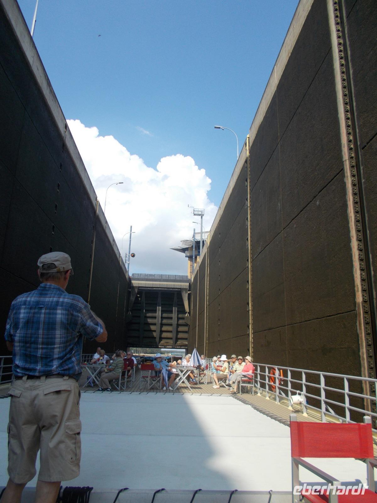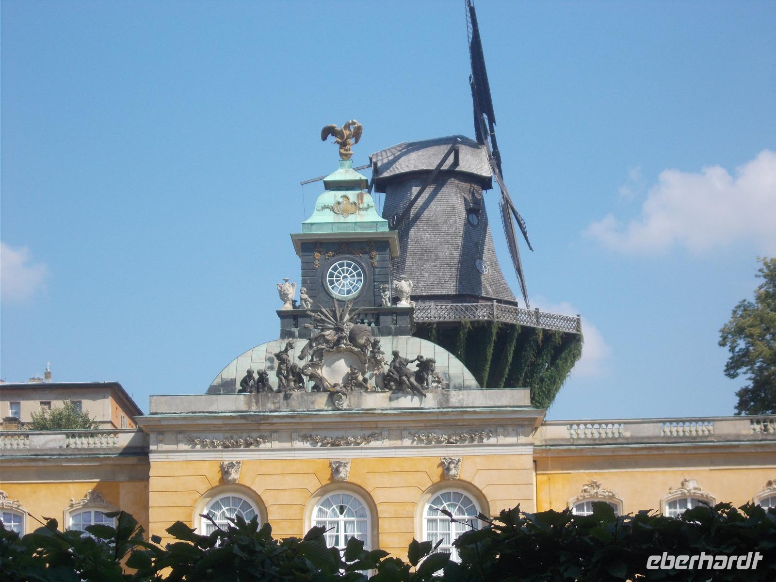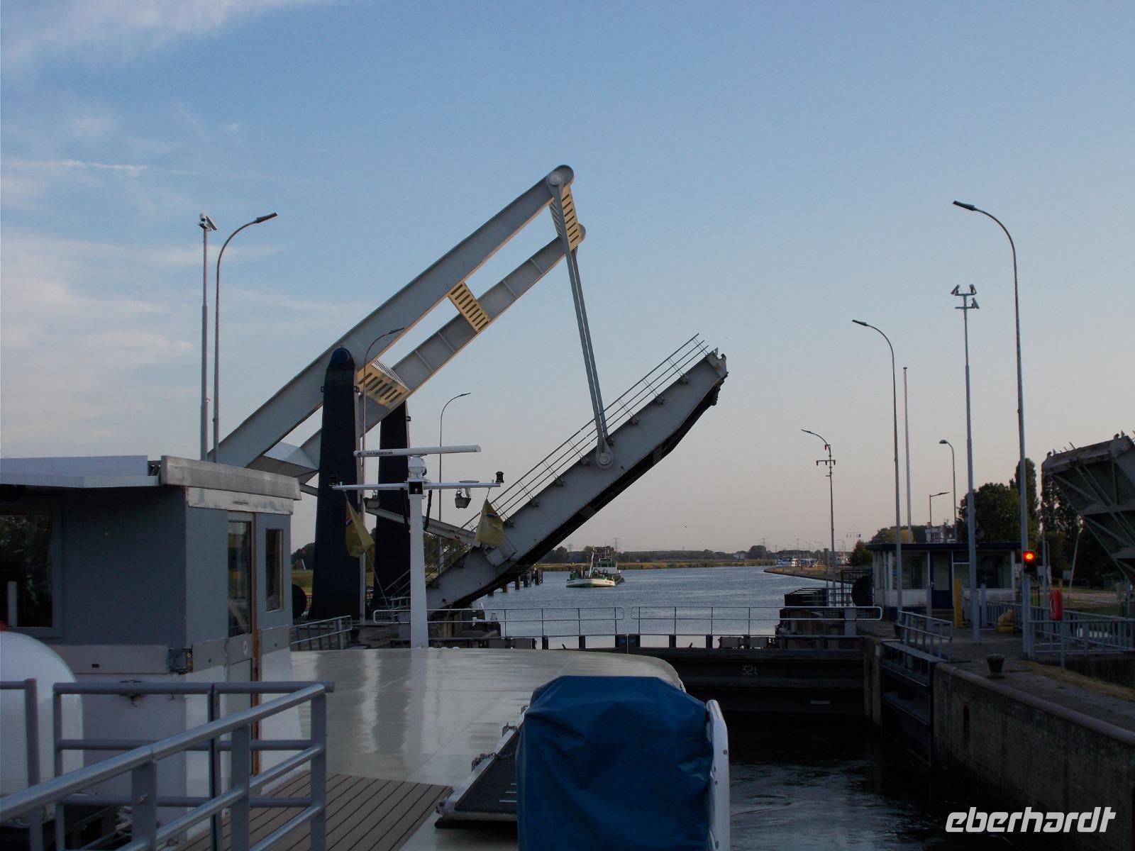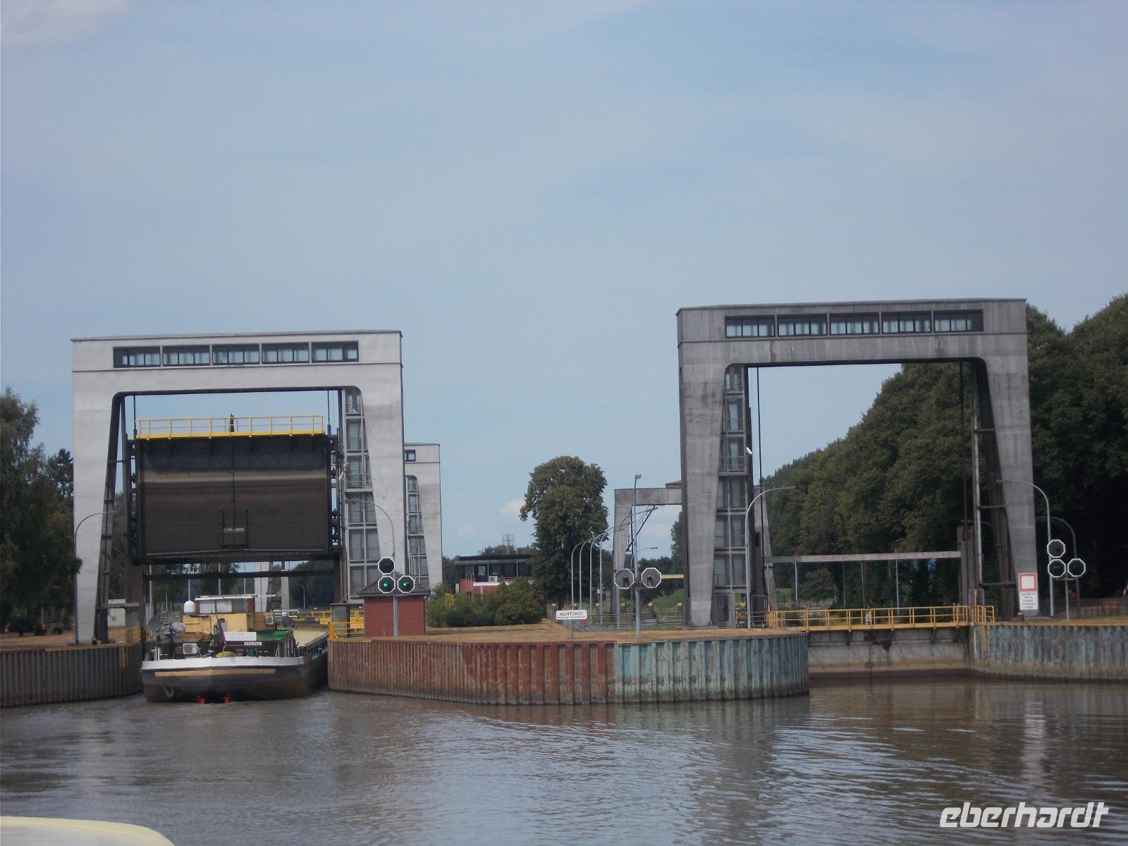 Gefrühstückt haben wir noch in Brandenburg an der Havel.Danach fuhren wir nach Potsdam um auf den Spuren Friedrich des Großen zu wandeln.Wir besuchten sein,für sich geschaffenes, Sans Souci.Dort wollte er „ohne Sorgen" leben und bestattet sein.Die Ideen dazu brachte er selbst ein und der Baumeister von Knobelsdorff verwirklichte sie.Ein wunderschön gestalteter Park und zahlreiche andere Schlösser runden diese grandiose Anlage ab.In Gentin gingen wir wieder an Bord.Der Kapitän wartete schon auf uns und die Mannschaft präsentierte uns ein gelungenes Mittagsbüffet.Auf dem Sonnendeck ließ sich die Mittagspause gut verbringen .Die beruhigende Landschaft, des Mittellandkanals ,zog an uns vorüber .In Hohenwarte Nord wurden wir von unten nach oben geschleust.Die bemerkenswerte Schleuse ,von 18 m ,war ein begehrtes Fotomotiv. Am späten Abend legten wir in Calvörde an.Es war wieder ein schöner ,lauer Abend und so war das Oberdeck voll besetzt. Wir wollten das Spektakel der Mondfinsternis beobachten und harten aus, um den Aufgang des Blutmondes zu verfolgen.Leider hing der Himmel voller Wolken.