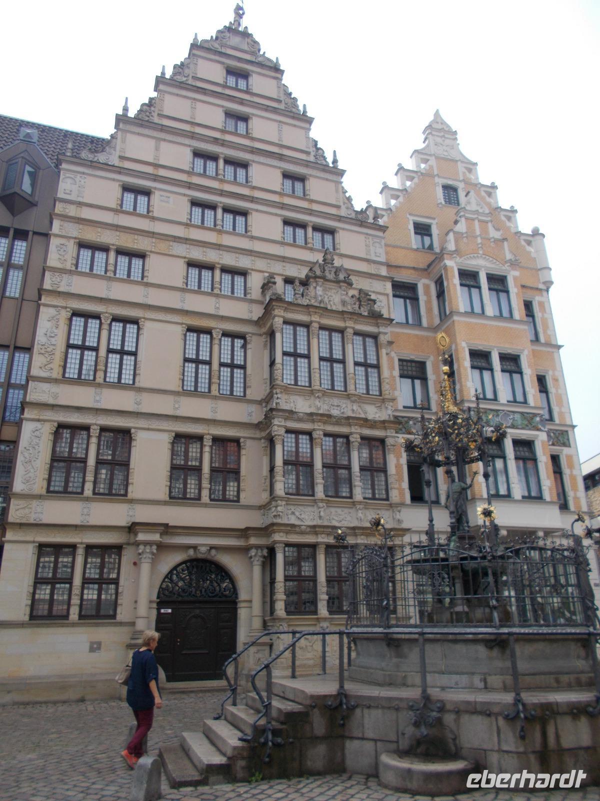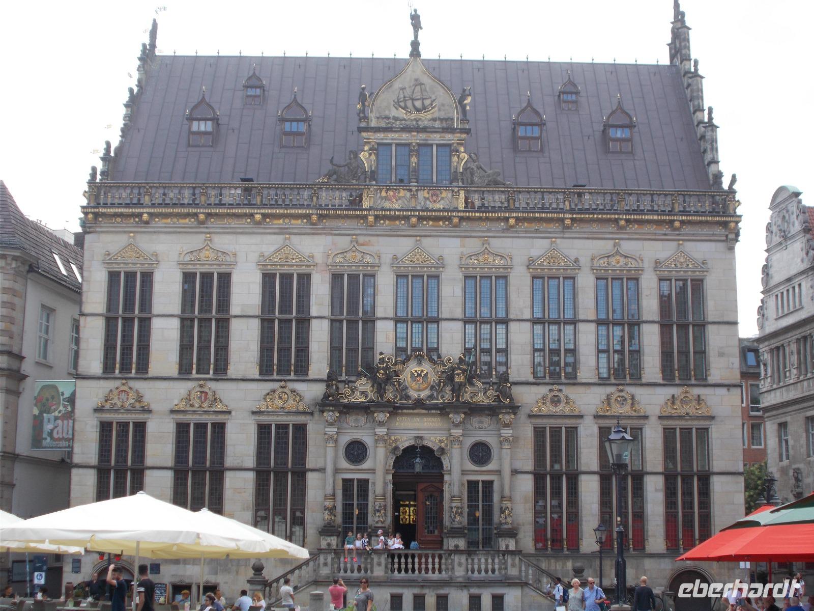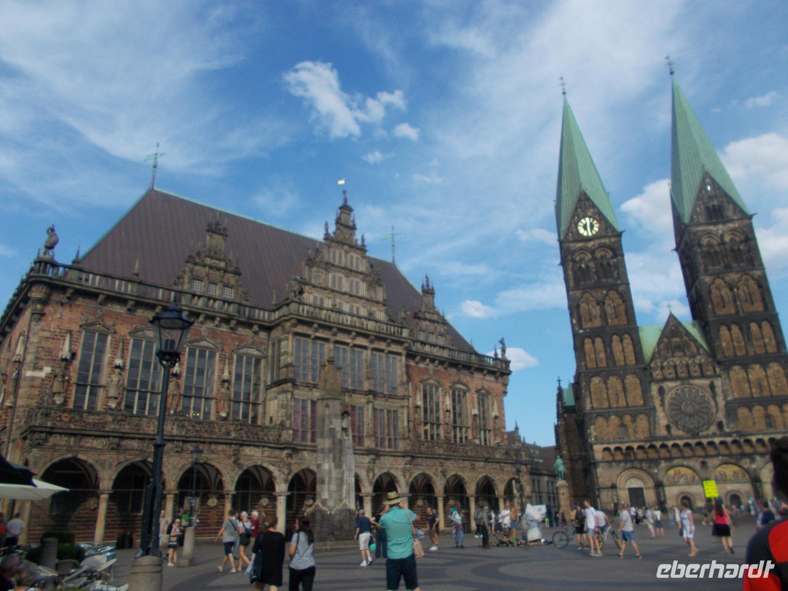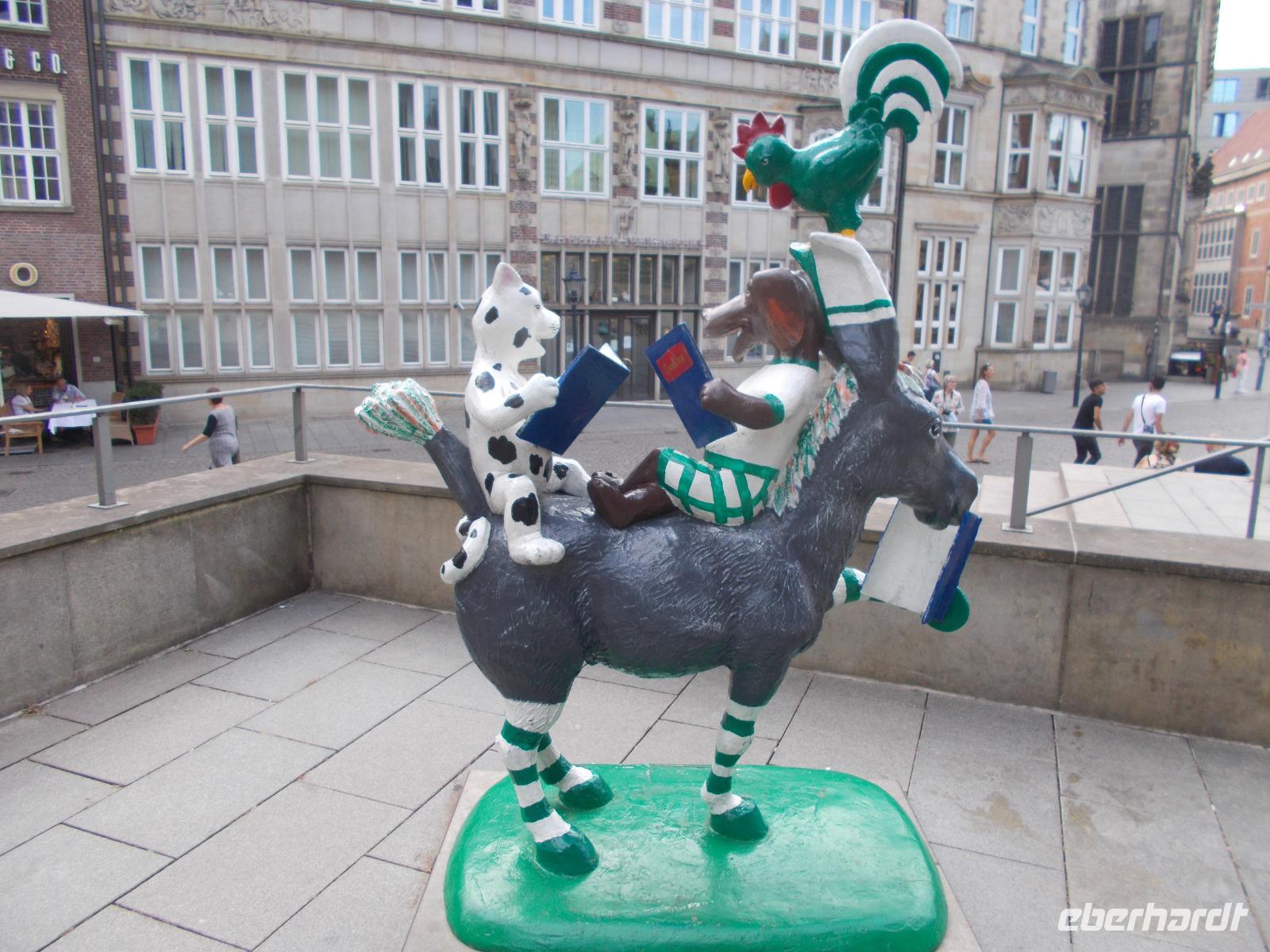 Ein ausgiebiges Frühstück und anschließend relaxen an Bord.Schöner kann ein Tag nicht beginnen.Nach dem passieren einiger Schleusen,hatte die Küchencrew schon wieder ein leckeres Mittagsbüffet gezaubert.(Die Waage wird es uns verzeihen !)Etwas Bewegung verschafften wir uns beim gemeinsamen Qi Gong.Dann legte das Schiff in Bremen-Osterdeich an und wir durften von Bord,um eventuell einige Kalorien,beim Stadtrundgang, wieder zu verlieren.Damit es aber nicht zu anstrengend wurde,setzten wir für eine Strecke den Bus mit ein.Zuerst ging es nach Schwachhausen dem Wohngebiet der „Pfeffersäcke"und dann weiter durch die Viertel.Zurück in der Altstadt hatten wir, in der Nähe vom Roland, ein Treffen mit den Bremer Stadtmusikanten.In der ältesten Hansestadt lagert im Ratskeller ,mit 650 Sorten,die größte Sammlung deutscher Weine - Weltweit.Von außen schon ein Hingucker und gleich daneben erhebt sich der Dom St.Petri,wo wir Orgelklänge lauschen konnten.Die Freizeit verbummelte sich viel zu schnell und wir mußten aufs Schiff zurück.In der Nacht ging die Fahrt Richtung Oldenburg.