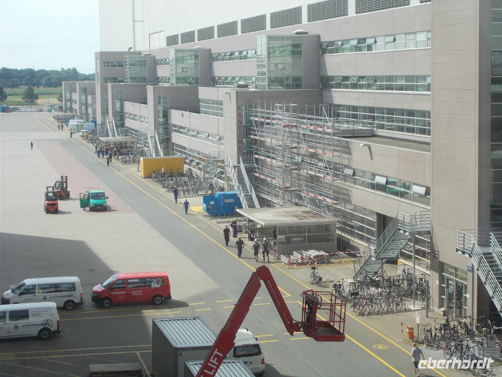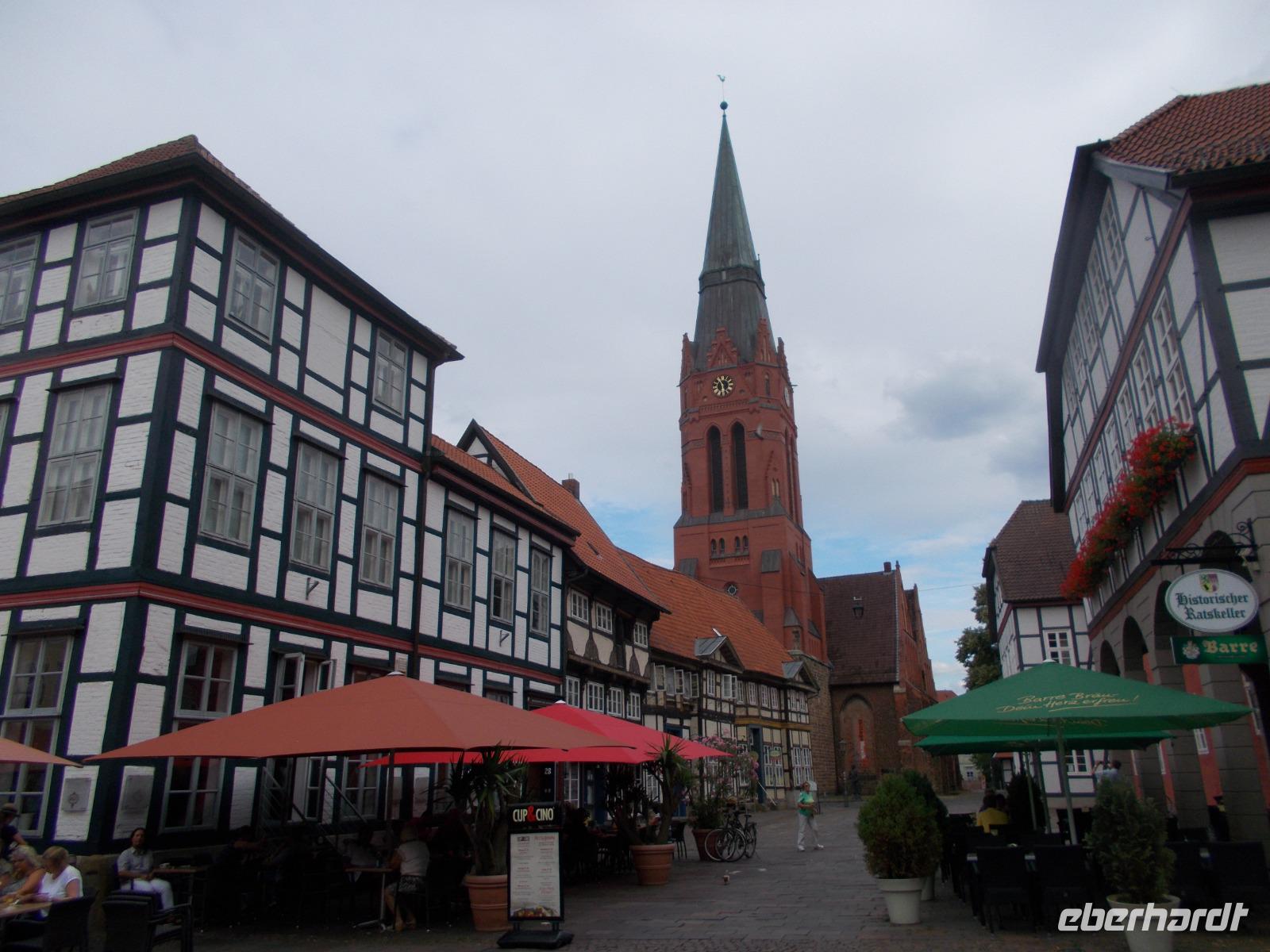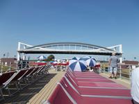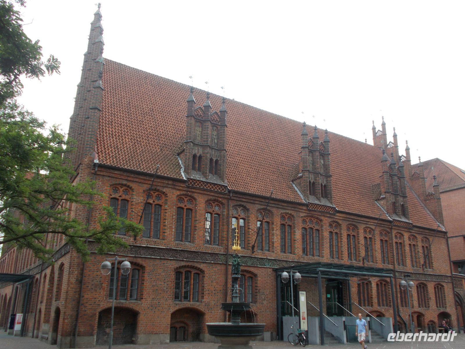 In der Nacht setzte unser Schiff seine Fahrt Richtung Hannover fort.Gefrühstückt wurde in der „Autostadt",denn zeitgleich passierten wir die Wolfsburg -Arena und das große VW Areal.Danach ging es wieder in eine Schleuse.Diesmal nicht ganz so tief,nur 9m -Sülsdorf.Immer noch auf dem Kanal fahrend ,ging es unter zahlreichen Brücken hindurch,die durch lautes Signal angezeigt wurden.Für uns,auf dem Sonnendeck, das Zeichen „sitzen bleiben und Schirm runter".Die Fahrt geht weiter durch den großen Braunschweiger Binnenhafen.Nach dem Mittag bereiteten wir uns auf den Hannover Ausflug vor.Die Busse sind zur Abfahrt bereit und zur Rundfahrt ,durch die Landeshauptstadt Niedersachsens,erwischt uns ein Wolkenbruch.Uns stört es nicht ,sitzen wir doch trocken im Bus und bekommen die Stadt erklärt.Pünktlich zu unserem Altstadtrundgang läßt sich die Sonne wieder sehen.Im Anschluß haben wir Zeit für eigene Erkundungen.In der Zwischenzeit hat unser Schiff den Nordhafen von Hannover erreicht .Die Küche überrascht uns heute mit einem Italienischen Buffet,das mit passender Musik umrahmt wird