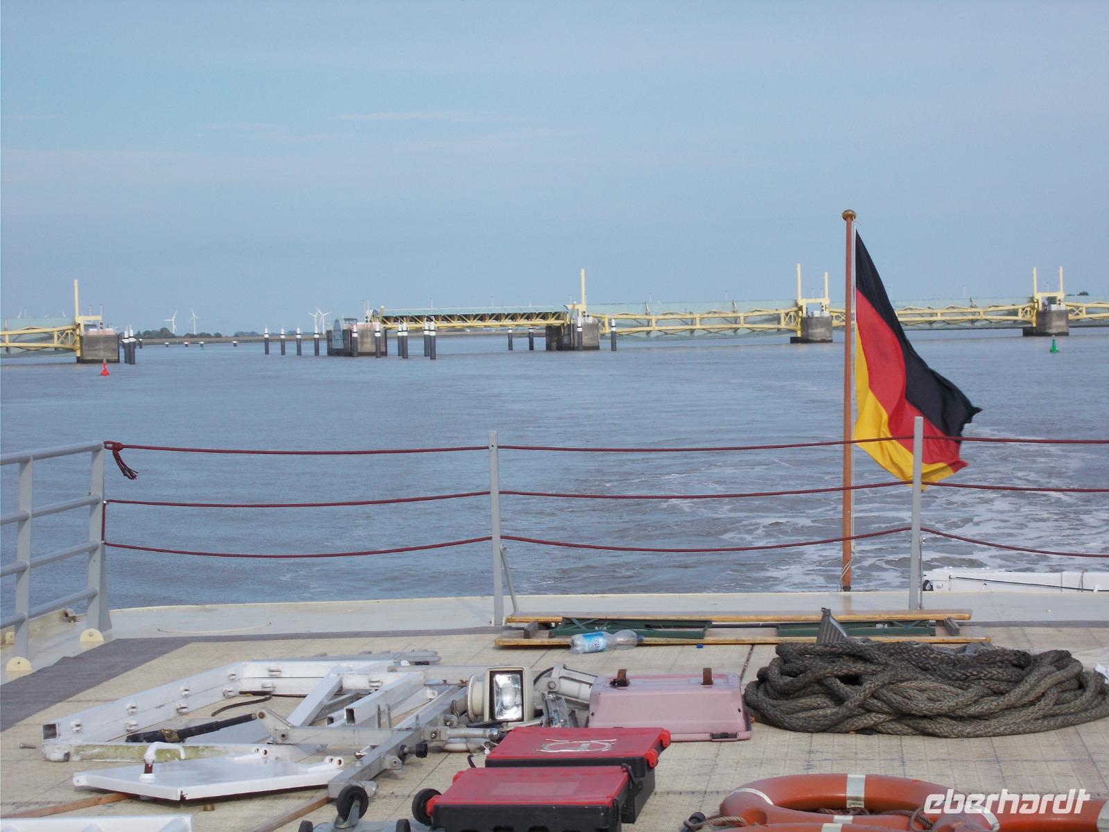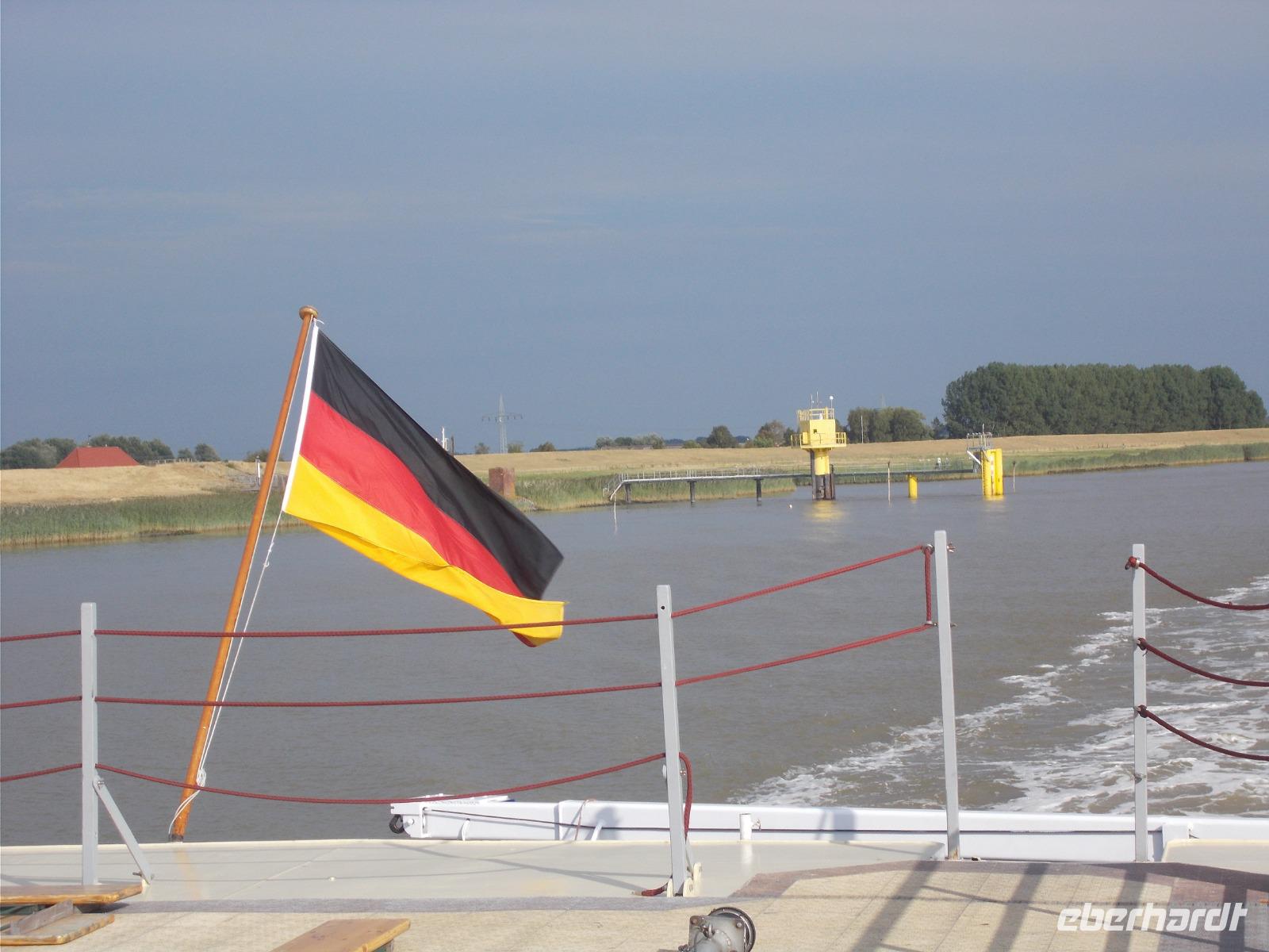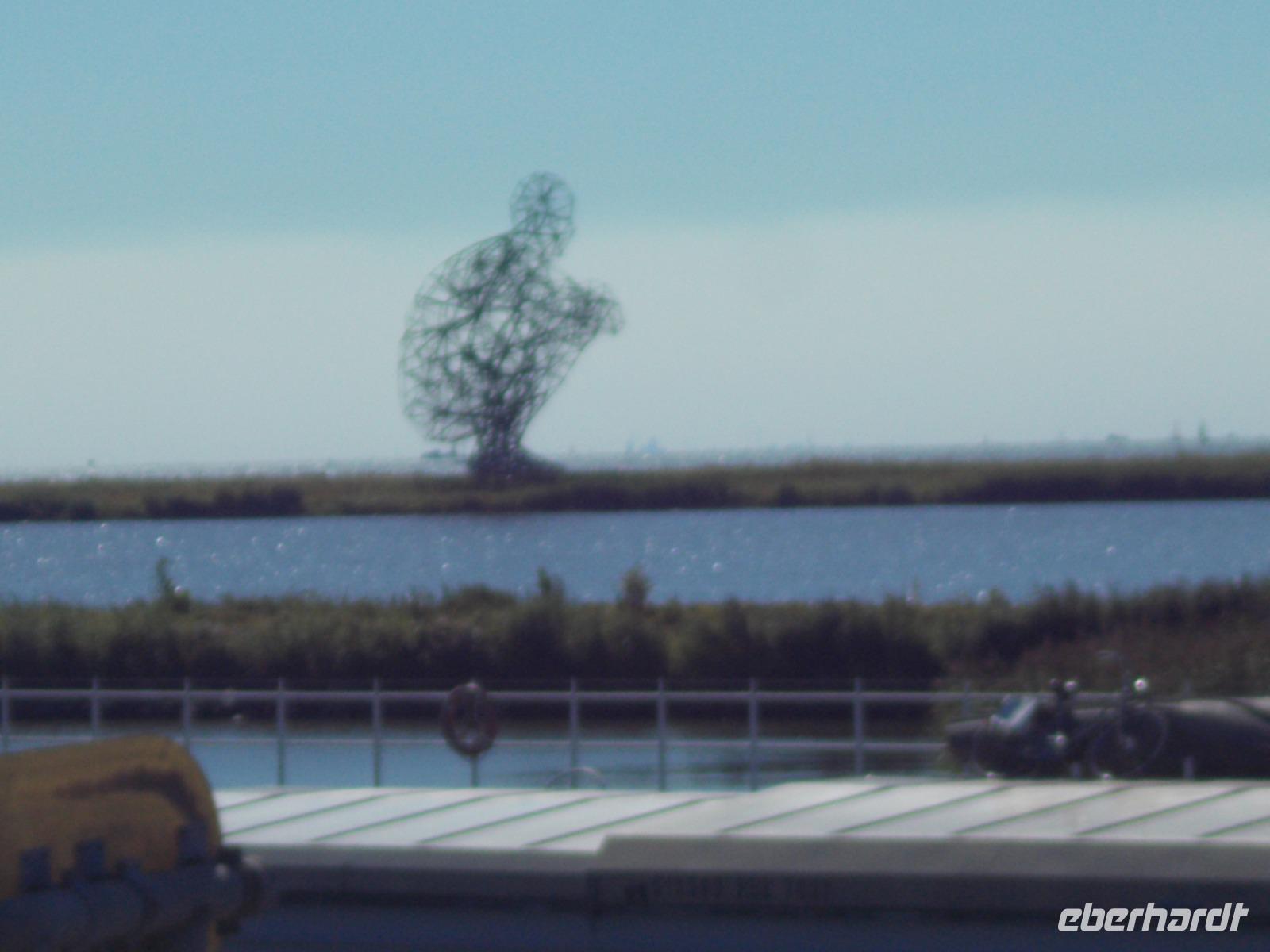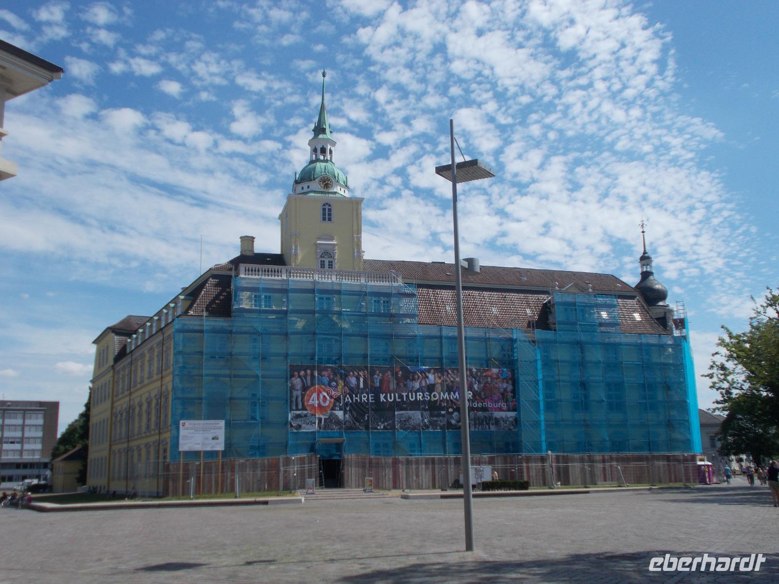 Unter diesen langanhaltenden ,tropischen Temperaturen haben nicht nur wir Menschen zu leiden.Nein,auch Brücken fangen an zu lahmen.Die Zugbrücke zum Oldenburger Hafen ließ sich nicht mehr regulär öffnen.Die DB hatte einfach Vorfahrt und der Schiffsverkehr mußte ausharren,bis es möglich war" die Brücke zu teilen".Wir hatten richtig Glück,pünktlich wie im Plan vorgesehen,starteten wir zu unserem Rundgang durch die kleine,feine Residenzstadt Oldenburg.Die Stadtführer holten uns direkt vom Anleger ab und schon waren wir im Zentrum.Wir schlenderten den Stau entlang zur imposanten Post ,weiter durch ein Gewirr von kleinen Gassen und erreichten die St.Lamberti Kirche.Dort trafen wir die Sonntagsgruppe und stimmten gemeinsam ein Lied an.Der gemischte Chor konnte sich hören lassen.Wir flanierten noch bis zum Schloss ,welches leider einen „blauen Umhang „trug (sprich renoviert wurde).Hier endete dann auch unser offizieller Rundgang.Zur Verabschiebung bekamen wir von der Stadtführerin einen Oldenburger- Kartengruß geschenkt.Auf dem Rückweg zum Hafen wehte wenigstens etwas erfrischende Luft vom Wasser.Die Küche hatte wieder gezaubert und so gab es ein einladendes Abendbüffet.Am späteren Abend überraschte uns die Crew mit einer wirklich gelungenen Show.Beim Abschiedslied blieb kaum einer auf seinem Stuhl sitzen und ein „Zug fröhlicher Leute" zog durch den Salon.Umrahmt wurde das Programm von Bordmusiker Kristof.Vom Stadthafen ging unsere Reise nun den Küstenkanal entlang.7.Tag,