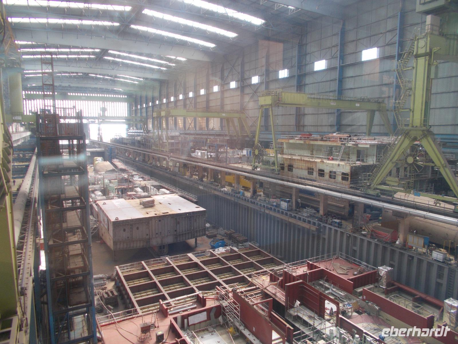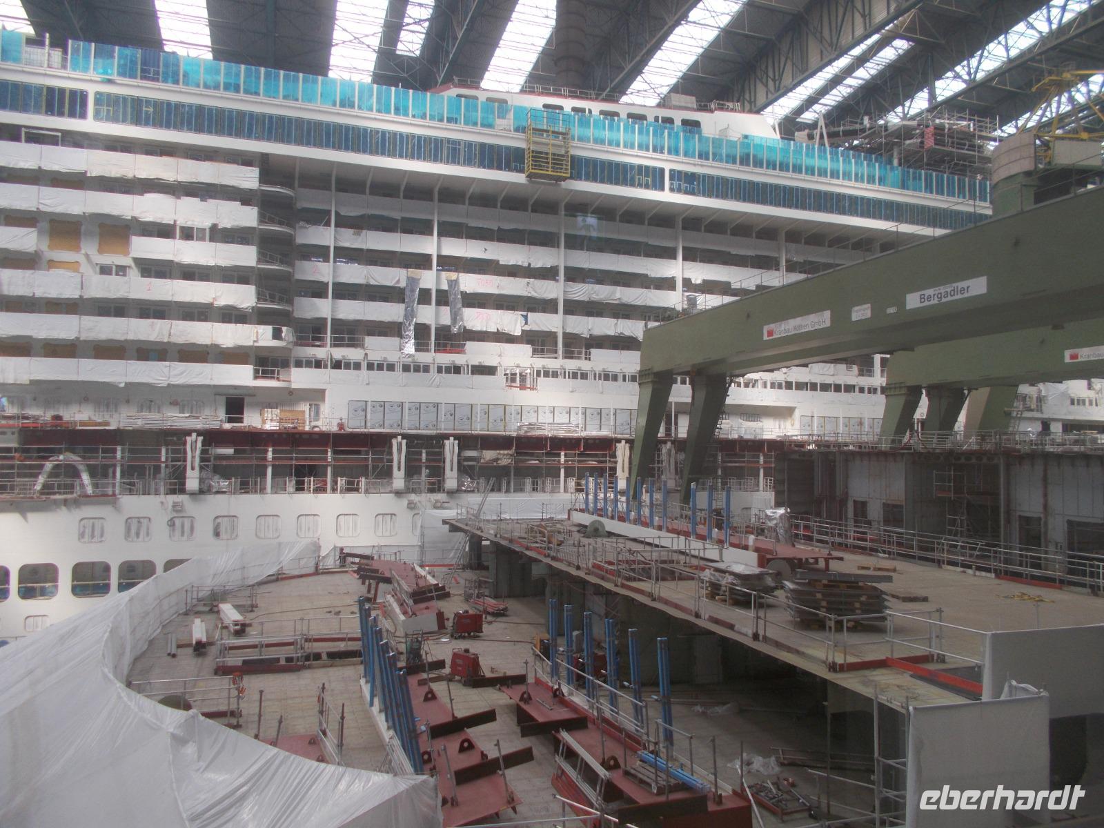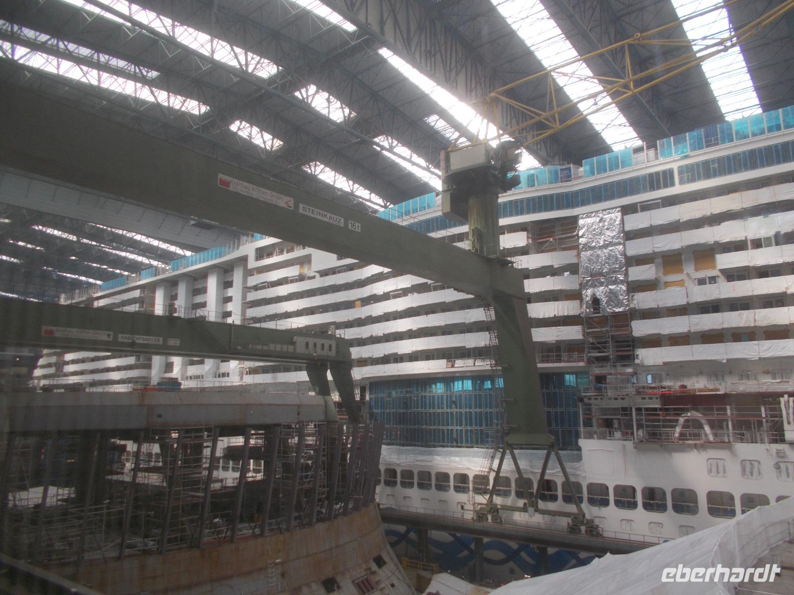 Nach dem Frühstück wechselten wir in Kampe zum Bus ,um nach Papenburg zu gelangen.Der Besuch der Meyer Werft stand an.Sie ist seit Generationen in privater Hand und hat sogar in Finland eine Außenstelle.Uns wurde, von der Idee zum Entwurf bis zur Fertigstellung,alles gut und verständlich erklärt.Es gehört eine ausgeklügelte Logistig dazu, um die Auslieferung termingerecht zu halten.Im Bau sahen wir die Aida Nova.Im August soll sie in Papenburg getauft werden.Es ist die erste Taufe eines Schiffes auf der Werft und soll mit einem großen Open Air Konzert begangen werden. September 2018 soll sie die Hallen verlassen und wie wir, im Anschluß ein Stück,eine Reise über den Emskanal antreten.Doch zuerst mußten wir zurück zu unserem schwimmenden Hotel.Vor der Schleuse Böllingerfähr gingen wir steuerbord Seitig an Bord.Wir fuhren durch die ,zum Teil aus Ziegelbau bestehenden,Jann Berghof Brücke durch,die Ems entlang.Das gigantische Emssperrwerk,welches nun folgte,dient zur Regulierung des Flusses bei Überführungen von Schiffen zur Nordsee und hält Sturmfluten ab.Von fern sahen wir die vielen Windräder ,am Rand des Dollard gebaut.In Delfzijl drehten wir, ab um nach Groningen zu gelangen und über Nacht im Stadthafen zu liegen.