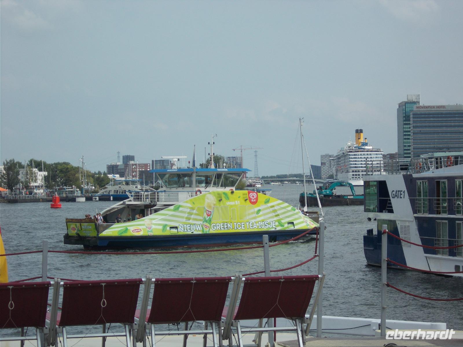 Heute genießen wir eine Bootsfahrt durch die unberührte Natur Giethorns.Auf kleine Kähnen weden wir durch die idyllische Landschaft des „Holländischen Venedigs"geschippert.Vorbei an uralten Bauernhäusern und unter Holzbrücken hindurch erleben wir diese" geruhsame" Fahrt.Viele der Touristen lenken zum ersten Mal so ein Boot. Auf der Rückfahrt kommen wir uns ein wenig wie auf dem Rummel- mit Scooter Bahn vor.Zurück in Lemmer legen wir ab und unser Schiff bringt uns Richtung Amsterdam.Zum Abendessen grüßt uns die Skyline der Niederländischen Hauptstadt.Unser Liegeplatz ist sehr zentral und lädt zu Erkundungen ein.Der Bus bringt uns zur Heinecken Brauerei ,wo wir wiederum auf ein Boot steigen.Diesmal begeben wir uns auf eine romantische ,abentliche Grachtenfahrt durch Amsterdam.