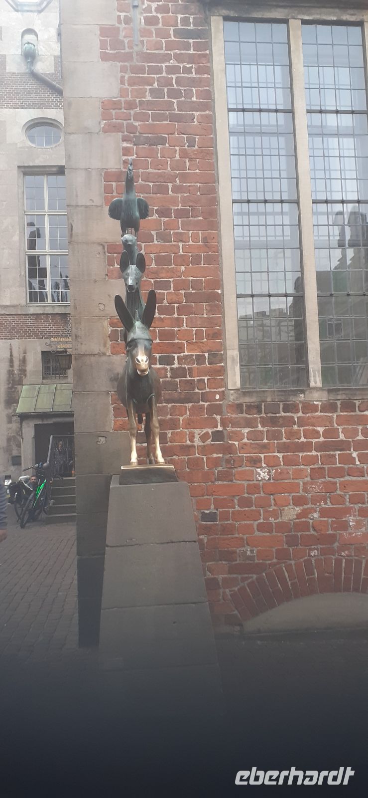 um die alte Handels- und Kaufmannsstadt kennenzulernen. Mit den anderen Gästen spazierten wir zum Bremer Marktplatz er ist umgeben vom Dom St. Petri, dem schönen Rathaus mit der prachtvollen Renaissancefassade und dem Haus der Bürgerschaft den sowie dem "Roland" der als Symbol für Recht und Freiheit der unmittelbar vor dem Rathaus steht. Ein Foto der "Bremer Stadtmusikanten" aus dem gleichnamigen Märchen ist ein muss. Nach dem Besuch des Glockenspiel in der Bötchergasse spazierten wir das malerische Schnoorviertel.