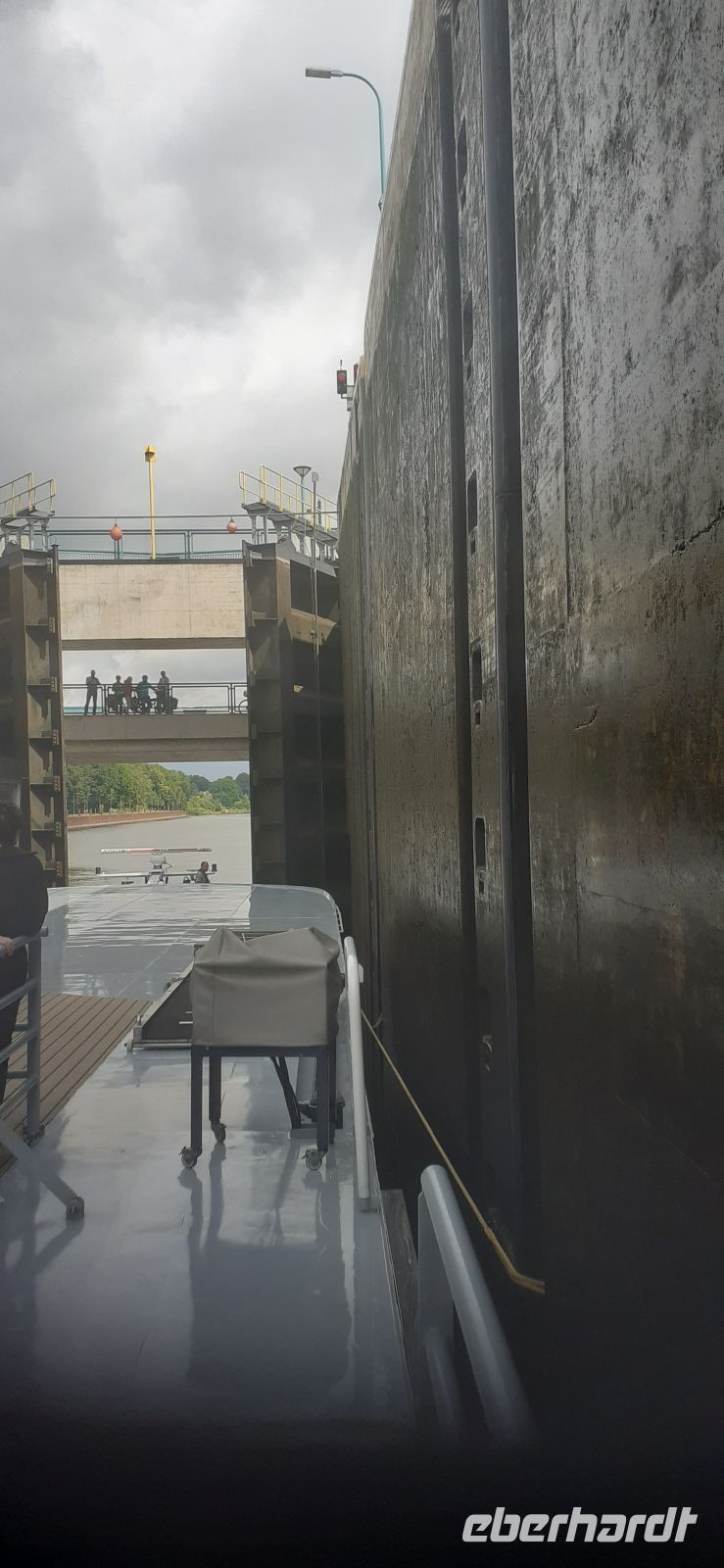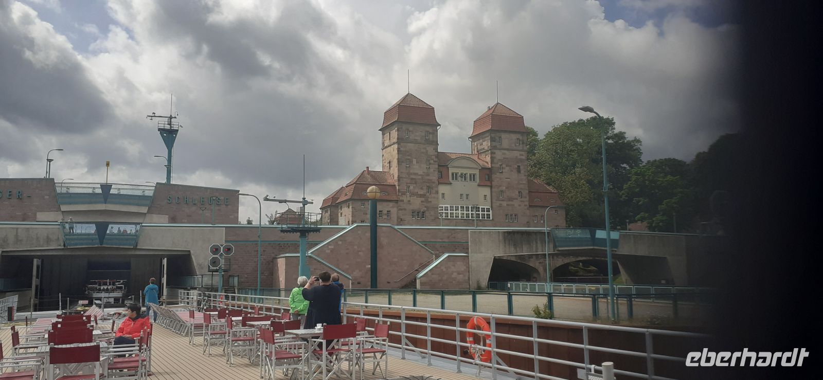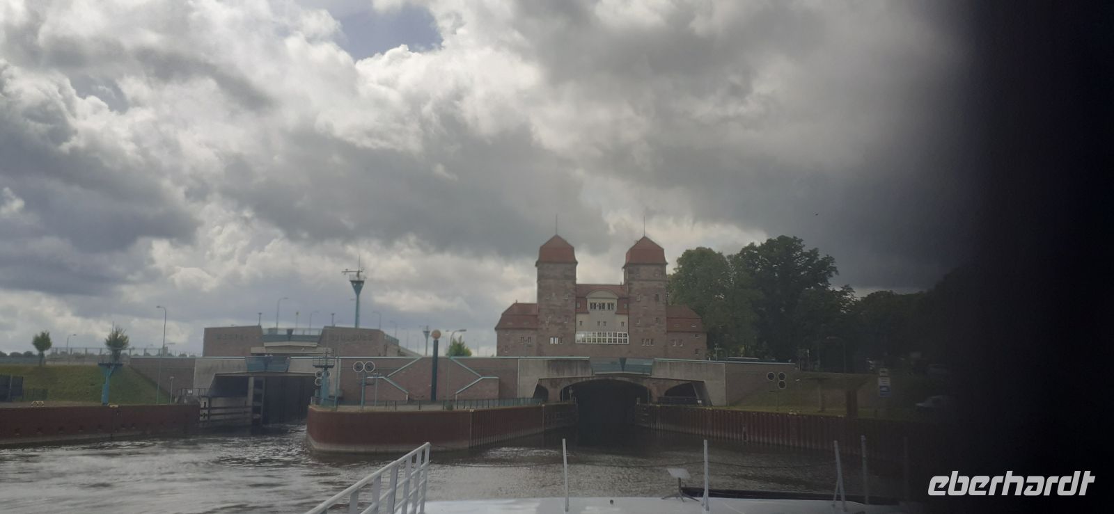Am Vormittag startete der Ausflug nach Potsdam und zum Schloss Sanssouci. Während der Rundfahrt entdeckten wir unter anderem die Peter-und-Paul-Kirche, das Brandenburger Tor, das Filmmuseum und das wieder aufgebaute Schloss. Nach einem Rundgang durch das Holländerviertel fuhren wir zum Schloss Sanssouci. Die ehemalige Sommerresidenz Friedrich des Großen besticht durch seine Lage auf den Weinterrassen. Nach einem Spaziergang durch die Parkanlage legten wir noch einen Stopp an der Glienicker Brücke ein, die die Havel überspannt und Potsdam mit Berlin verbindet. Während einige Gäste an den Ausflug durch Potsdam teilnahmen fuhr das Schiff auf der Havel nach Brandenburg. Wieder an Bord setzte das Schiff seine Fahrt auf dem Elbe-Havel-Kanal und dem Mittellandkanal fort. Den Nachmittag verbrachten wir an Bord des Schiffes. Wir entspannten auf dem Sonnendeck, während die wunderschöne Landschaft Mitteldeutschlands an uns vorbeizog. Am späten Abend erreichten wir in Magdeburg das Wasserstraßenkreuz. Dort führt mit 918 m die längste Kanalbrücke der Welt vom Elbe Havelkanal über die Elbe in den Mittellandkanal. Die Nacht lagen wir in Haldensleben vor Anker.