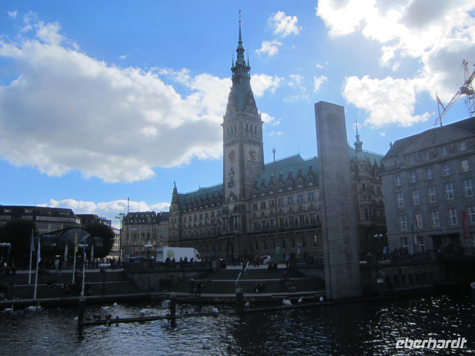 Unsere Reise beginnt bei Zeiten in Dresden. Es ist noch dunkel und wir haben den Herbstanfang bereits hinter uns. Die Wettervorhersage für die kommenden 8 Tage verspricht viel Sonne. Doch bevor es so weit ist, fahren wir heute quer durch Deutschland. Entlang der A4, A14, A10, A24.Wir sind eine gemischte Gruppe, Gäste aus Sachsen, Sachsen-Anhalt, Berlin und auch Bayern, die Nordfriesland kennenlernen wollen. Im Bus üben wir schon einmal unser Moin, Moin. Es funktioniert sehr gut und wird auch unser Gruß für die nächsten Tage sein. Doch bevor wir in Husum ankommen fahren wir an Hamburg nicht nur vorbei, sondern planen hier auch eine Pause. Wir parken direkt an der Binnenalster. Gemeinsam spazieren wir zum Rathausmarkt und haben die Gelegenheit das Rathaus auch von innen zu sehen. Entlang der Alsterarkaden und dem Jungfernstieg geht es zurück zum Bus. Ein kurzer aber interessanter Abstecher. Vielen Dank an Frank, unserem Busfahrer der Firma Wies.