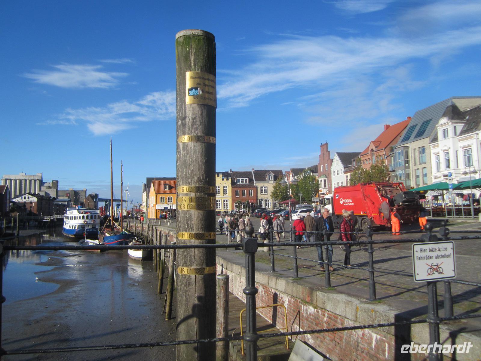 Heute können wir ausschlafen. Unsere Stadtführung beginnt erst 10.00 Uhr. Das Frühstück lässt keine Wünsche offen und so wie wir es erwarten mit Fisch und Meeresfrüchten. Gut gestärkt beginnen wir dann auch unseren Rundgang durch die Stadt. Frau Birgit Jessen erwartet uns und informiert uns sehr gut zur Heimatstadt von Theodor Sturm. Wir hören von der Kraft des Wassers und den verheerenden Fluten. Dabei ist die Sturmflut oder auch „Mandränke" von 1362. der Grund, das Husum einen Hafen hat. Am Binnenhafen sehen wir den Sturmflutpfahl, an dem die Wasserhöhe der jeweiligen Flut gekennzeichnet ist. Danach spazieren wir zum Theodor-Storm- Haus, in dem der berühmteste Sohn der Stadt viele Gedichte und Novellen geschrieben hat. Dabei bleibt der „Schimmelreiter" sein berühmtestes Werk. Weiter führt uns unser Rundgang zum Schloss, das im Stil der niederländischen Renaissance aus rotem Backstein erbaut wurde. Hier erfahren wir, dass es heute als Kulturzentrum dient und wir im März zurück kommen sollten, um die Lila blühenden Krokusse im Schlosspark sehen zu können. Auf unserem Rundgang erfahren wir vieles über Land und Leute und auch über Tine einer friesischen Fischerfrau, die den Asmussen-Woldsen-Brunnen auf dem Marktplatz ziert. Auf dem Markt sehen wir auch das umgebaute Alte Rathaus und die Marienkirche. Nach ca. 2 Stunden Stadtführung sind wir gut informiert und können den Nachmittag individuell planen. Für einige steht das Theodor-Sturm-Haus auf dem Programm. Für andere Gäste ist es das Schifffahrts Museumoder auch das Nordfriesische Museum und der andere Teil besucht Schobüll am Nordstrand.