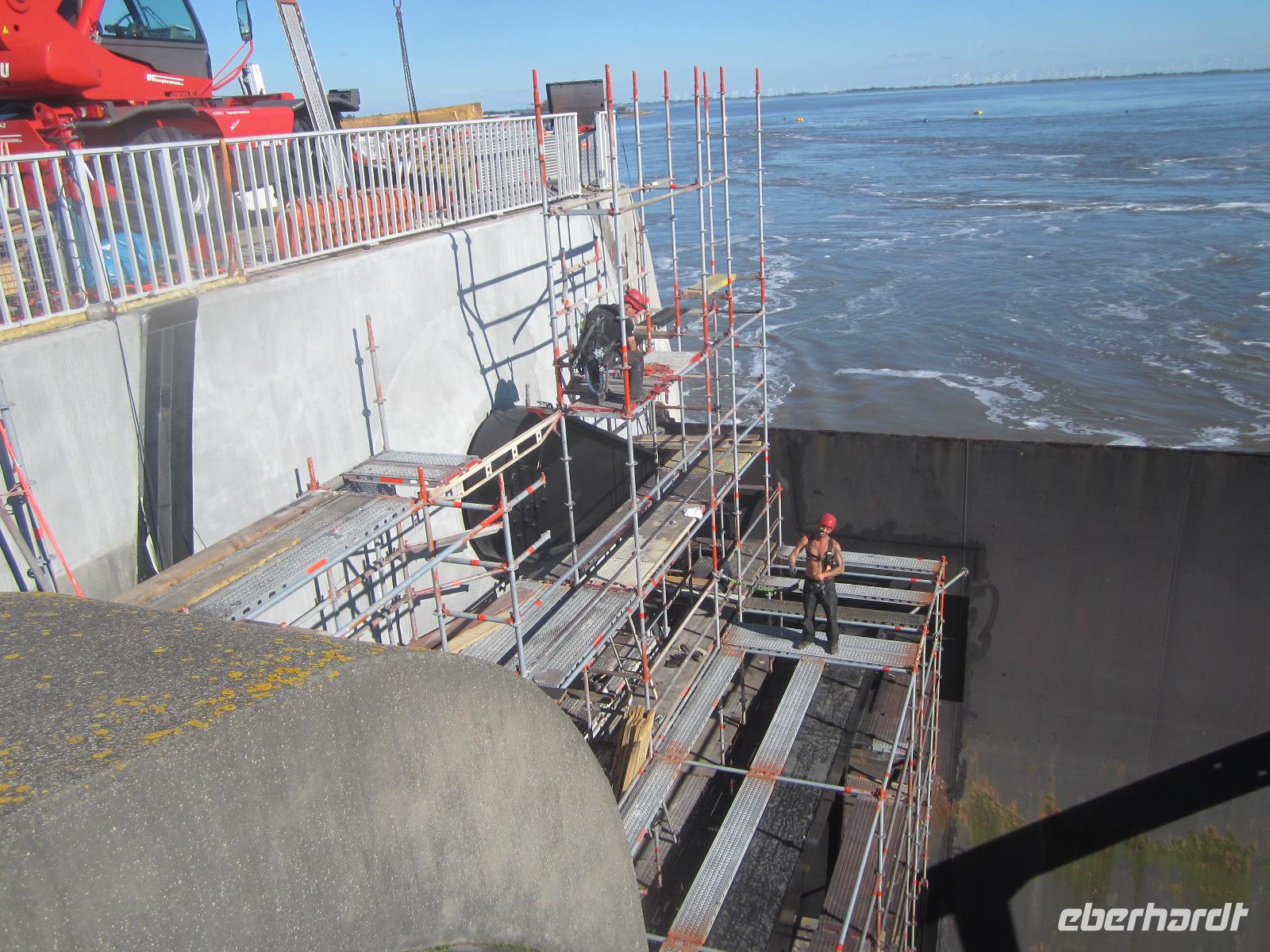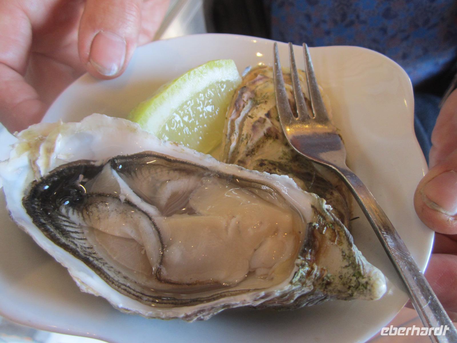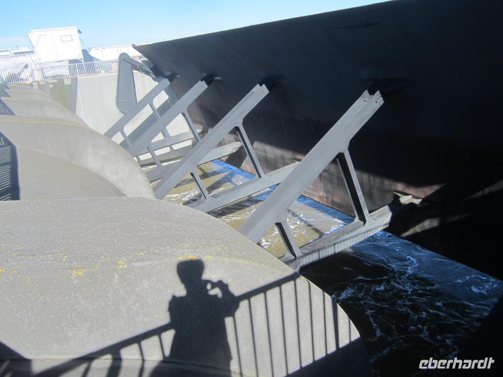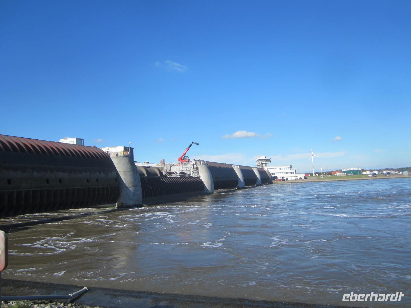 zu sehen. Auf dem Weg dahin sehen wir uns den historischen Hafen von Tönning an. Gegen 14.00 Uhr erreichen wir dann das Eidersperrwerk. Dieses trennt seit 1973 die Eidermündung von der offenen Nordsee. Wir sehen die fünf 40 Meter breiten Stömungstore, die bei günstigen Wetter offen sind und bei Sturmflut geschlossen werden. Beeindruckt von dem größten deutschen Küstenschutzbauwerk setzten wir unsere Fahrt fort und besuchen eines der beliebtesten Touristenzentren von Eiderstedt, St.Peter-Ording. Der Ort ist bekannt für seine Strandsegler, den Schwefelquellen und den Restaurants auf Pfählen. Für uns ist dieser Ort Anlass, heute noch einmal zu Gosch zu gehen und diesmal Austern zu schlürfen. Für einige von uns das erste Mal. Probiert haben es aber (fast) alle von uns. Auf unserer Fahrt zum Hotel verabschiedend wir uns von Herrn Erichsen und sind sehr zufrieden mit dem heutigen Tag, dem Programm und der Sonne, die wir auch heute erleben konnten.