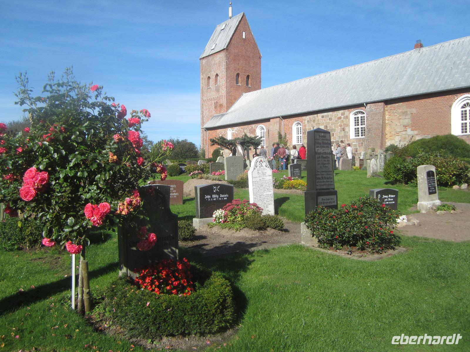 Eine weitere Insel steht auf dem Programm. Föhr, die Insel, die auch die Friesische Karibik genannt wird. Wir fahren mit dem Bus nach Dagebüll zur Fähre der WYKER-Dampfschiffs-Rederei (W.D.R.). Auf Föhr, in Wyk, angekommen wartet schon Detlef auf uns, mit dem wir eine Inselrundfahrt unternehmen werden. Sehr informativ zeigt er uns die kleinen Orte und auch das Wattenmeer. Dabei können wir Wattwanderer beobachten, die von Inseln zu Insel wandern. Für die Ev. - luth. Kirchengemeinde St. Laurentii in Süderende mit den redenden Grabsteinen lassen wir uns etwas mehr Zeit. Auf den Grabsteinen wurde nicht nur der Name, der Geburts-und Sterbetag genannt, sondern die auch das Leben von Kapitänen auf den Walfangschiffen des 17. und 18. Jahrhundert.