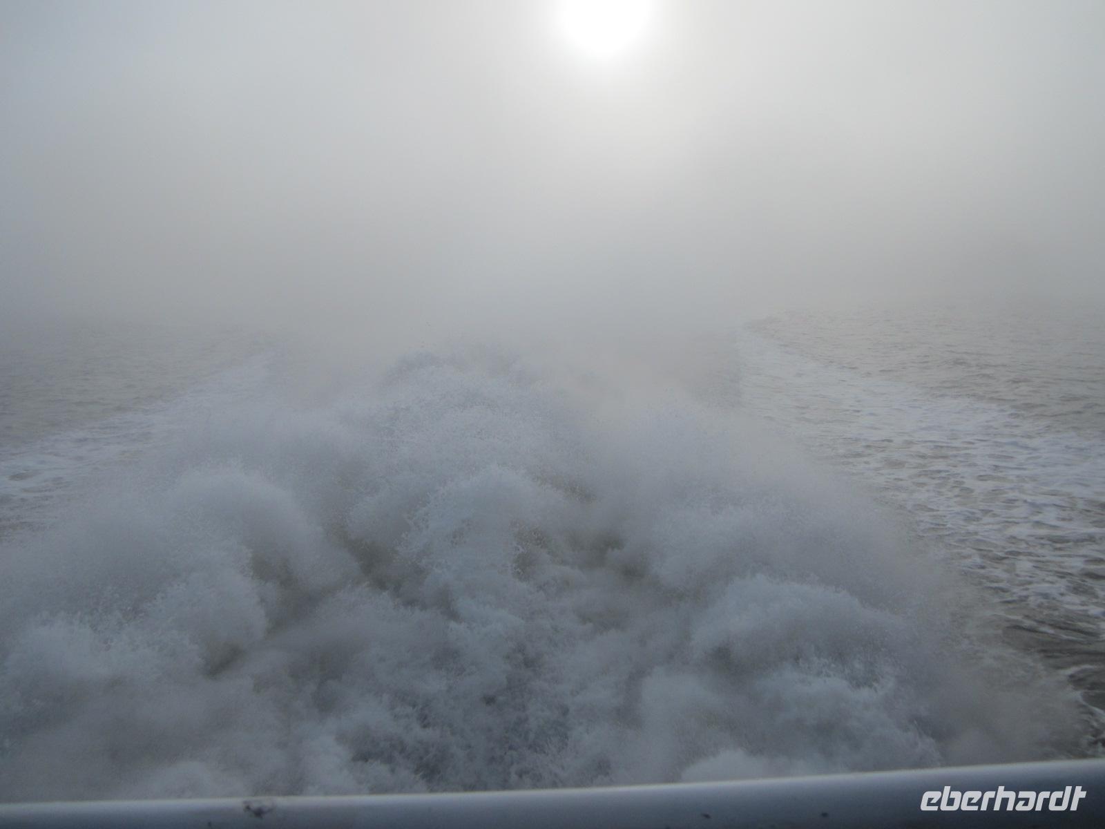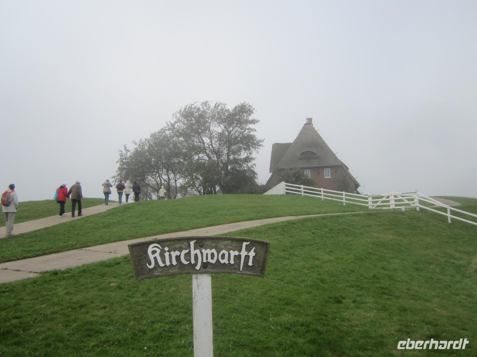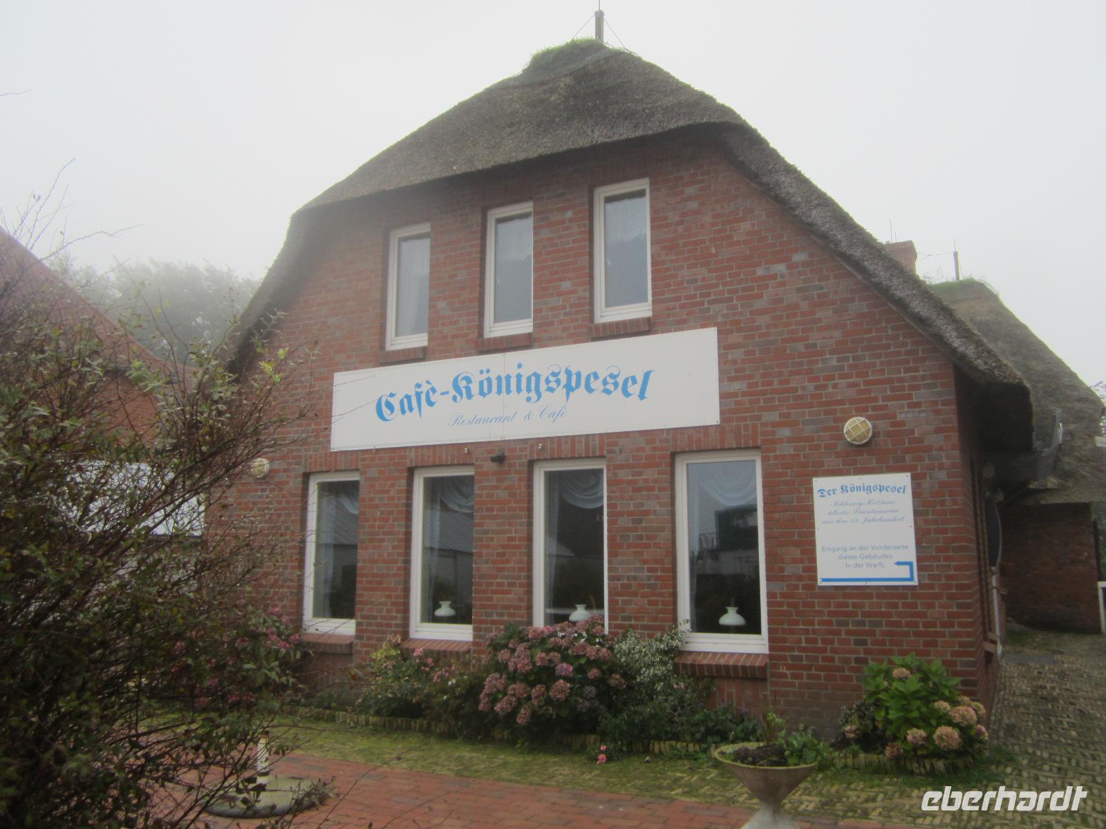 Unser letzter Urlaubstag bricht an. Es ist kalt, das Thermometer verkündet 6 Grad und wir haben Nebel. So beginnt ein typischer Herbsttag. Wir fahren heute wieder nach Nordstrand zum Hafen Strucklahnungshörn. Bei dichtem Nebel erreichen wir mit dem Adler-Express die Halligen Hooge, die Königin der Halligen. Die gelbe Kutsche steht schon bereit und wir fahren zur Hanswarft zuerst sehen wir im Sturmflutkino das Leben auf der Halligen, wenn die Flut kommt. Danach gehen wir in die Prachtstube der Warft, dem Königspesel. Räume voller Zeugnisse der Vergangenheit. Der Nebel reist nicht auf. Wir fahren weiter mit unserer Kutsche zur Kirchenwarft und später noch zum Friesenpesel. Hier genießen wir ein gutes Mittagessen. Zwischenzeitlich zeigt sich die Sonne und auf der Rückfahrt mit unserem Adler-Express holen wir alles nach, was wir heute am Morgen verpasst haben. Wir haben einen schönen Blick auf weitere Halligen. Zum Abschluss sind wir von Eberhardt-Travel zu einem Pharisäer eingeladen. Es ist wohl das bekannteste Getränk des Nordens, das gerade an kalten Tagen für wohlige Wärme sorgt. Im Pharisäerhof wurde er erfunden. Damit runden wir den Abschluss unserer Reise ab und treffe hier noch einmal Boy Erichsen.