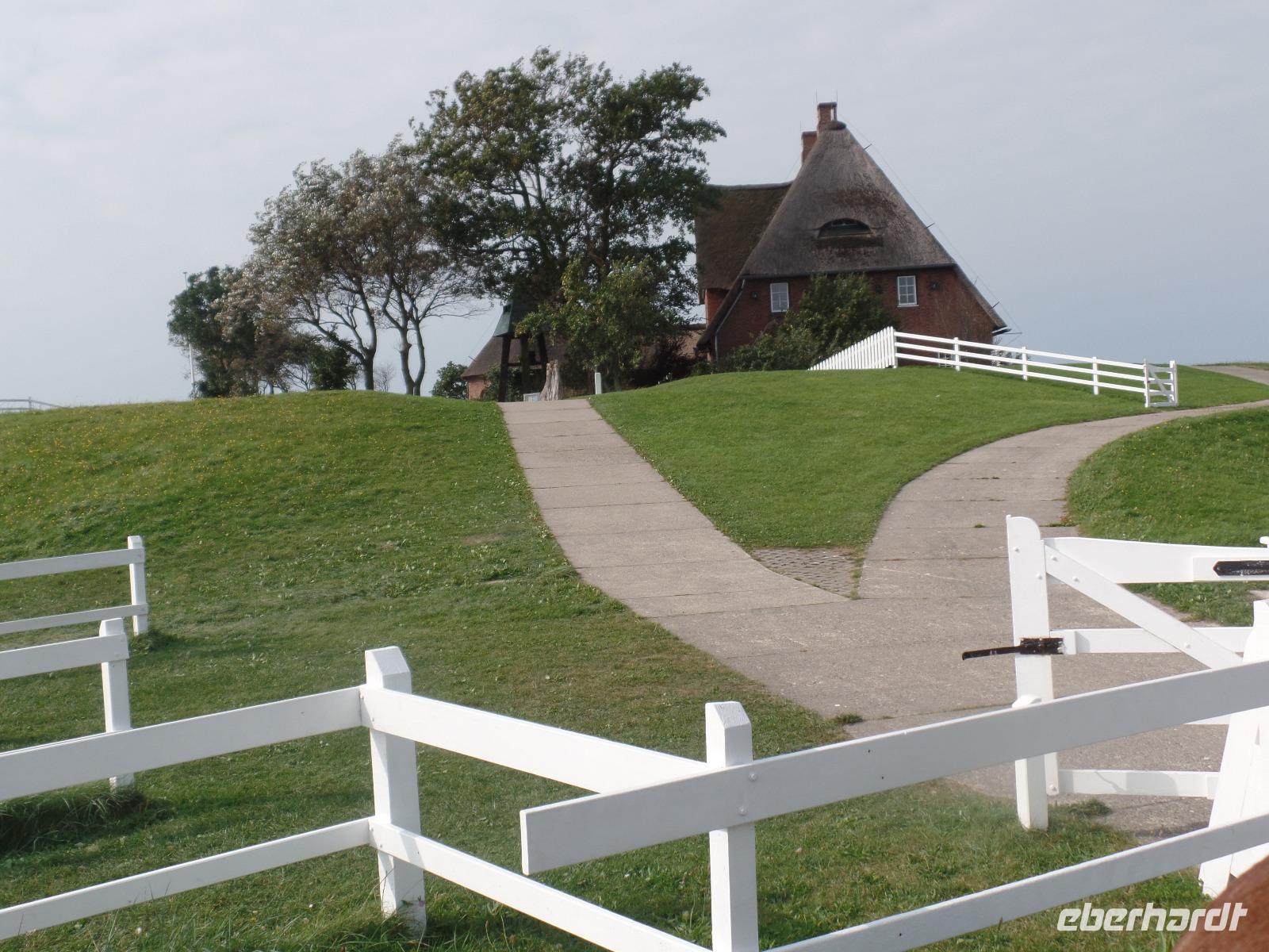 Mit unseren Kutscher Willy fuhren wir bis zur Hans-Warft, sie ist die Haupt-Warft der Hallig.