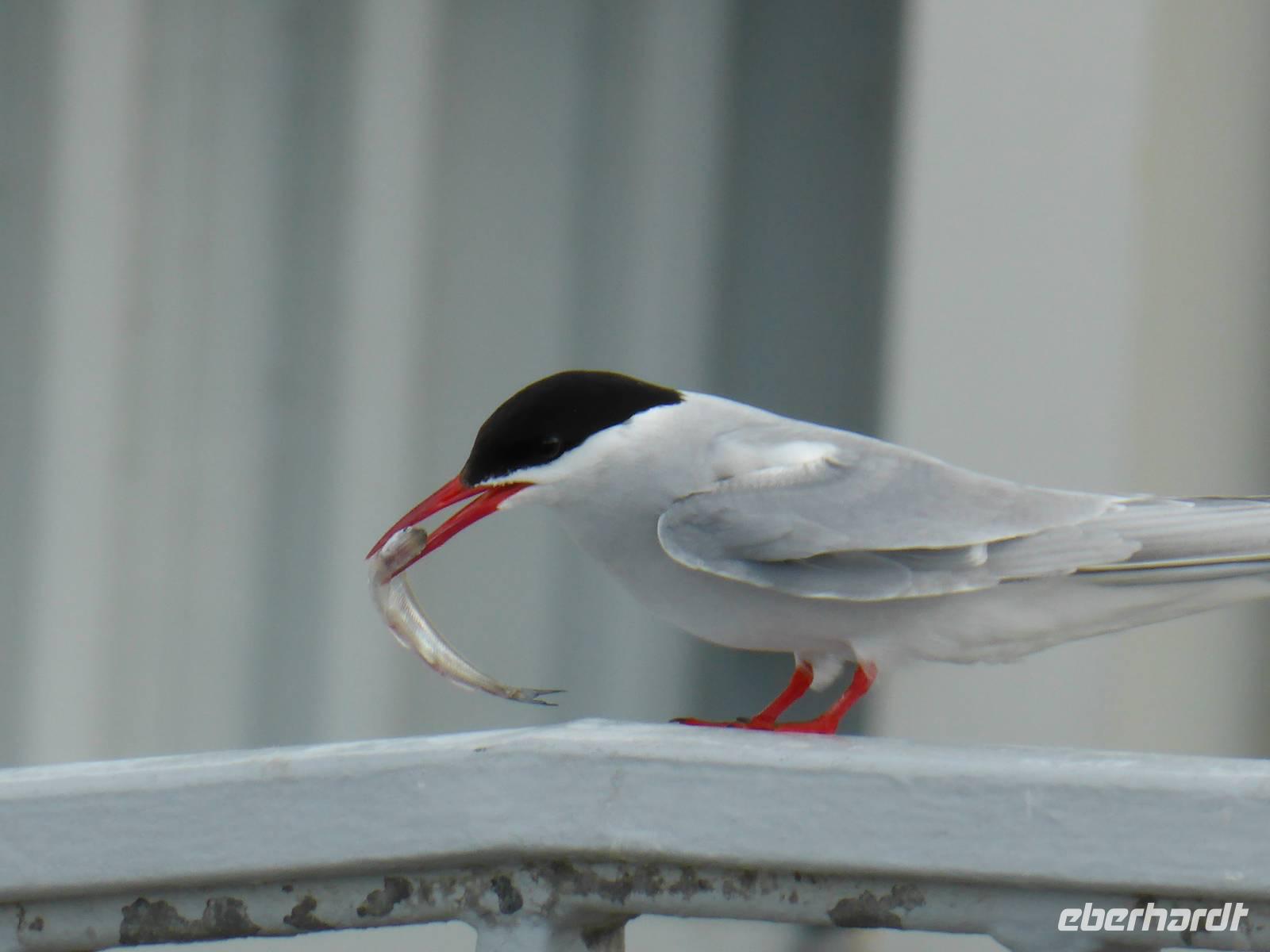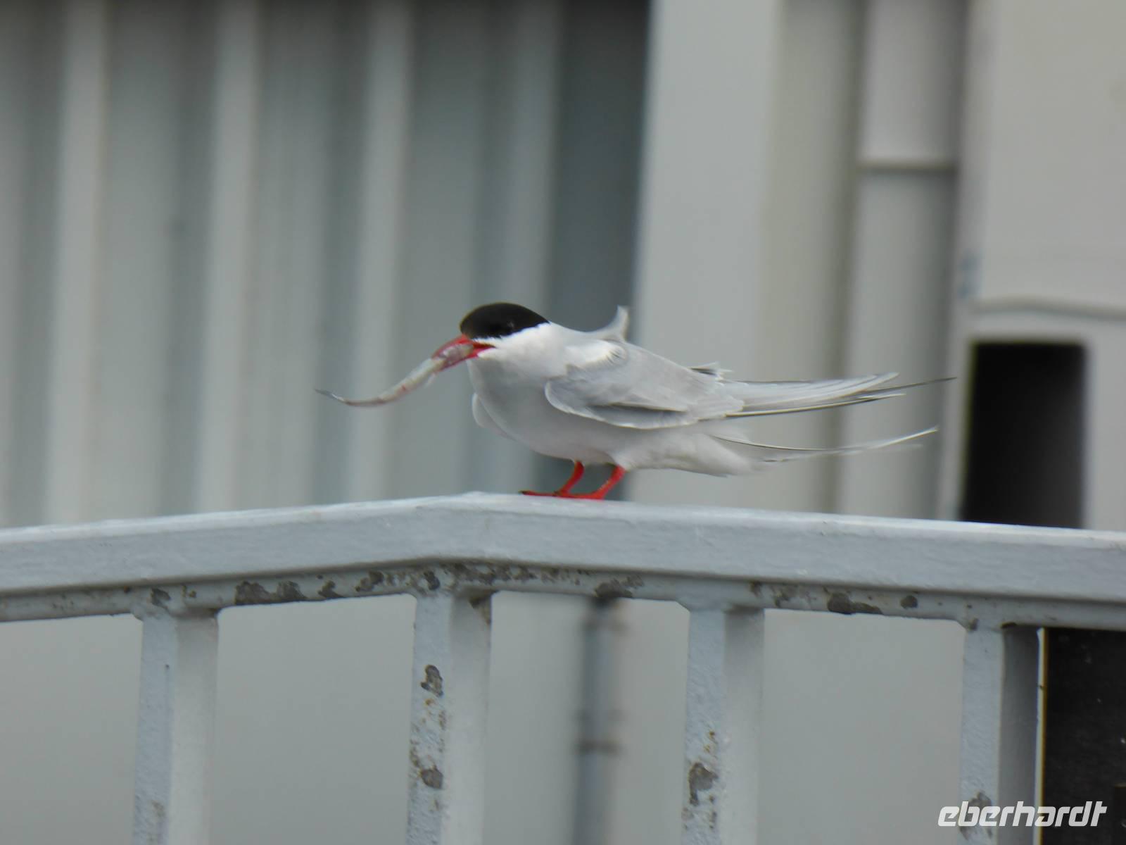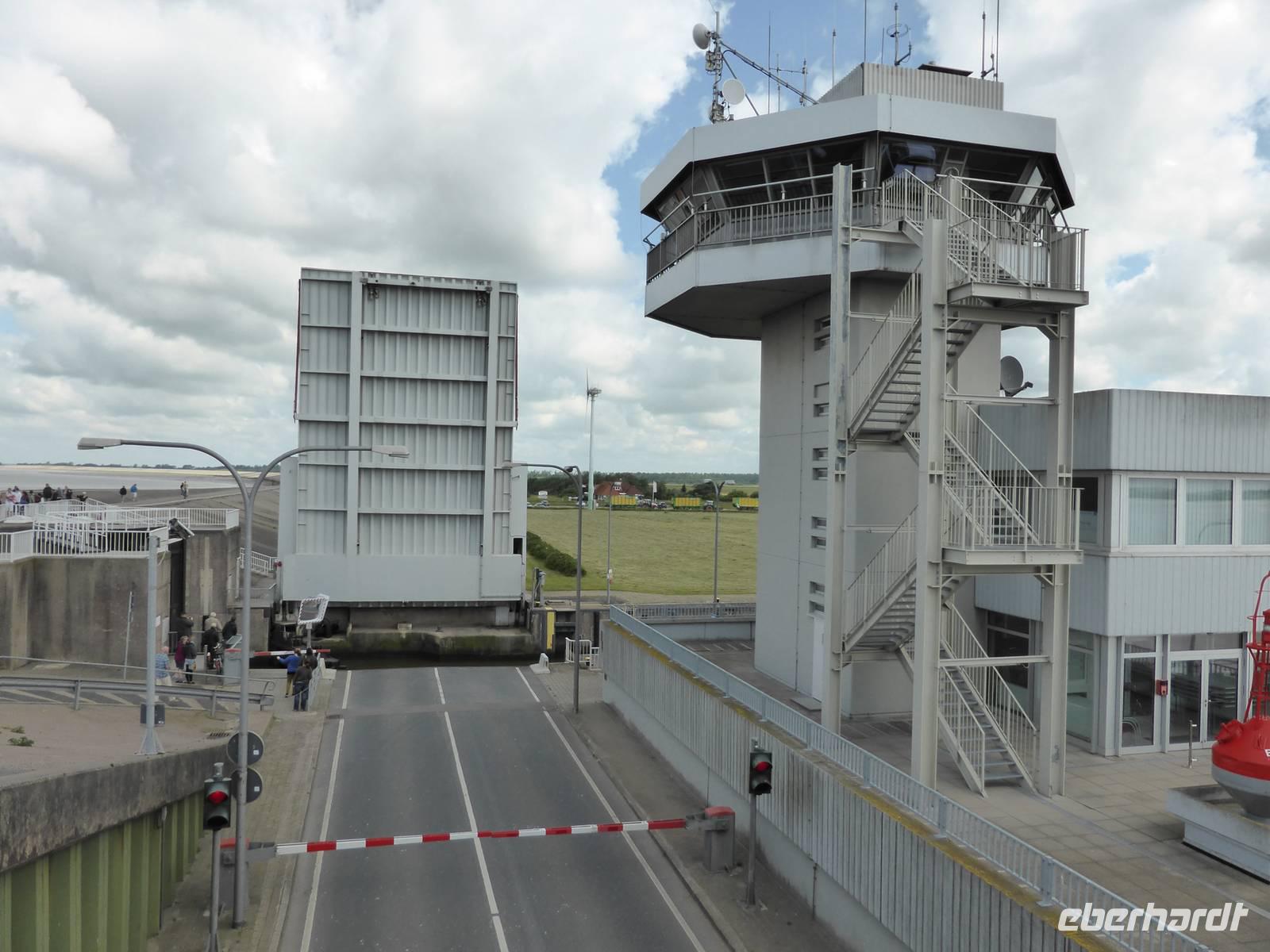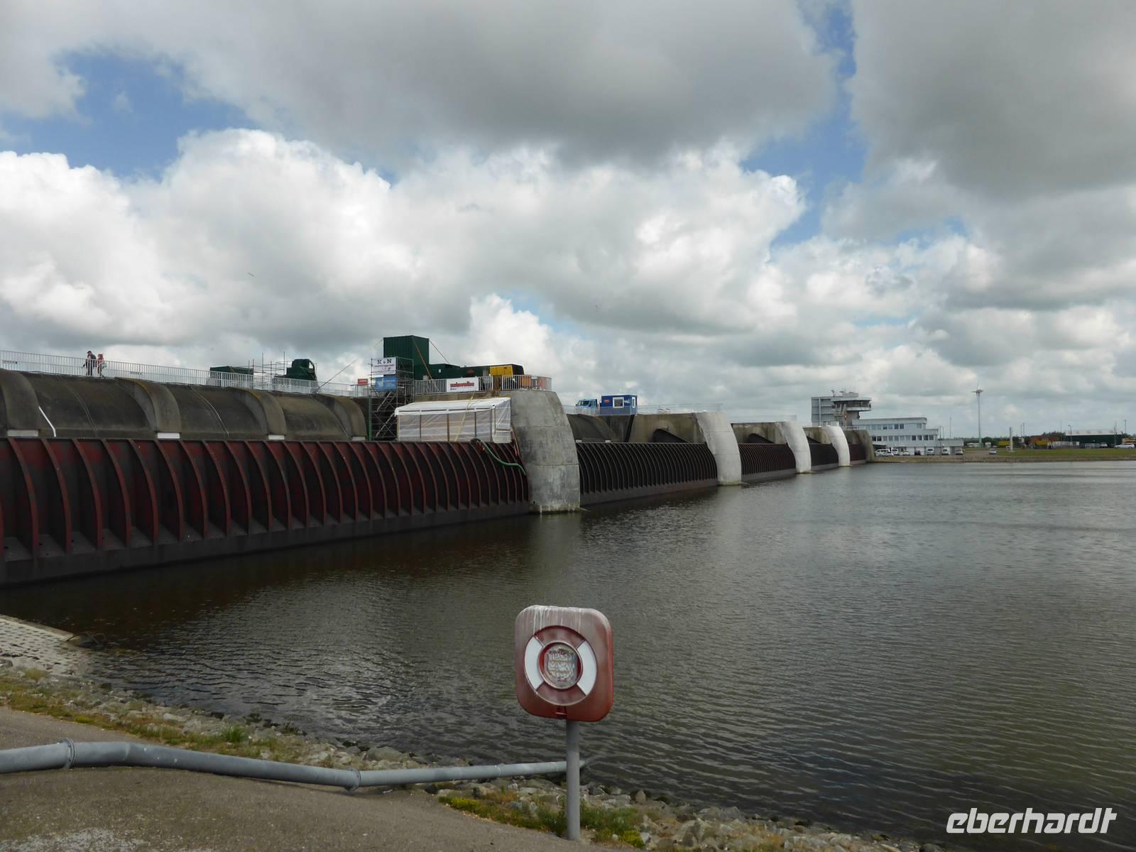 Unser nächstes Ziel war das berühmte Eidersperrwerk. Die Eider begrenzt die Halbinsel Eiderstedt zum Süden. Bei Sturmfluten werden immer wieder gewaltige Wassermassen in den Fluss gedrückt. 1962 kam es zu einer fürchterlichen Sturmflut bei der hunderte von Menschen umkamen. Man baute im Rahmen des Küstenschutzprogrammes einen kilometerlangen Deich, fünf gewaltige Hubtore von 40 m Breite sowie eine eigene Schleusenanlage. Dieses Sperrwerk wurde 1973 eingeweiht. Bei diesem Sperrwerk befindet sich die Brutstätte von den Küstenseeschwalben. Dies war ein sehr interessante Schauspiel.
