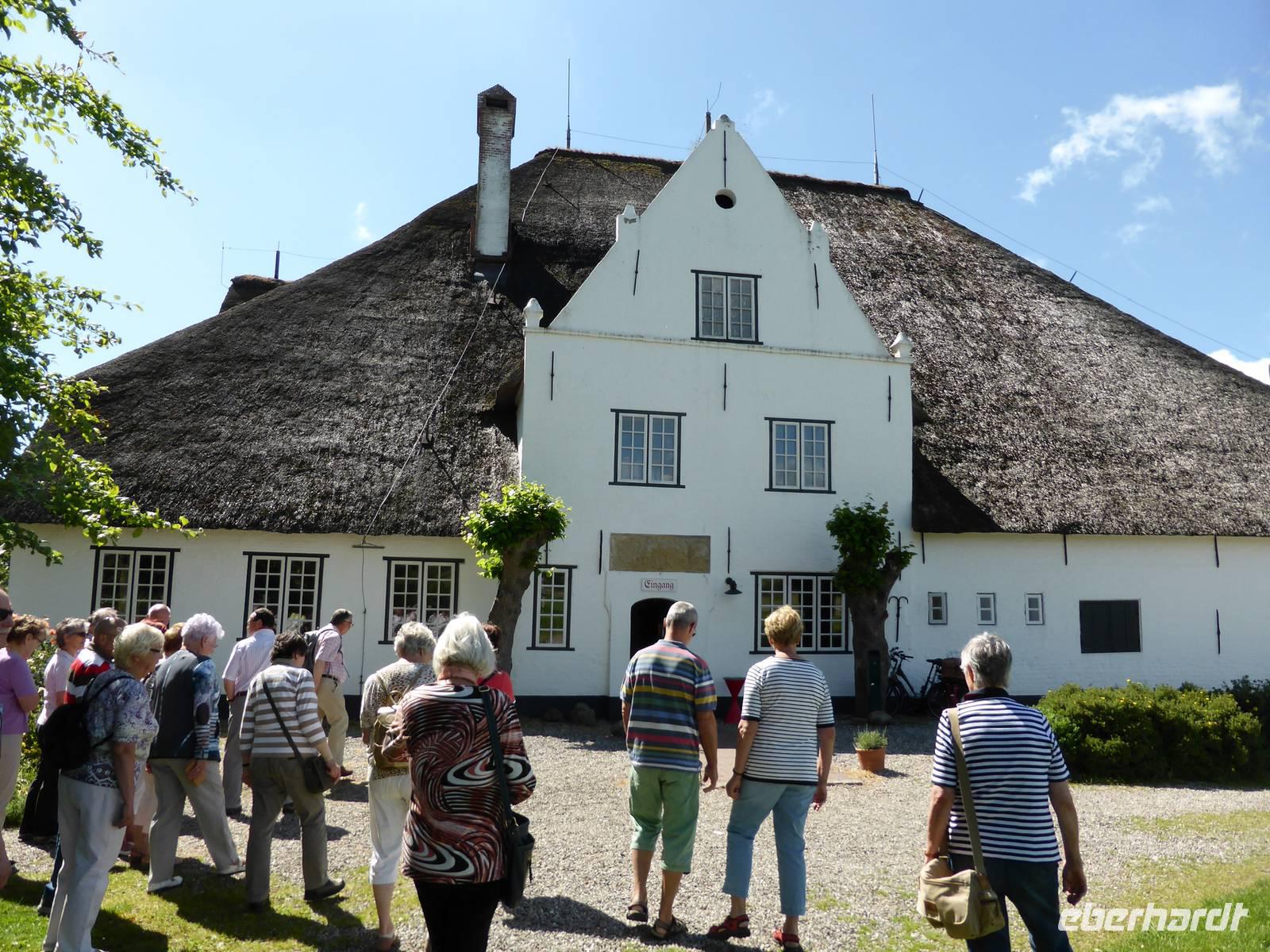 Am Nachmittag fuhren wir durch die Dünenlandschaft um Westerhever zum Roten Haubarg in Witzwort. Bei einigen Ausstiegen konnten wir vom Deich aus den Westerhever Leuchtturm, die zahlreichen Salzwiesen sowie die Küstenlandschaft bewundern. Der Name Haubarg leitete sich von „Heu bergen" ab. Heute ist dieses Haus weiß, da es allerdings früher mit roten Ziegeln gedeckt war, entstand der Name Roter Haubar. Im Museum konnte man neben der Ausstellung auch einen Eindruck von der Größe des Gebäudes gewinnen.
