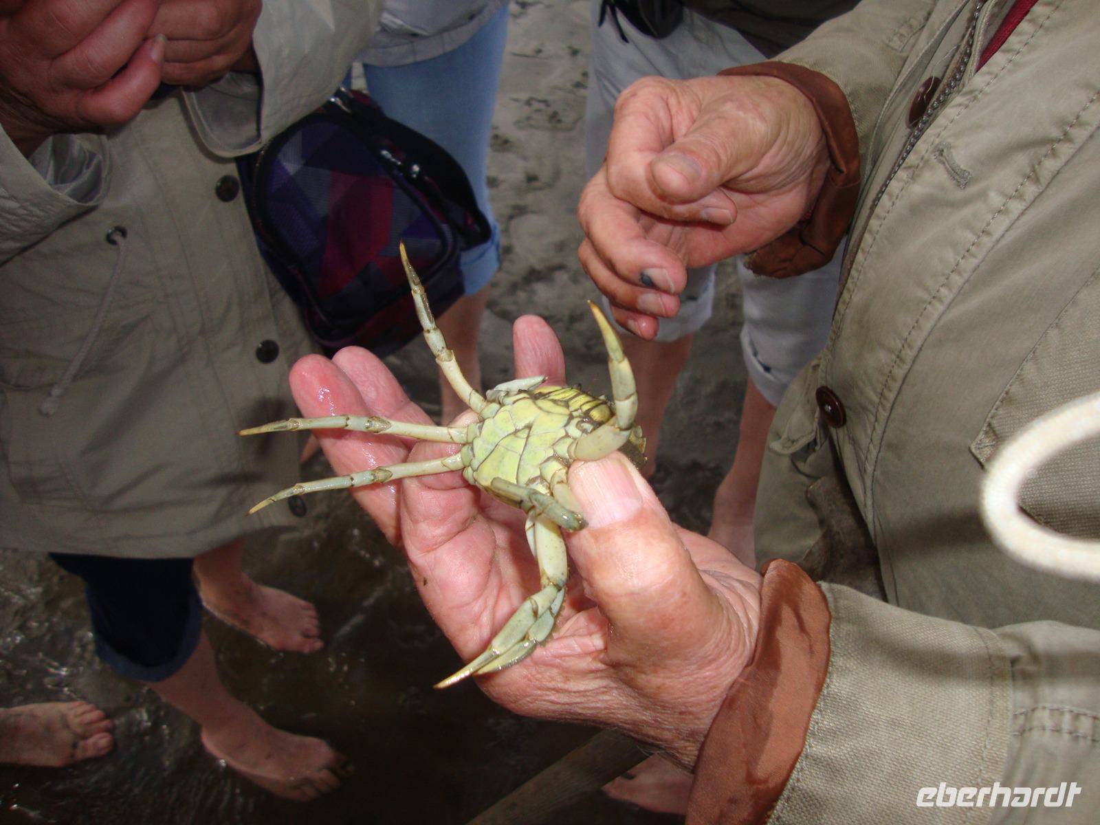 Herr Erichsen, als erfahrener Wattwanderer, begleitete uns auch heute. Die Insel Nordstrand ist umgeben von einem Seedeich und der richtige Ort für Wanderer, Radfahrer und Ruhesuchende. Genau dort gingen wir, ein kleiner Teil unserer Reisegruppe ins Watt, um das Leben dort kennenzulernen. Wattwürmer, Krebse, Muscheln und viele Algen konnten wir in Augenschein nehmen. Die Stunde im Watt verging deshalb wie im Fluge, es war für alle ein ganz neues Erlebnis. Weiter ging unser Ausflug nach Tönning, mit dem kleinen historischen Hafen, welcher im 17.Jh. ein wichtiger Umschlagplatz war. Das Eidersperrwerk, welches 1973 in Betrieb genommen wurde, schützt das Binnenland vor Überflutungen und garantiert den geregelten Abfluss der Eider ins Meer. Dieses mächtige Bauwerk zu besuchen, war ein wichtiger Punkt. Treppen führen hinauf und von oben eröffnen sich Einblicke in die Technik und Ausblicke auf die Landschaft. Von das aus ist es nicht weit bis nach St.Peter-Ording, dem bekanntesten See-und Heilbad an der Nordseeküste. Das einstige Kurmittelhaus, heißt heute Dünen-Therme und wird viel besucht. An den ca.12km langen Strand kann man stellenweise auch mit dem PKW hinfahren. Leider fing es leicht an zu regnen, deshalb fuhren wir weiter mit unserem Bus durch den bekannten Urlaubsort und verbrachten den Nachmittag in Husum. Jeder Reisegast hatte die Möglichkeit in der Stadt am Meer, den späten Nachmittag bis zum Abendessen zu verbringen.