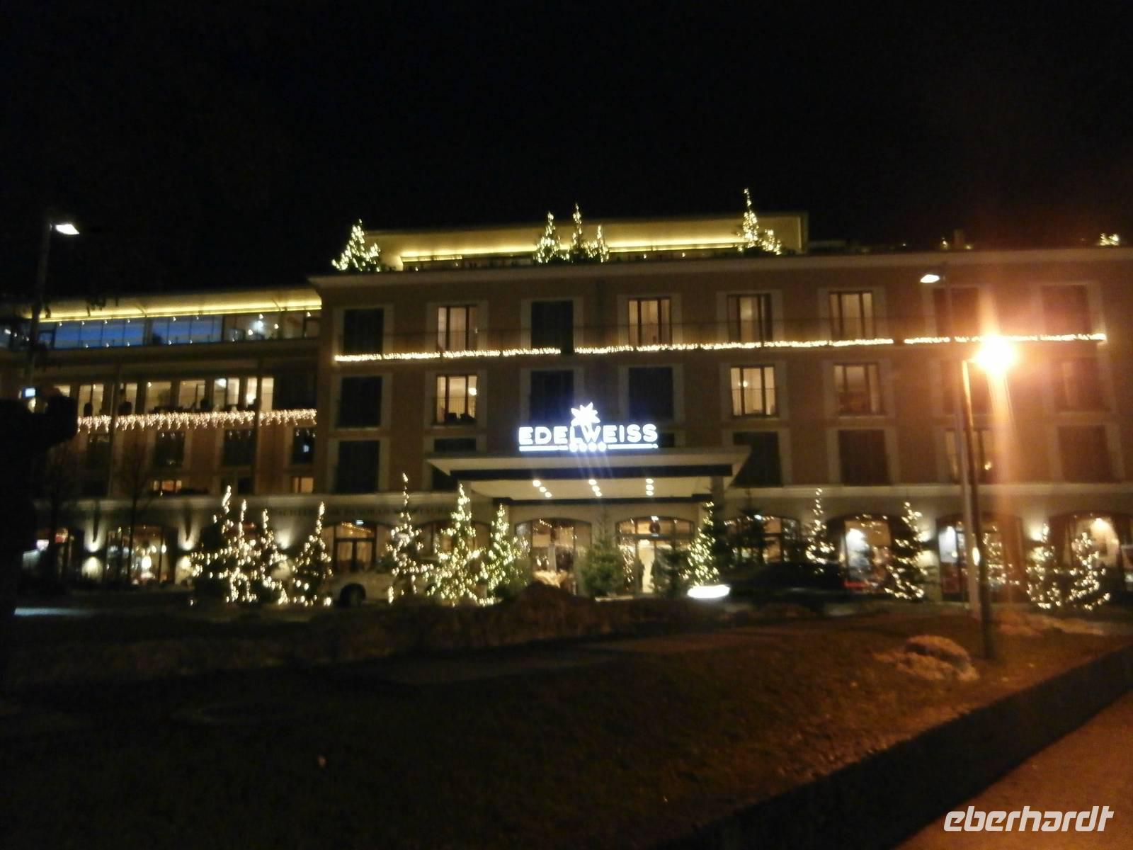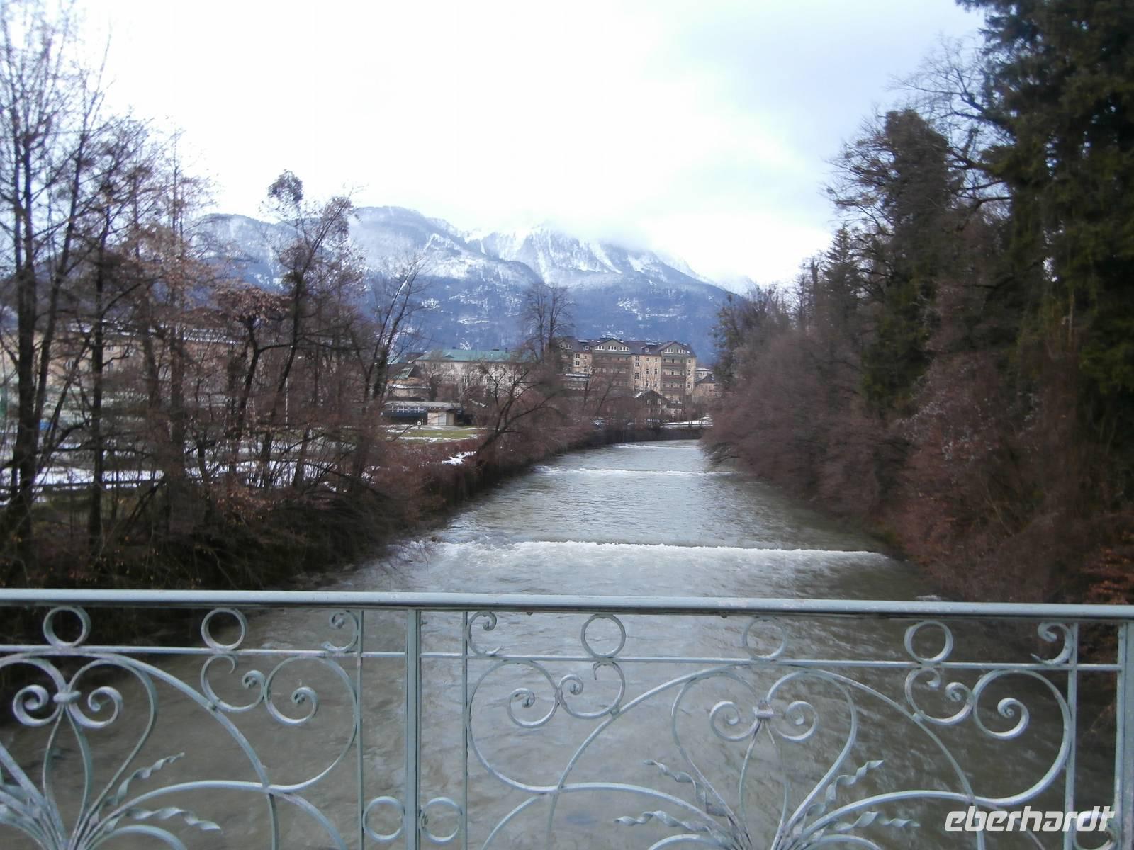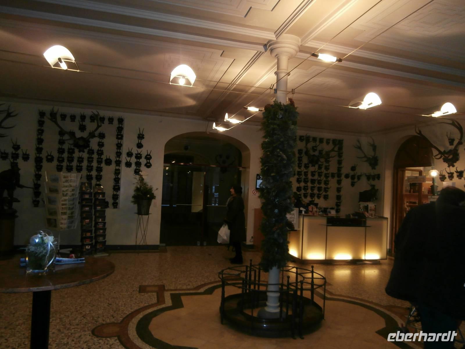 Wir starten unsere "Silvestertour" in Dresden noch trocken, in der Nacht gab es schließlich Schauer, unterwegs erleben wir Schnuddelwetter, Regengüsse und auch Sonne mit etwas blauen Himmel. Wir sind im 5 Sterne Bus ganz in Gold der Firma Weber unterwegs. Andreas, unser Buschauffeur, weiht uns während der Anreise in so manches Geheimnis ein, an jedem Platz gibt es Bildschirme und so kann man wählen zwischen einigen Programmen. Aber die Landschaft unterwegs bietet uns reichlich an schönen Ausblicken. Gutes Wetter bei Ankunft in Bad Reichenhall ist uns vergönnt. Wir entschließen uns vor der Fahrt zum Hotel, die Stadt gemeinsam zu besichtigen. Vorbei an der Neuen Saline, dem Rathaus und dem Salzmuseum spazieren wir durch das weihnachtlich geschmückte Zentrum. Im Hotel „Karlsteiner Stuben" beziehen wir unsere Zimmer und treffen uns später zum gemeinsamen Abendessen, welches wir als Wahl Menü zu uns nehmen.