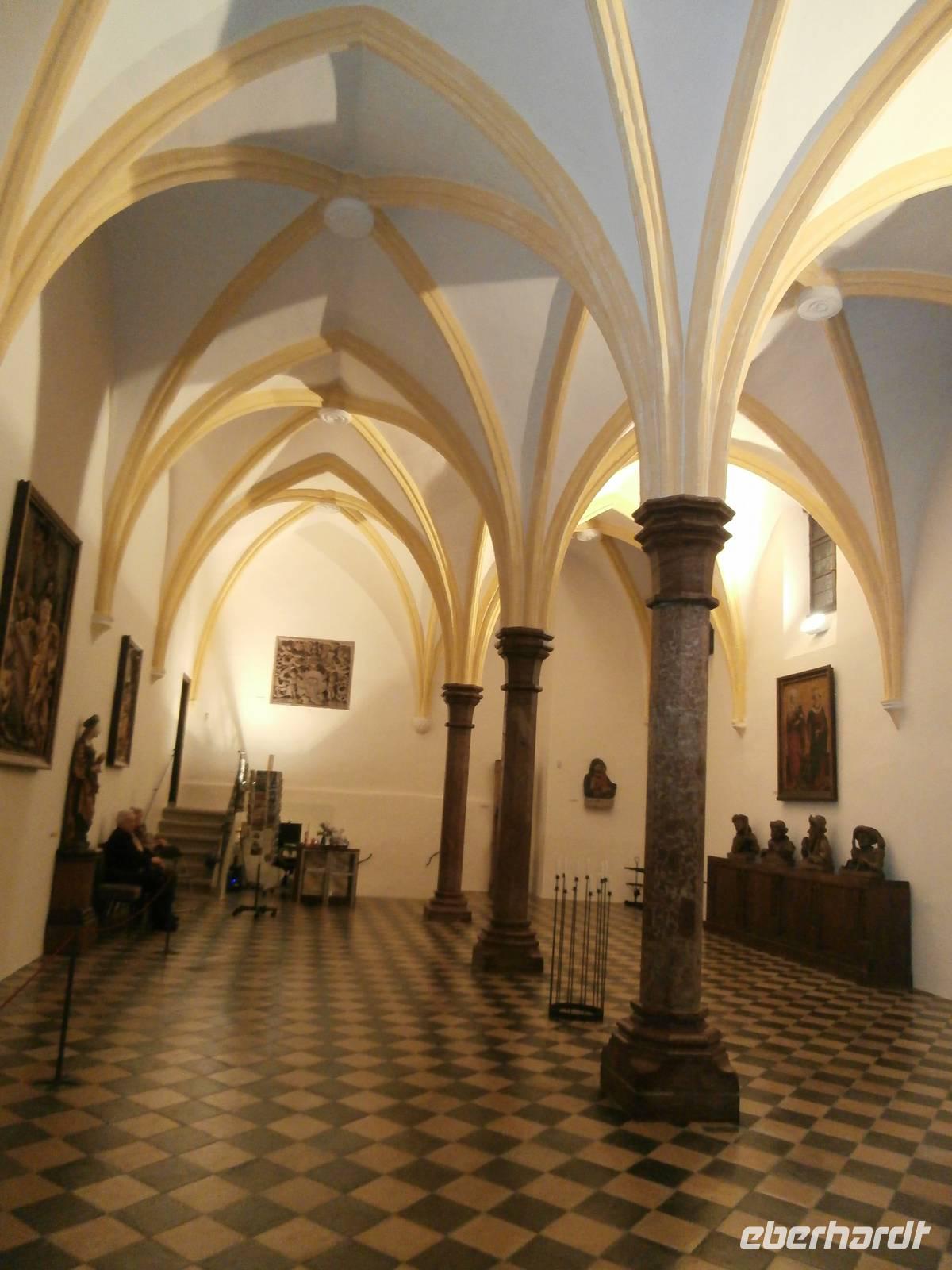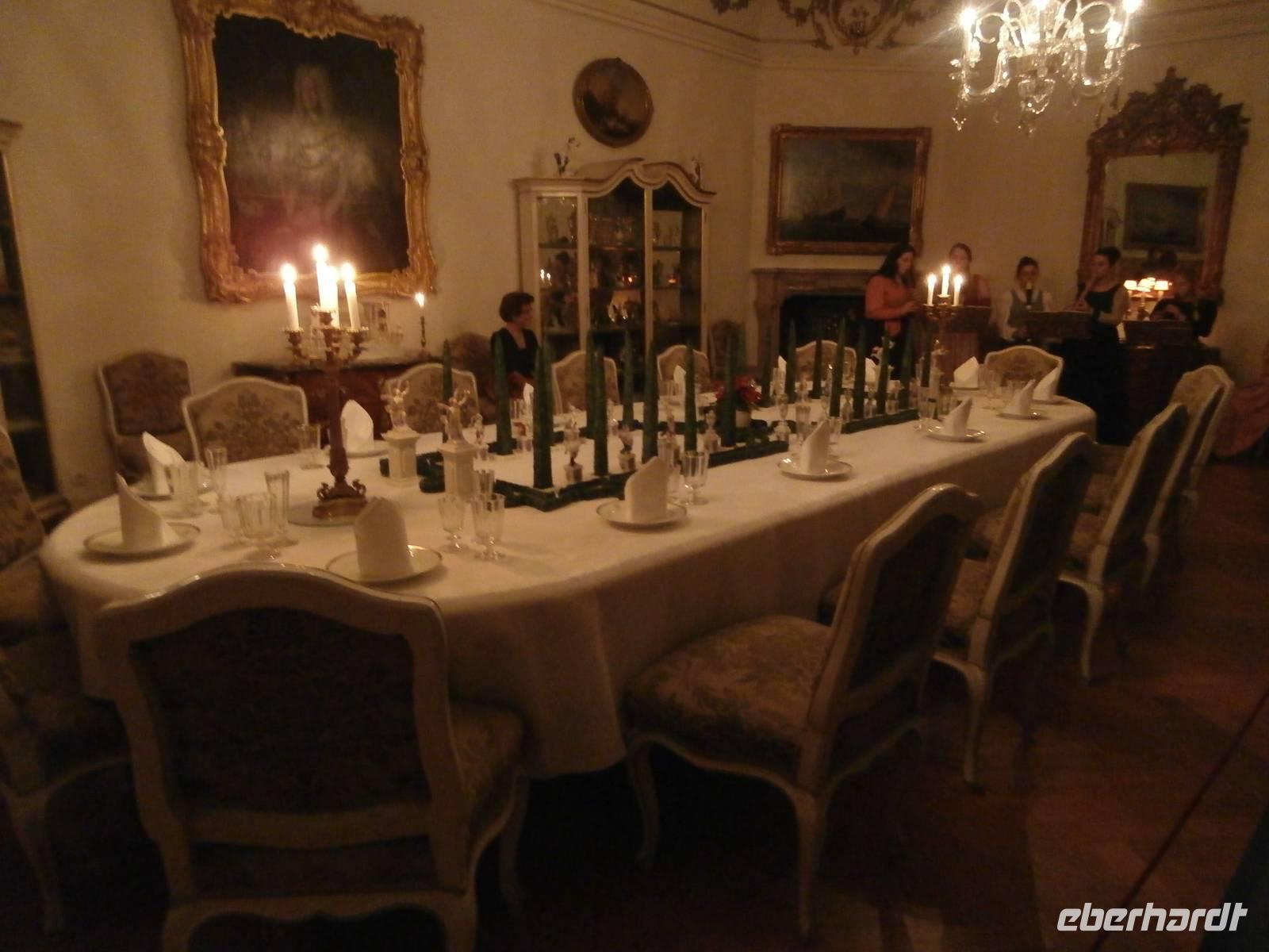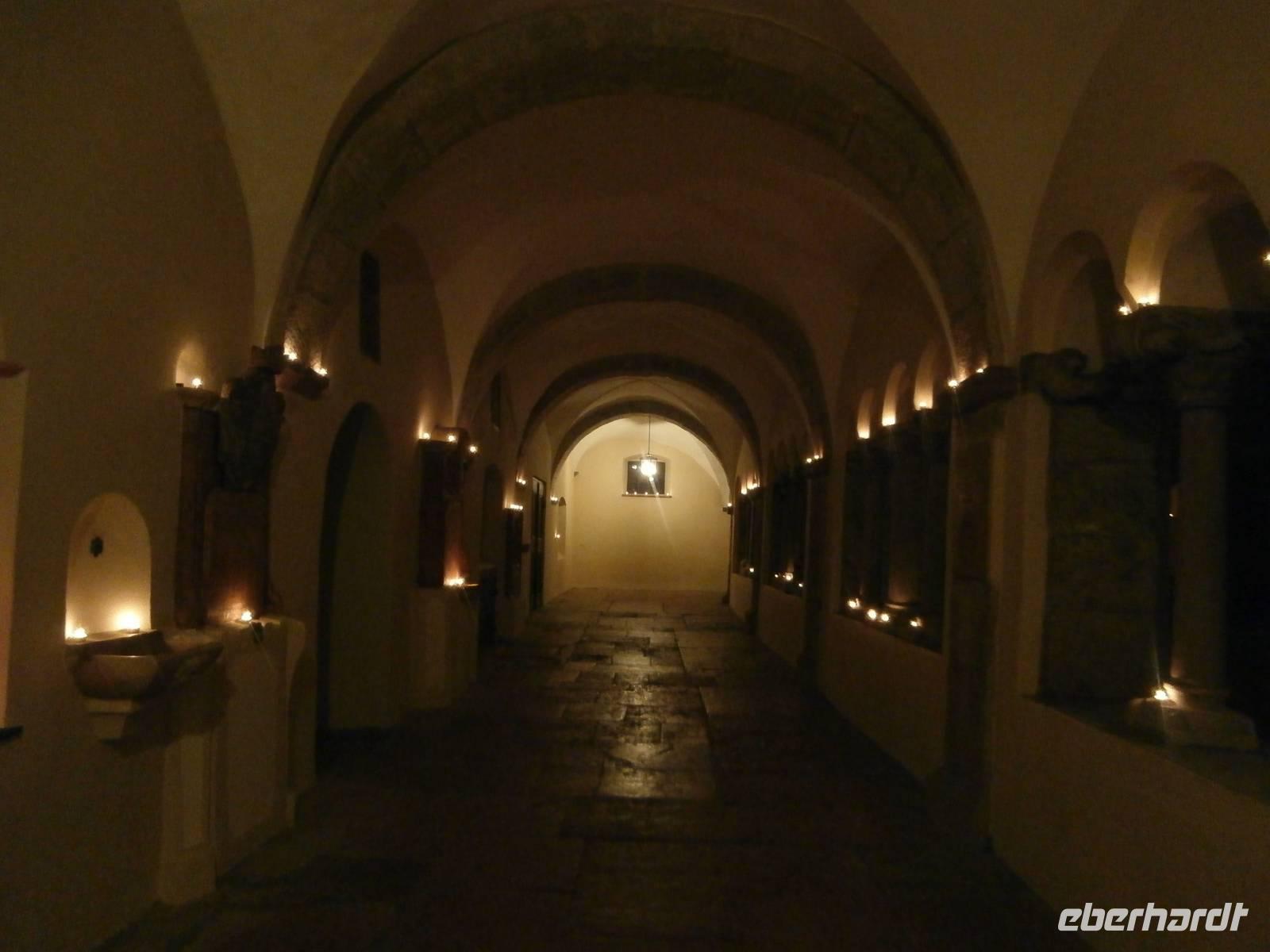 Bad Ischl besuchen wir am zeitigen Nachmittag. Durch die Fußgängerpassage spazieren wir hinein in die Stadt, auch hier umfängt uns noch weihnachtliche Atmosphäre in den Gassen und Geschäften, die zum Bummeln einladen. Glühwein und Kaffee schmeckt und wärmt durch. In der Nähe der Therme und des Busparkplatzes führt ein Weg über den Ischl hinauf zur Kaiservilla. Bei einsetzender Dunkelheit erreichen wir Berchtesgaden, im Schloss erwartet man uns schon zur abendlichen Führung durch die herrlichen Gemäuer. Flötenspiel und Chorgesang im Kreuzgang bilden einen festlichen Rahmen und wir genießen zum Abschluss noch Sekt und Gebäck in einem schönen Saal.