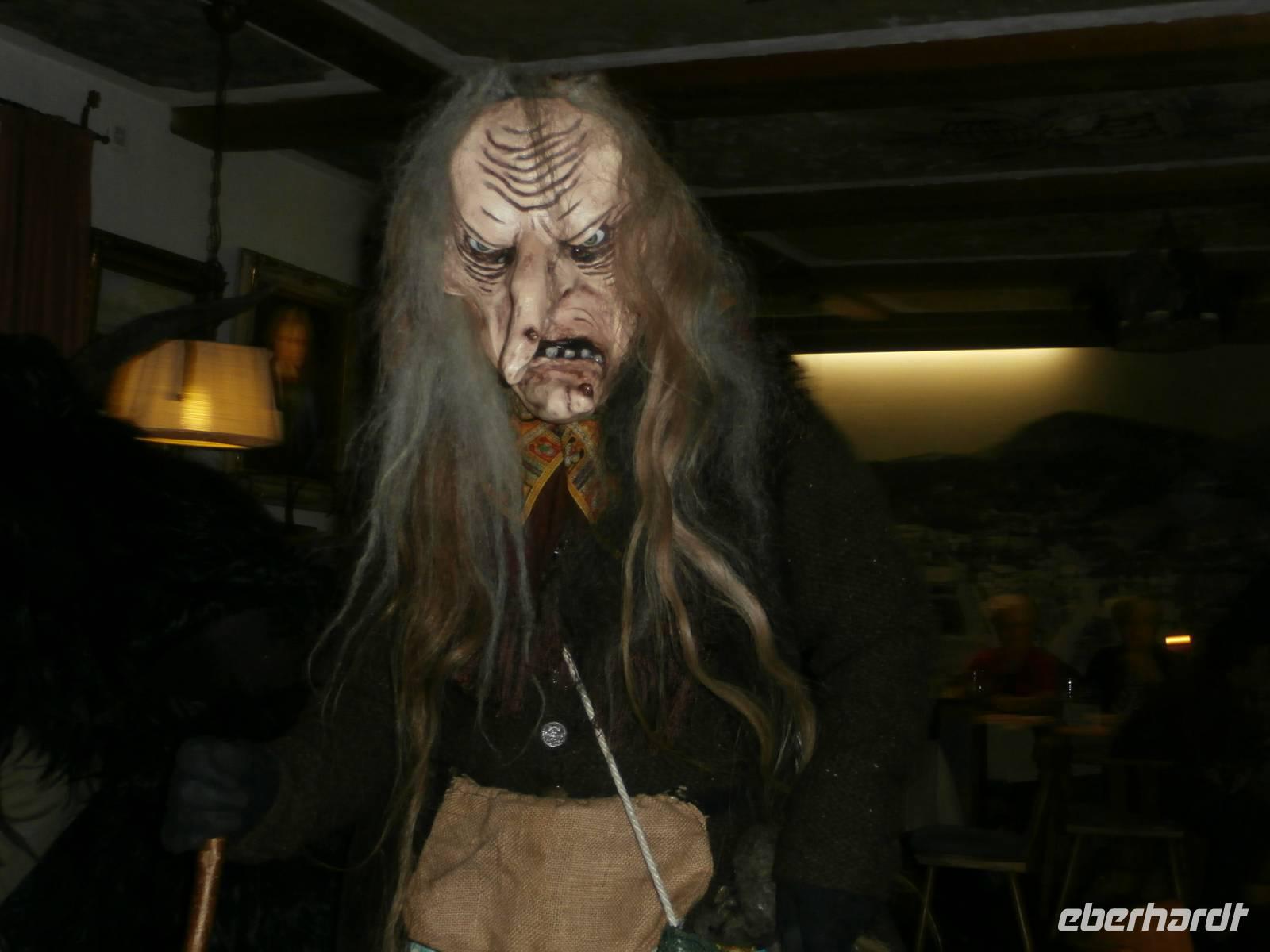 Beleuchtet und weihnachtlich geschmückt erleben wir den Weg zurück zum Bus in Berchtesgaden. Nach dem Abendessen werden wir von den Perchten und einer Hexe aufgesucht. Sie sollen böse Geister vertreiben und sehen in ihren Masken furchterregend aus.