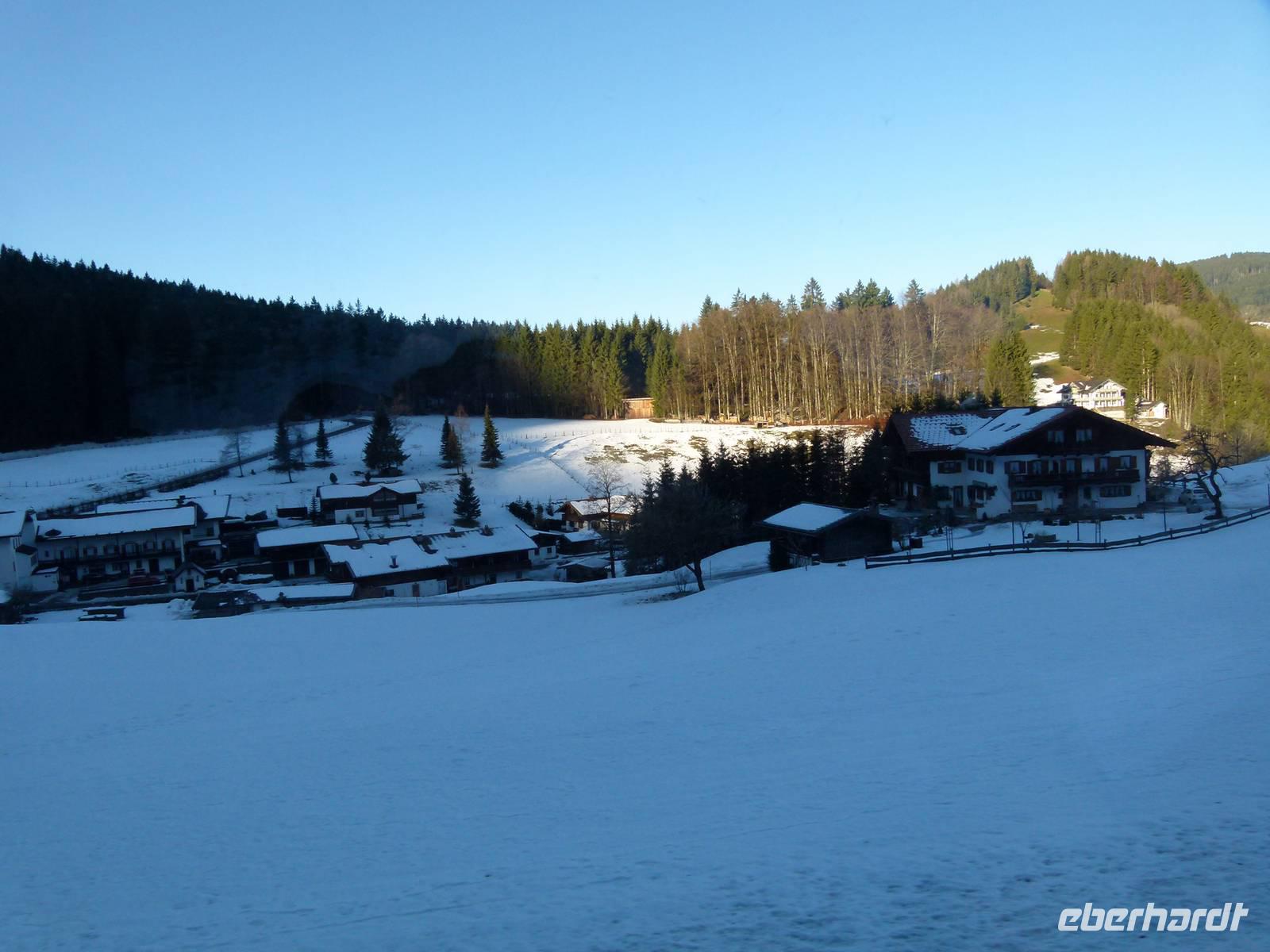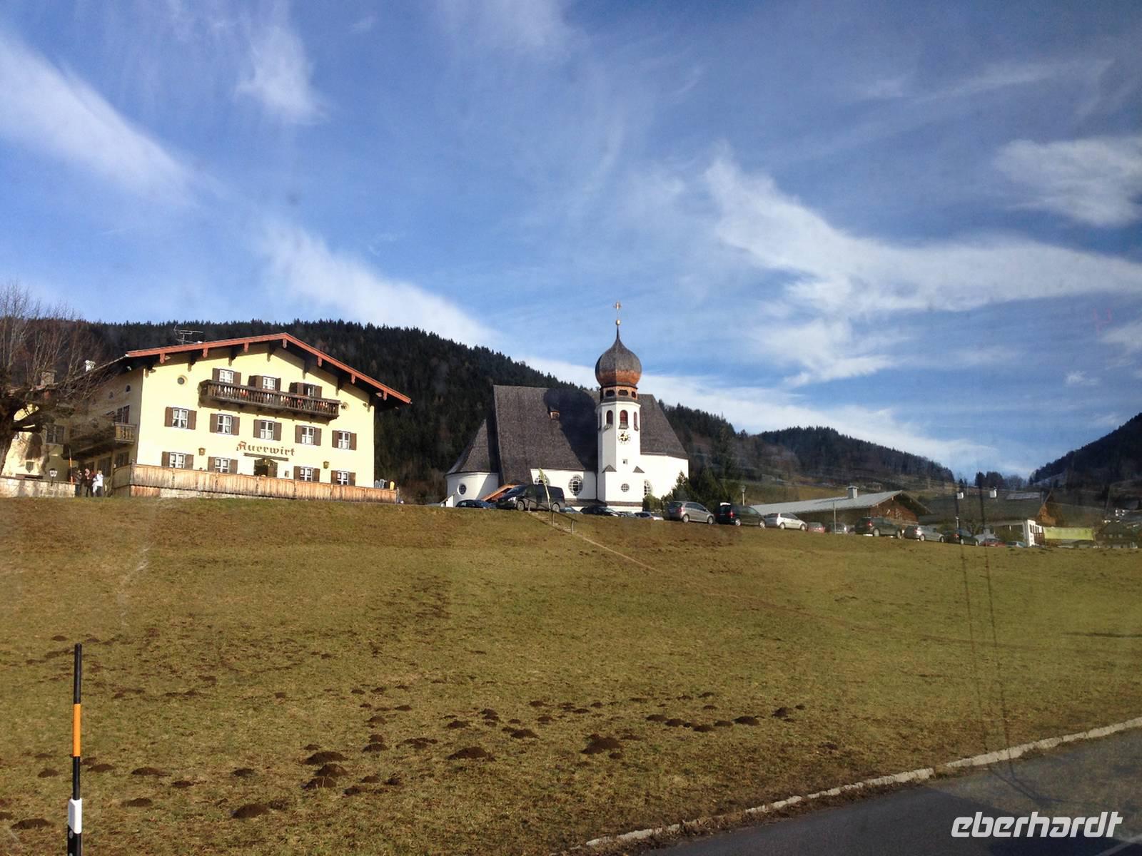 Reit im Winkel, nahe der Grenze zu Tirol auf 695 m gelegen, zählt zu den führenden Luftkurorten Deutschlands und ist einer der schneesichersten Wintersportorte Bayerns. Schnee fällt hier dichter und öfter als in den Nachbarregionen. Im Norden und Osten ist der Ort von bewaldeten Höhen umgeben; im Südwesten ragen die Zacken des Kaisergebirges auf. Nur nach Westen ist das Tal offen und fängt die sich im Talbecken stauenden Wolken auf. Wir machen einen kleinen Spaziergang durch den Ort, manche zieht es zum „Kuhstall", dem 1964 von Maria Hellwig eröffneten Restaurant-Café. Sie wurde 1920 in Reit im Winkel geboren und galt als Inbegriff der deutschen volkstümlichen Musik. Anschließend fahren wir nach Tirol in das schöne Kaiserbachtal im Naturschutzgebiet Wilder Kaiser. Wer Lust hat, kann bei herrlichem Wetter einen Spaziergang durch die Winterlandschaft machen. Bei Julia auf der Fischbachalm kann sich die Gruppe stärken und am Kachelofen aufwärmen. In St. Johann in Tirol wartet Toni bereits auf uns. Er ist hier geboren, arbeitet schon viele Jahre als Gästeführer und kennt jeden Winkel. Auch St. Johann ist ein beliebter Ferien- und Wintersportort. Er bietet weitläufige Pisten an den Nordhängen des Kitzbüheler Horn. Im Ort stehen noch einige schöne Barockhäuser, viele Fassaden sind mit Lüftlmalerei geschmückt. Wir besichtigen die Barockkirche, welche die erste große Kirche der gegend wurde, Erbaut im Jahre 1727 von Abraham Milbauer. In der Kirche Mariä Himmelfahrt bestaunen wir großartige Deckengemälde von Simon Benedict Faistenberger, einem der berühmten Meister der Barockmalerei. DJ Ötzi, der Entertainer und Sänger, sowie viele erfolgreiche Wintersportler sind hier geboren. Der Rückweg führt vorbei am idyllischen Pillersee, um die Lofer Steinberge mit dem 2500 Meter hohen Großen Ochsenhorn herum und an der Saalach entlang zurück nach Bad Reichenhall.