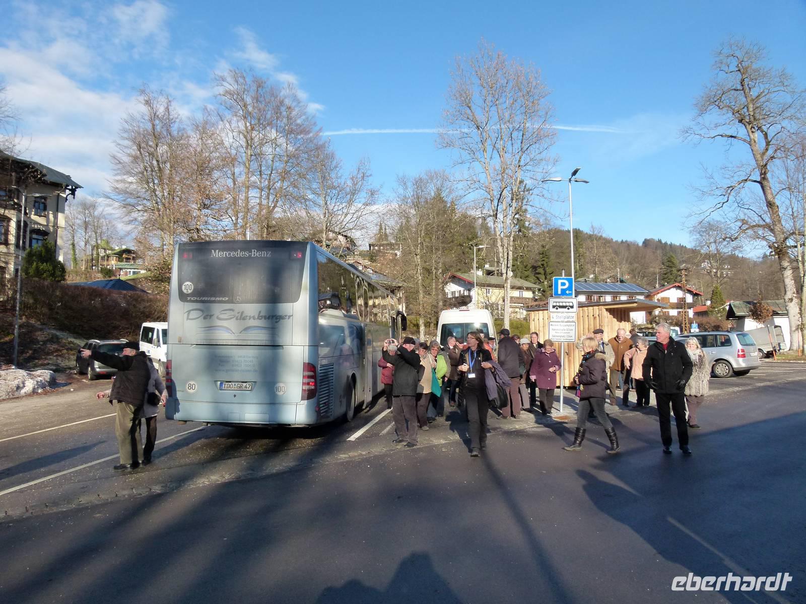 Pünktlich um acht Uhr starten wir mit zehn Gästen in Richtung Südwesten auf die A4 zur A 72. An den Autohof-Raststätten Stollberg und Münchberg steigen jeweils weitere Gäste zu. Mit insgesamt 29 Passagieren an Bord steuert unser Buschauffeur Lars seinen 300-PS-Merzedes routiniert über 600 Autobahnkilometer. Nach der Mittagspause bei Nürnberg-Feucht können wir die dicht befahrene Münchner Ostumfahrung ohne größeren Stau hinter uns lassen. Am späten Nachmittag erreichen wir den Chiemgau und genießen einen ersten sehnsuchtsvollen Blick auf das wunderschöne Voralpenland und den Chiemsee. Um 17 Uhr empfängt uns das Hotel Karlsteiner Stuben, wo wir die nächsten sechs Nächte verbringen werden. Zwölf Gäste der vorangegangenen Weihnachtsreise „verstärken" die neu angekommene Gruppe. Beim ersten Abendessen zeigt sich bereits, dass der Wirt sein Handwerk gut gelernt hat!