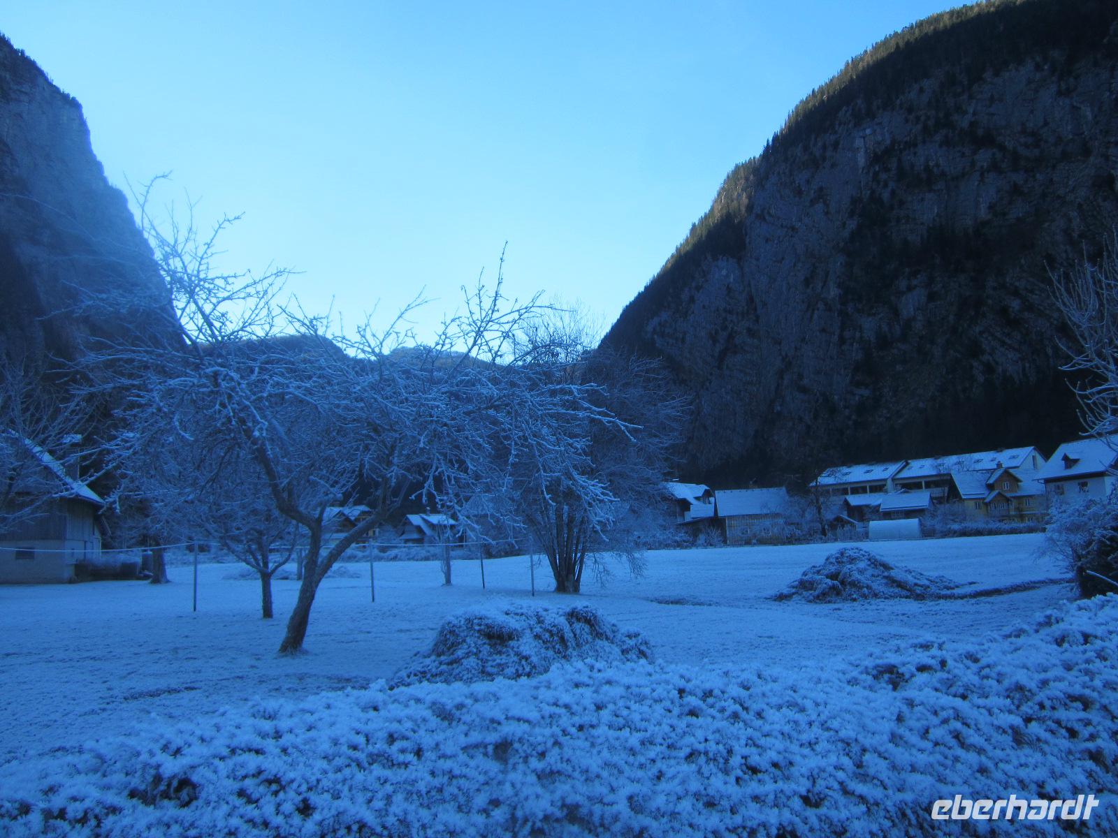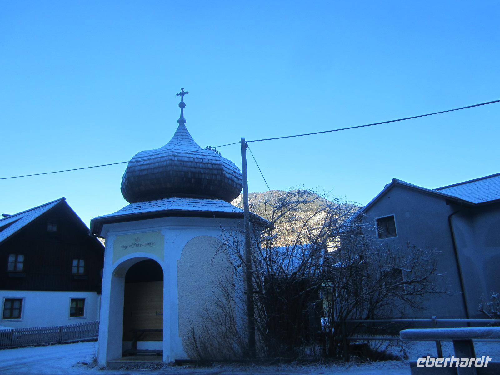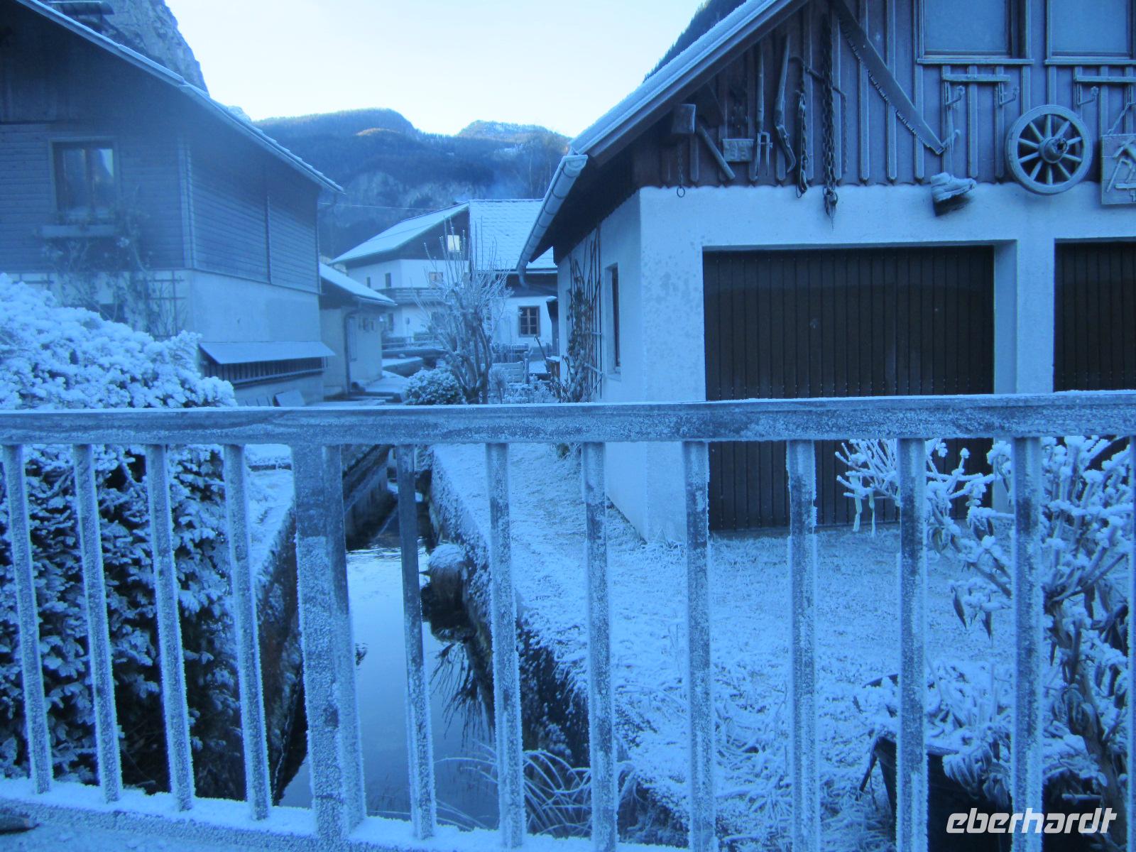 Zum Salzkammergut gehört auch Hallstatt, der Ort, der in China nachgebaut wurde und seit 1997 von der UNESCO zum Weltkulturerbe ernannt wurde. Auf dem schmalen Uferstreifen drängen sich die Häuser aneinander. Uns zeigt sich der Ort in Raureif gehüllt. Ein besonderer Anblick, den wir genießen. Wenn wir auch nur einen Teil des Salzkammergutes kennenlernen so können wir die Redewendung verstehen, "Wen die Götter lieben, den schicken sie ins Salzkammergut". Unsere weitere Fahrt wird uns über die Salzburger Dolomitenstraße führen. Doch bevor es so weit ist, planen wir einen kurzen Abstecher. Den Gosausee mit dem Blick zum Dachsteinmassiv wollen wir auf einem Bild festhalten. Der Blick war überwältigend und wird uns in Erinnerung bleiben. Danach fahren wir entlang der Salzburger Dolomitenstraße mit Blick auf die "Große Bischofsmütze" (2458 m). Unserer weitere Fahrt führt uns über den Pass Lueg, ein Teil einer alten Alpen-Transitroute, die heute ihre Bedeutung verloren hat.